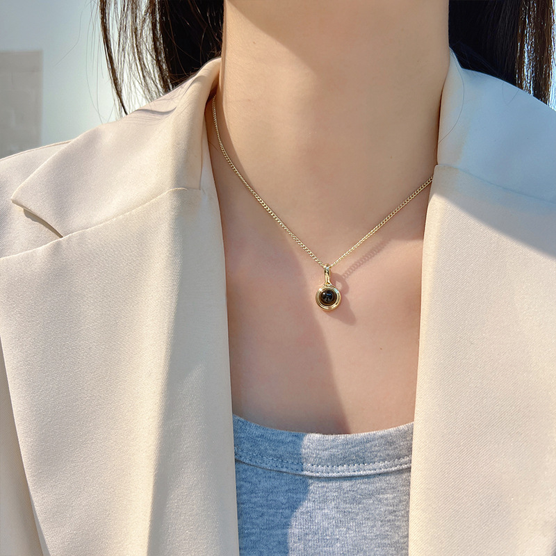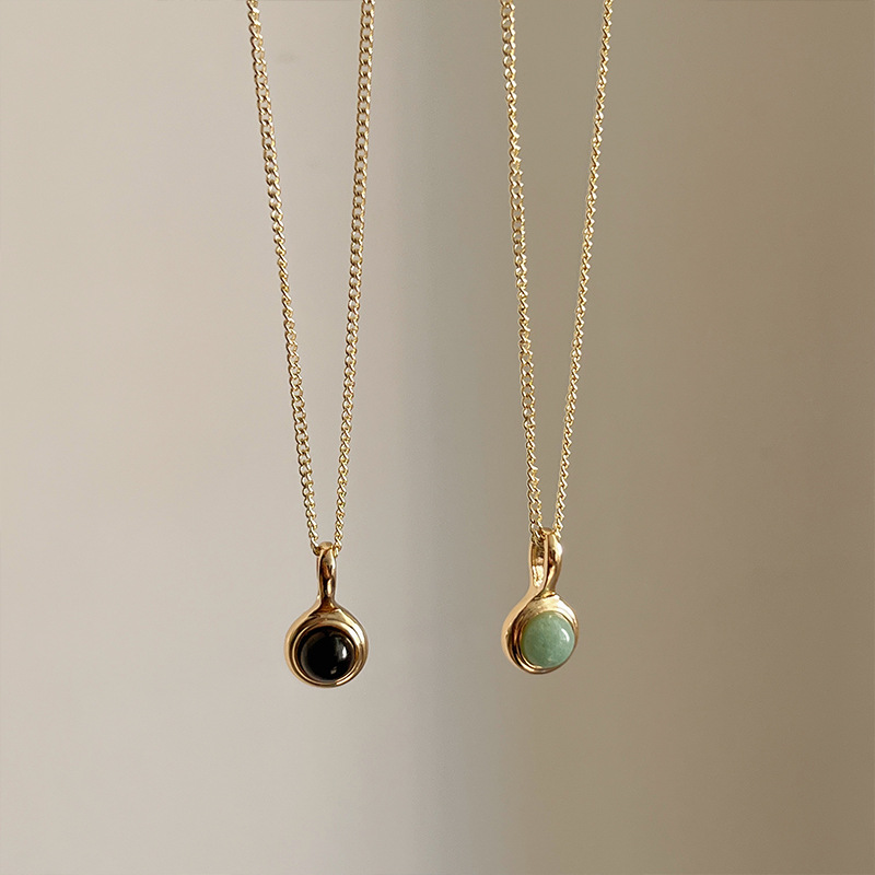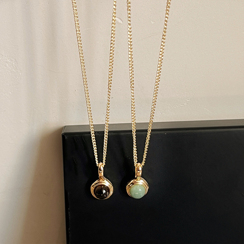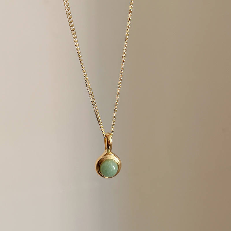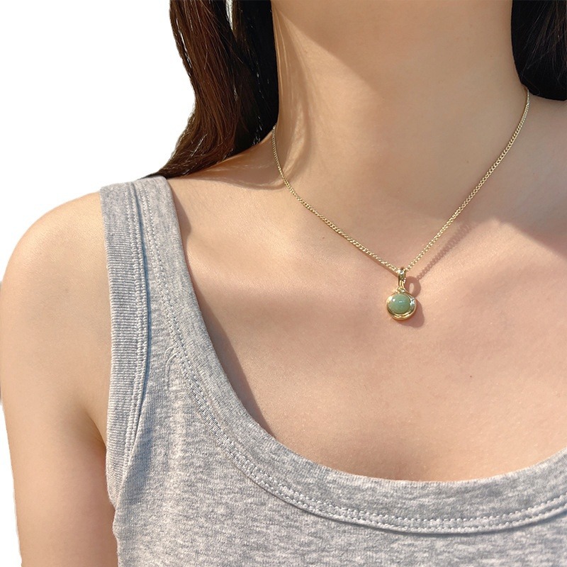 2023年新款法式复古高级感绿色天然东陵玉石椭圆吊坠项链女毛衣链