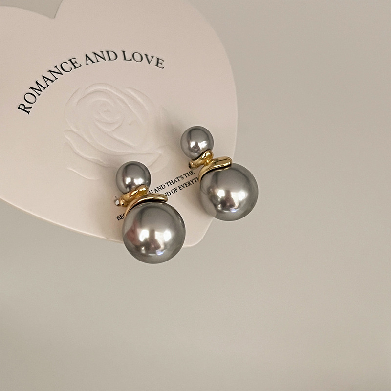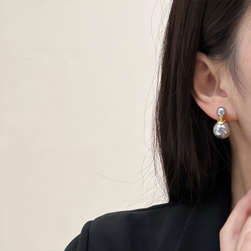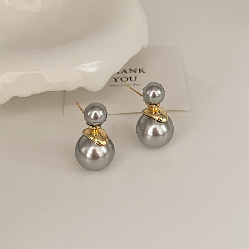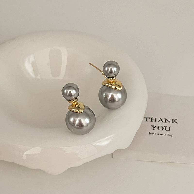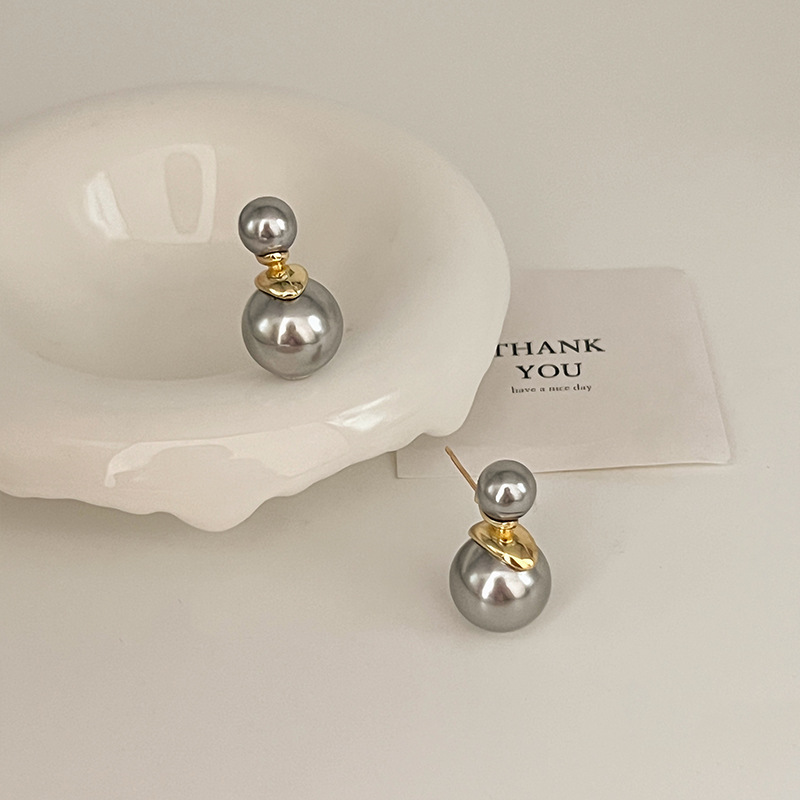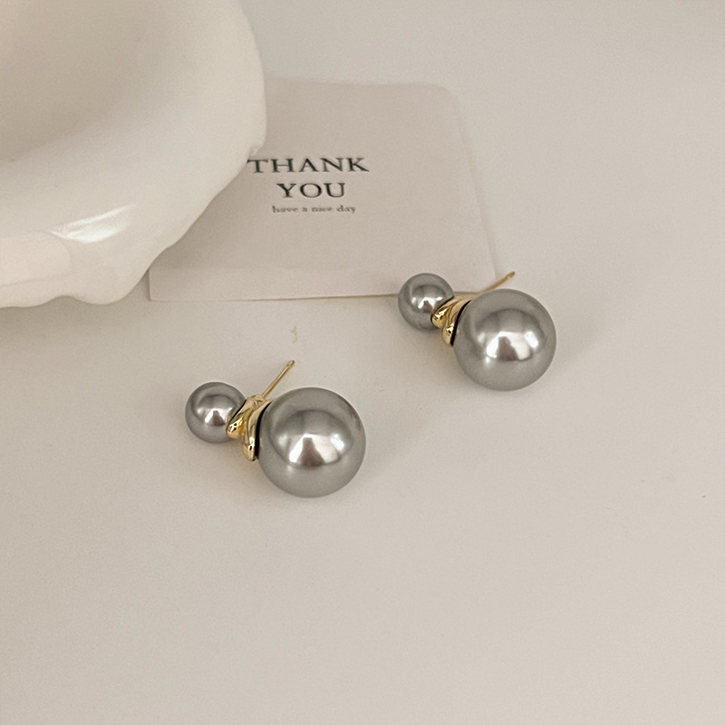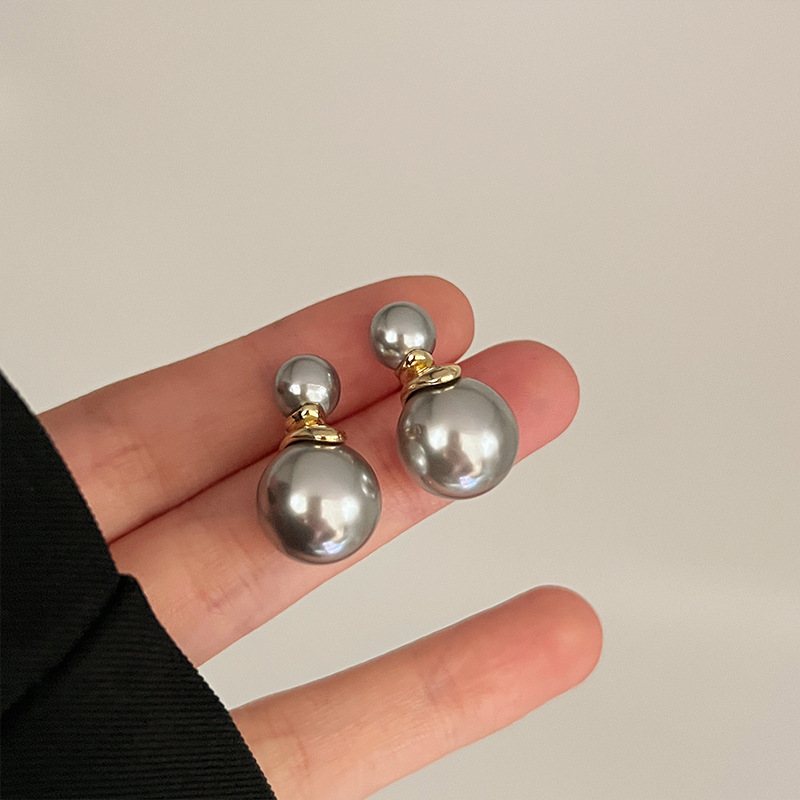 纯银针灰珍珠耳钉女小众设计配饰百搭轻奢耳环正圆复古高级感耳饰