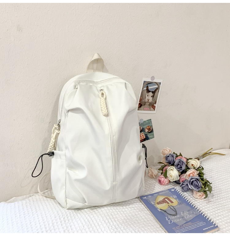 双肩包流行质感书包女初高中生学生旅行大容量背包纯色简约休闲包