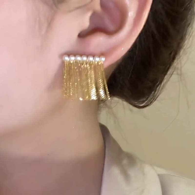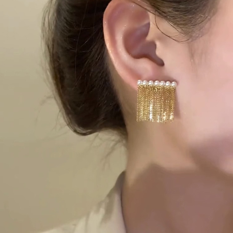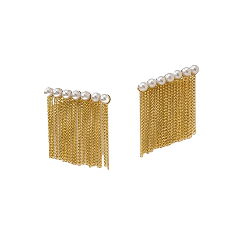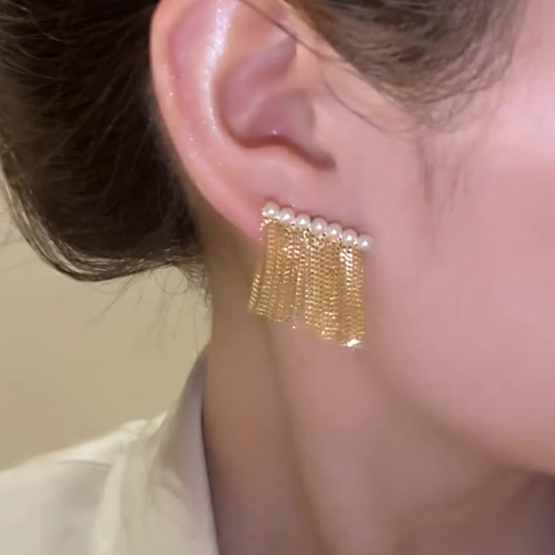 时尚气质一排珍珠耳钉简约小众高级感链条流苏耳环女2023新款耳饰