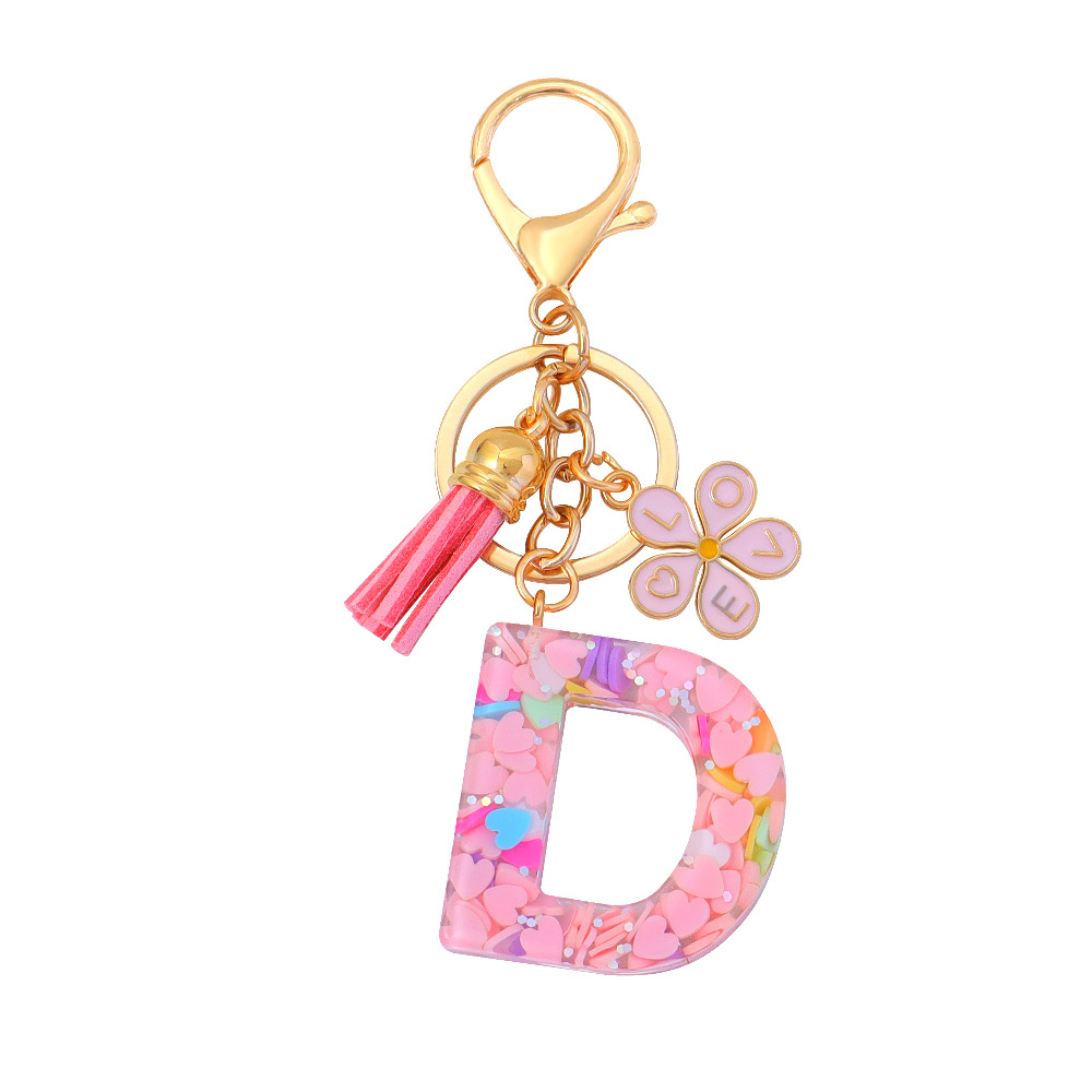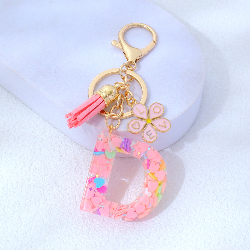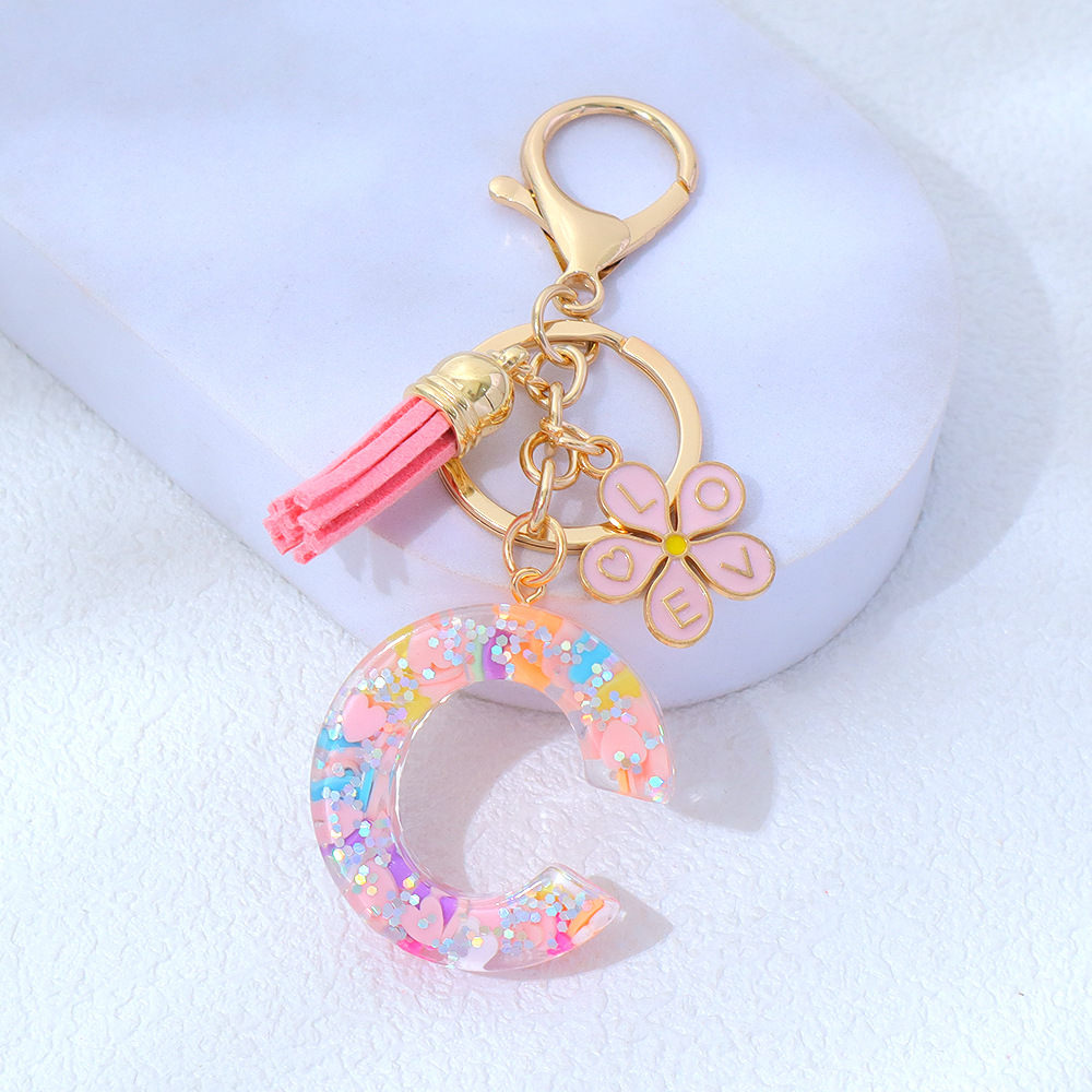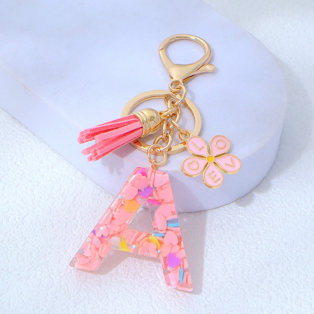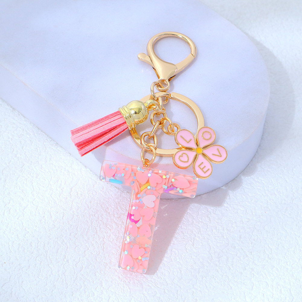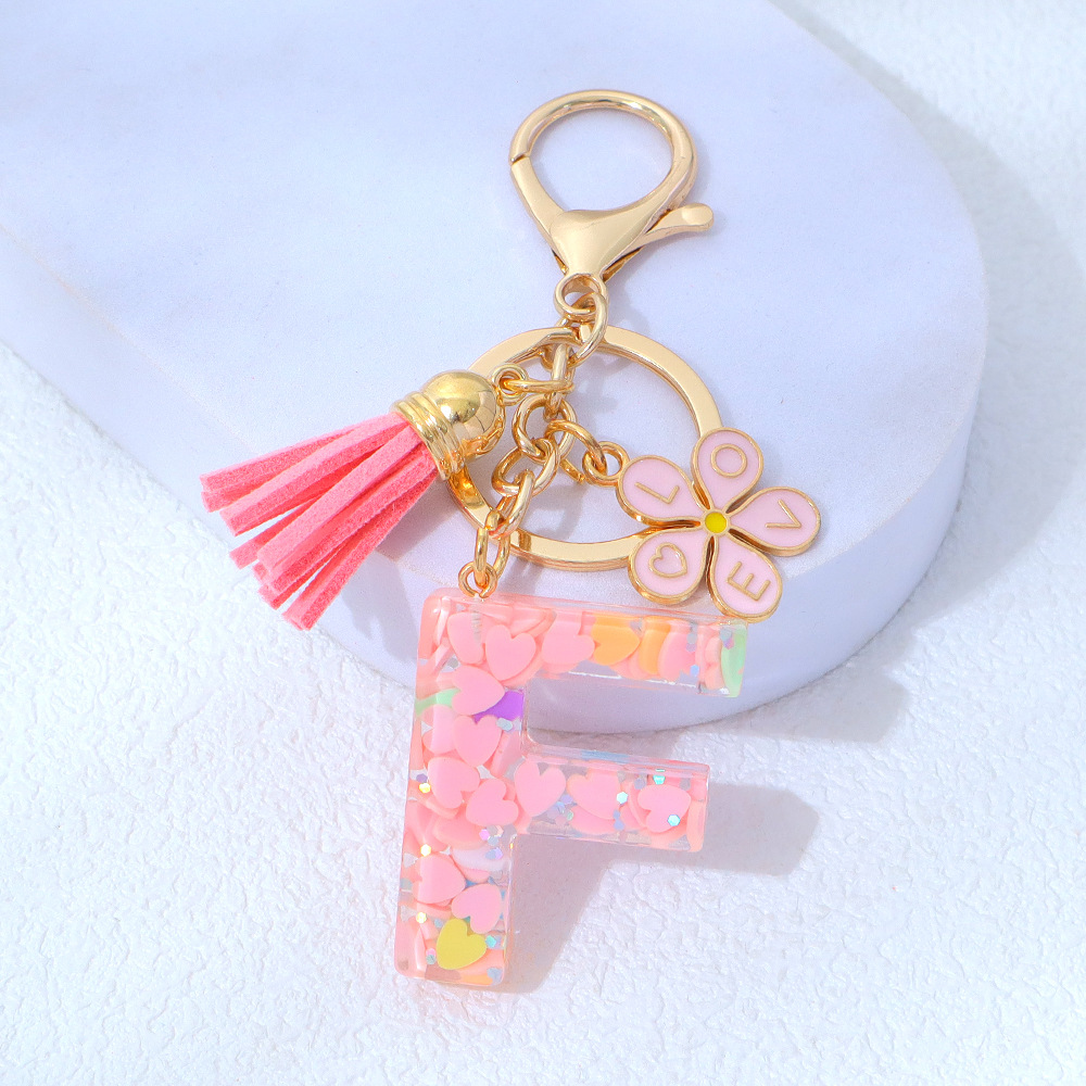 粉色爱心亮片滴胶字母钥匙扣金属小花流苏吊坠女士包包挂件小清新