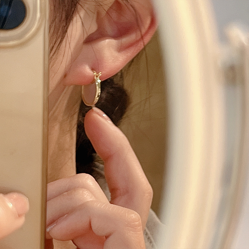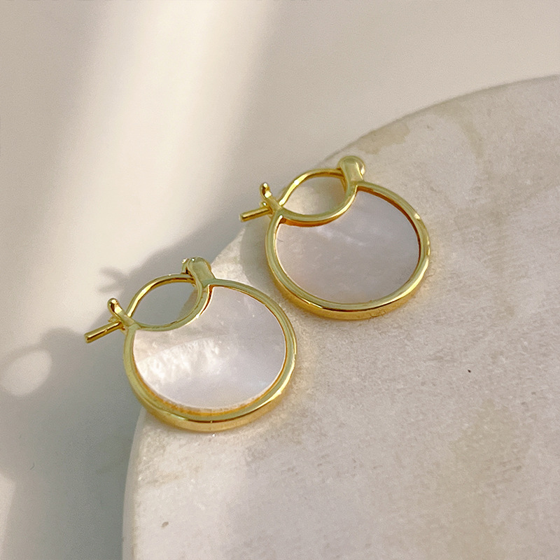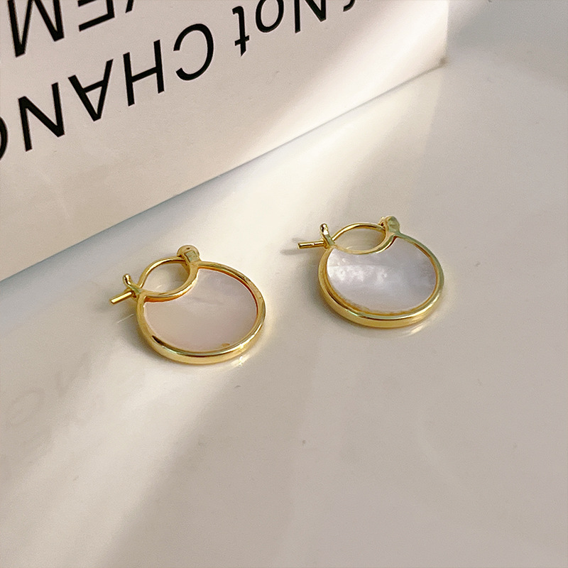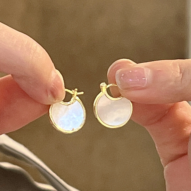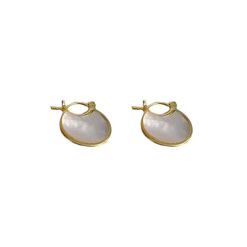 天然白贝母法式复古金属圆形耳环女小众设计感高级冷淡风耳扣耳饰