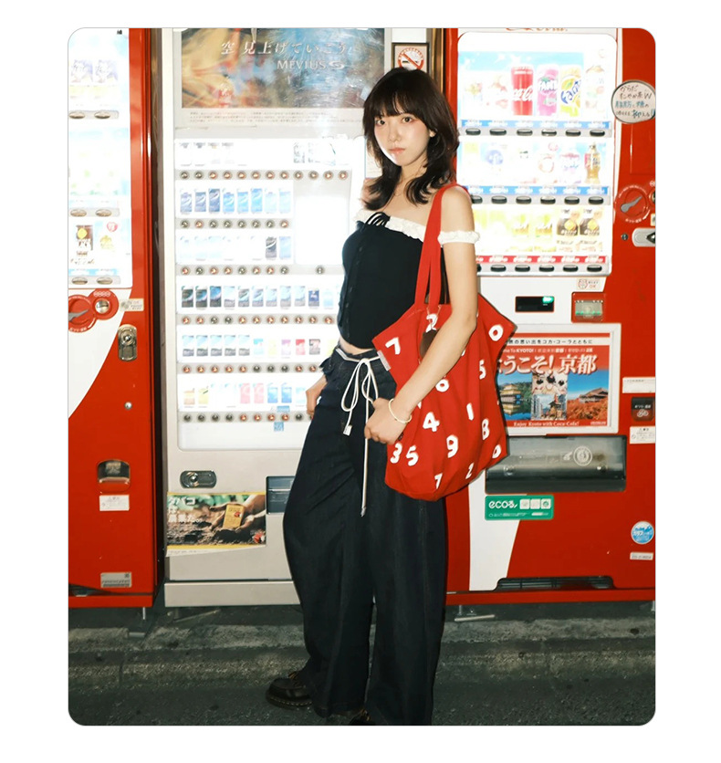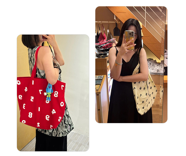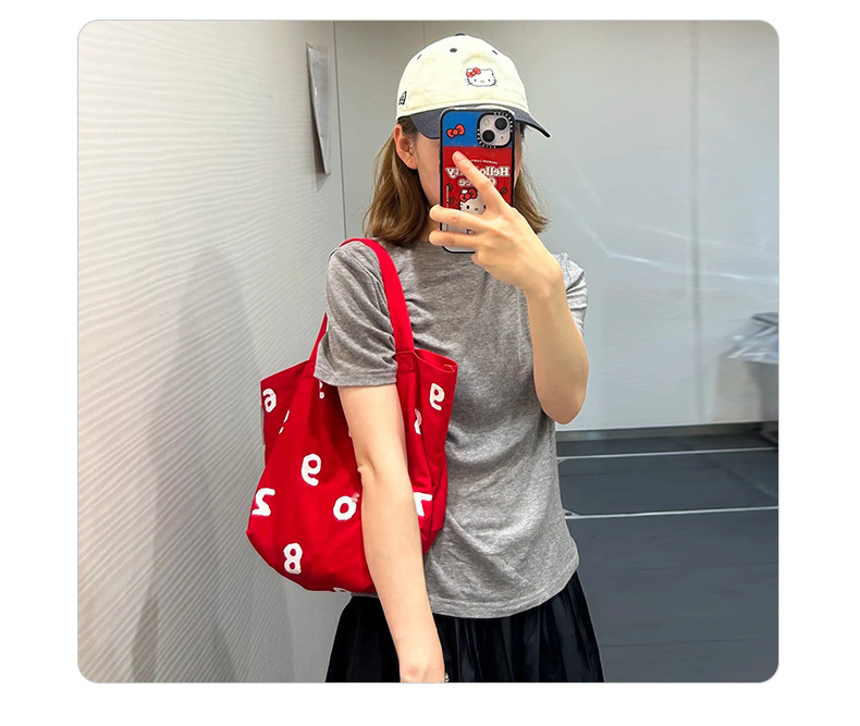 新款字母女刺绣棉质帆布包手拎包袋尼龙斜挎可折叠便携手提单肩包