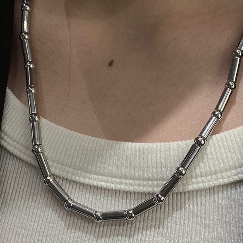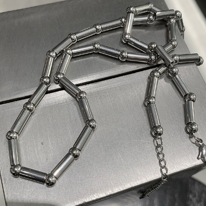 日韩小众竹节项链钛钢质感手工链女个性百搭冷淡风素链2021