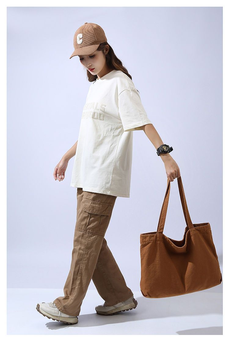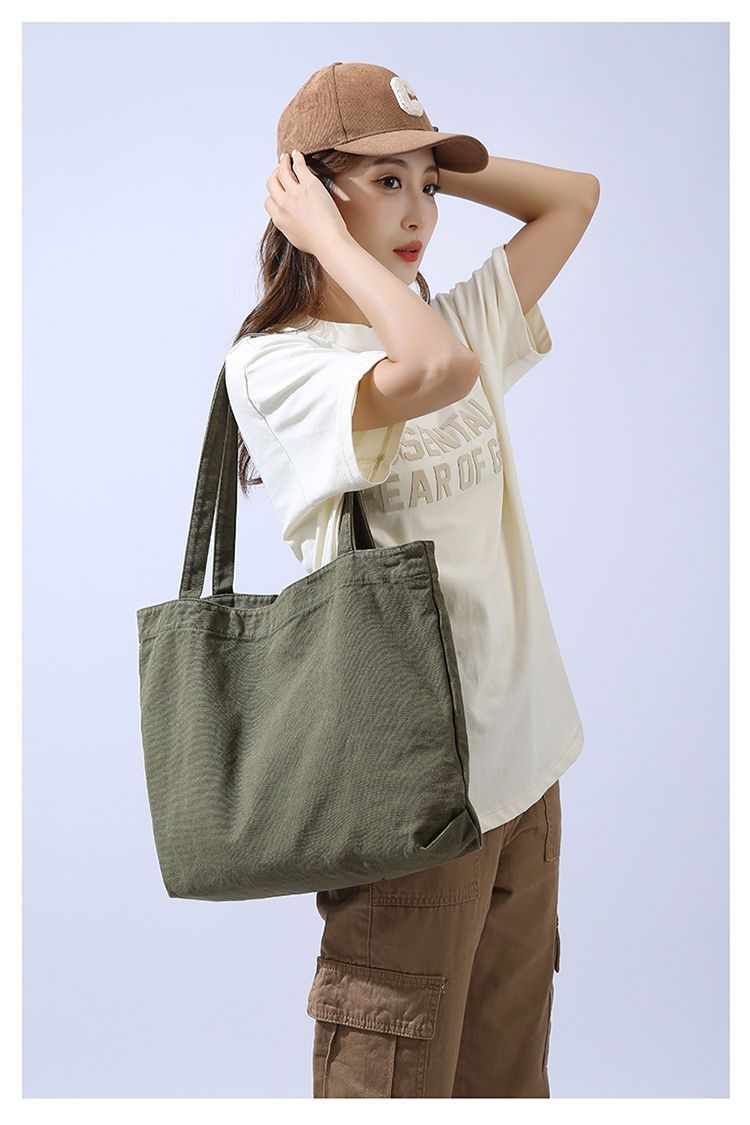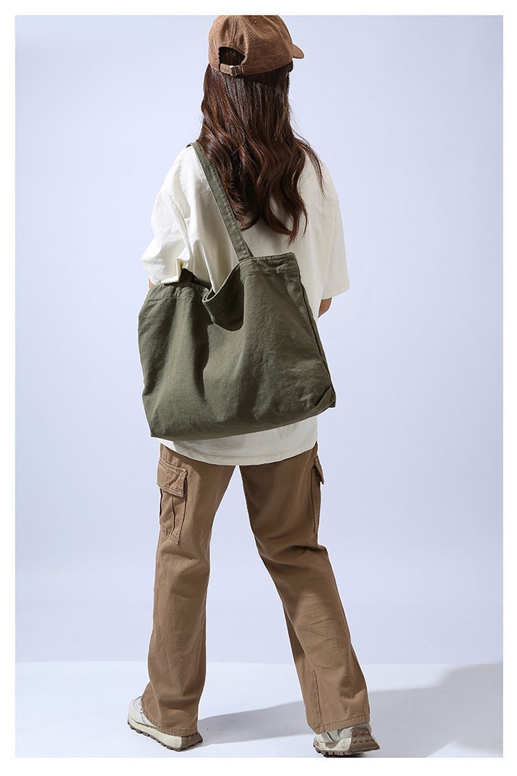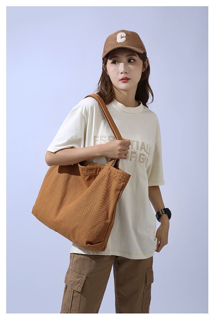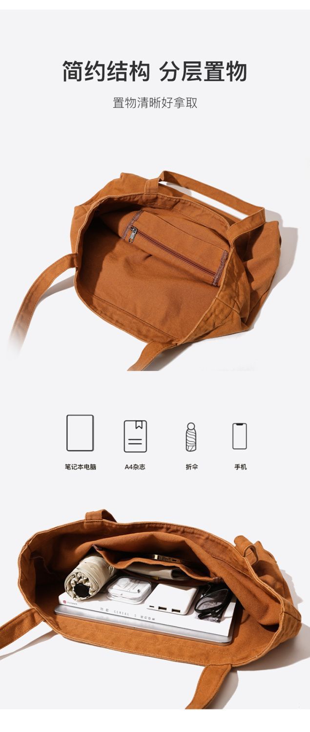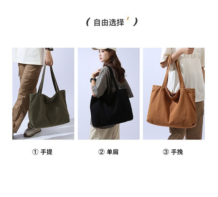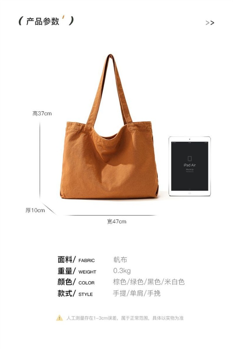 原创复古手提包大容量厚帆布森系托特包户外郊游学院休闲单肩包