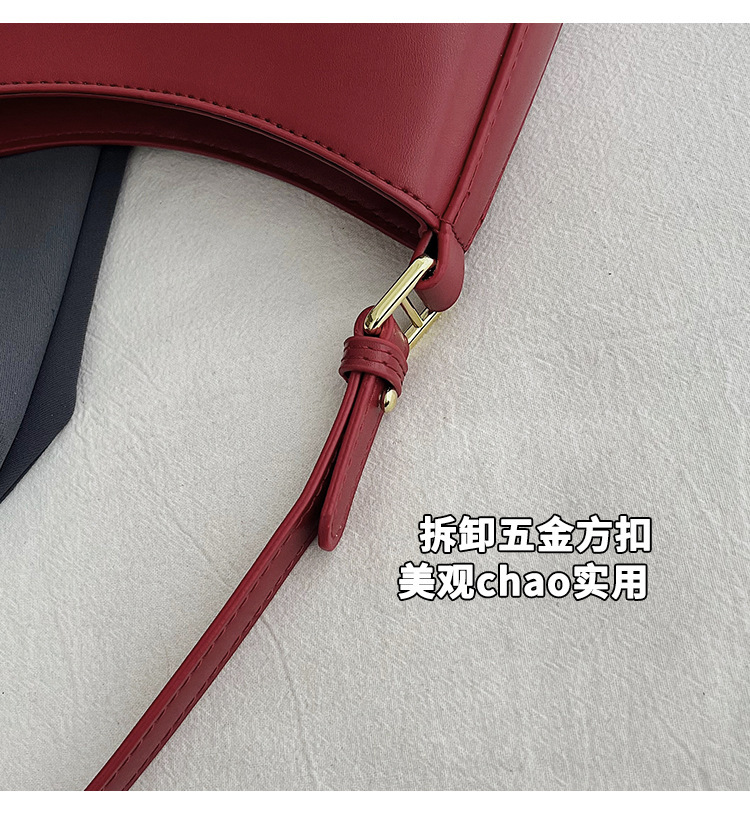 时髦腋下包复古酒红色结婚新娘包女士斜挎包牛皮包高级感法棍包女