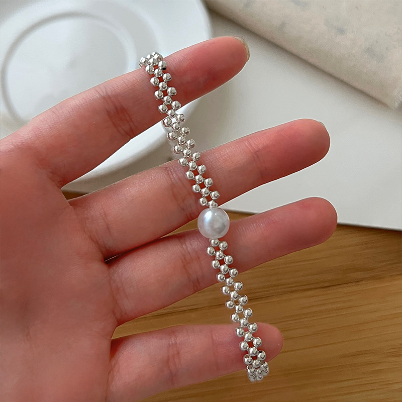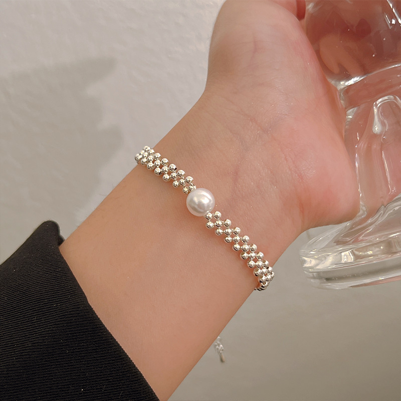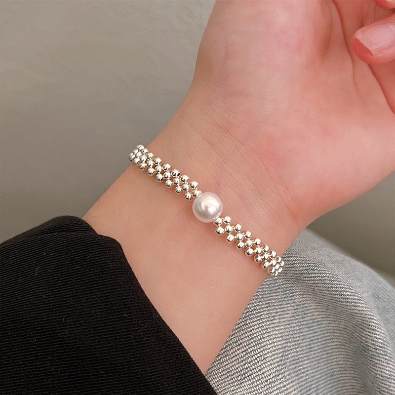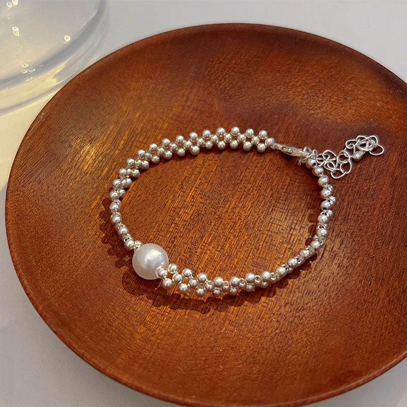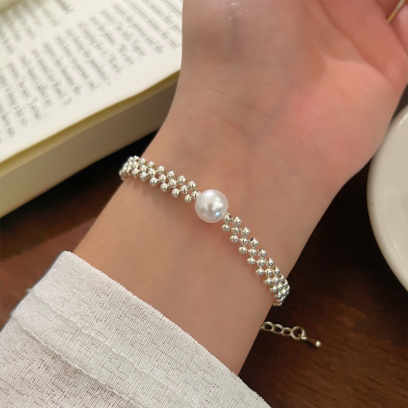 小圆珠编织珍珠手链女款轻奢时尚高级感小众设计百搭手饰镂空简约