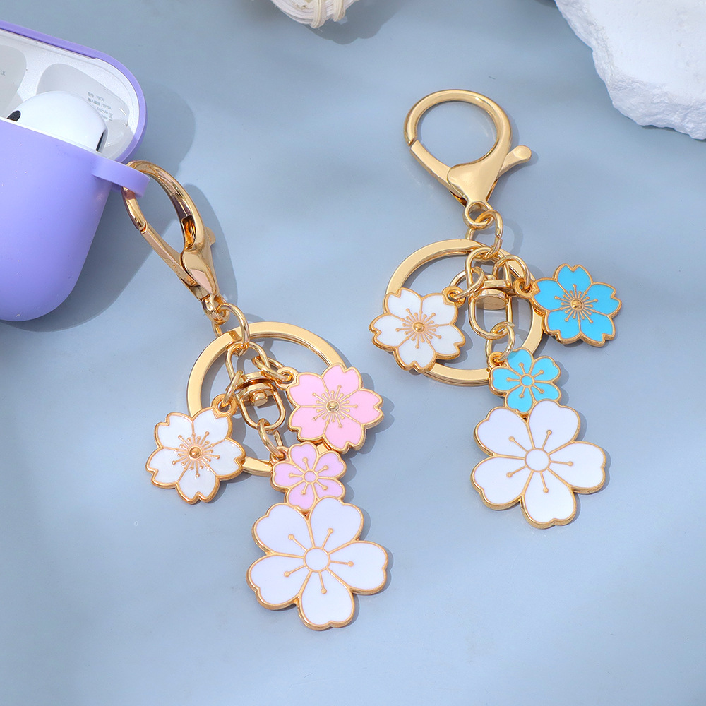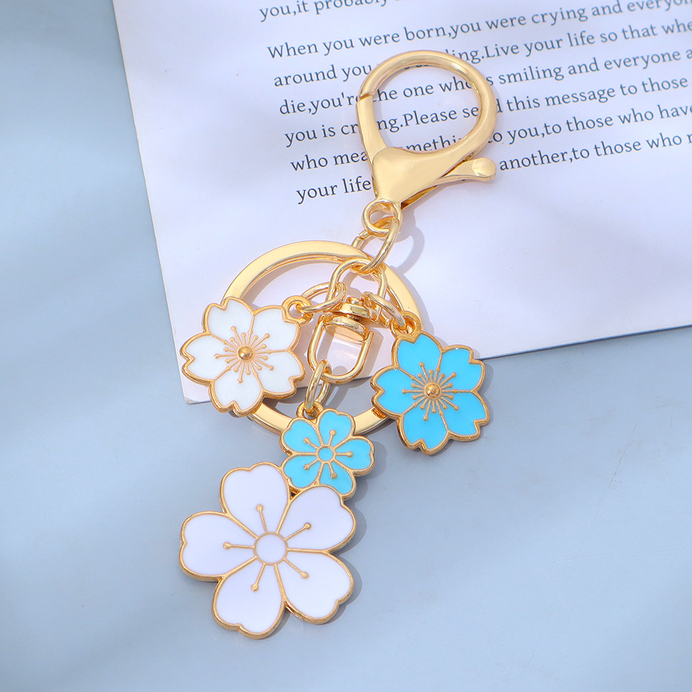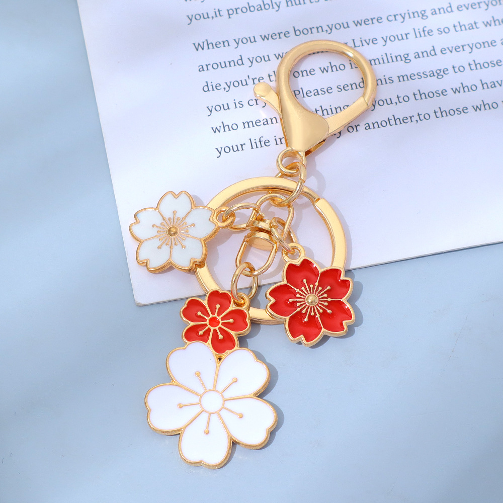 创意双色花吊坠钥匙扣金属樱花钥匙圈少女心Airpod包包挂件