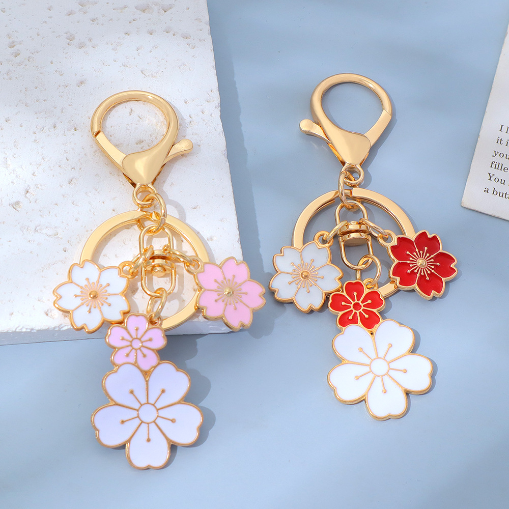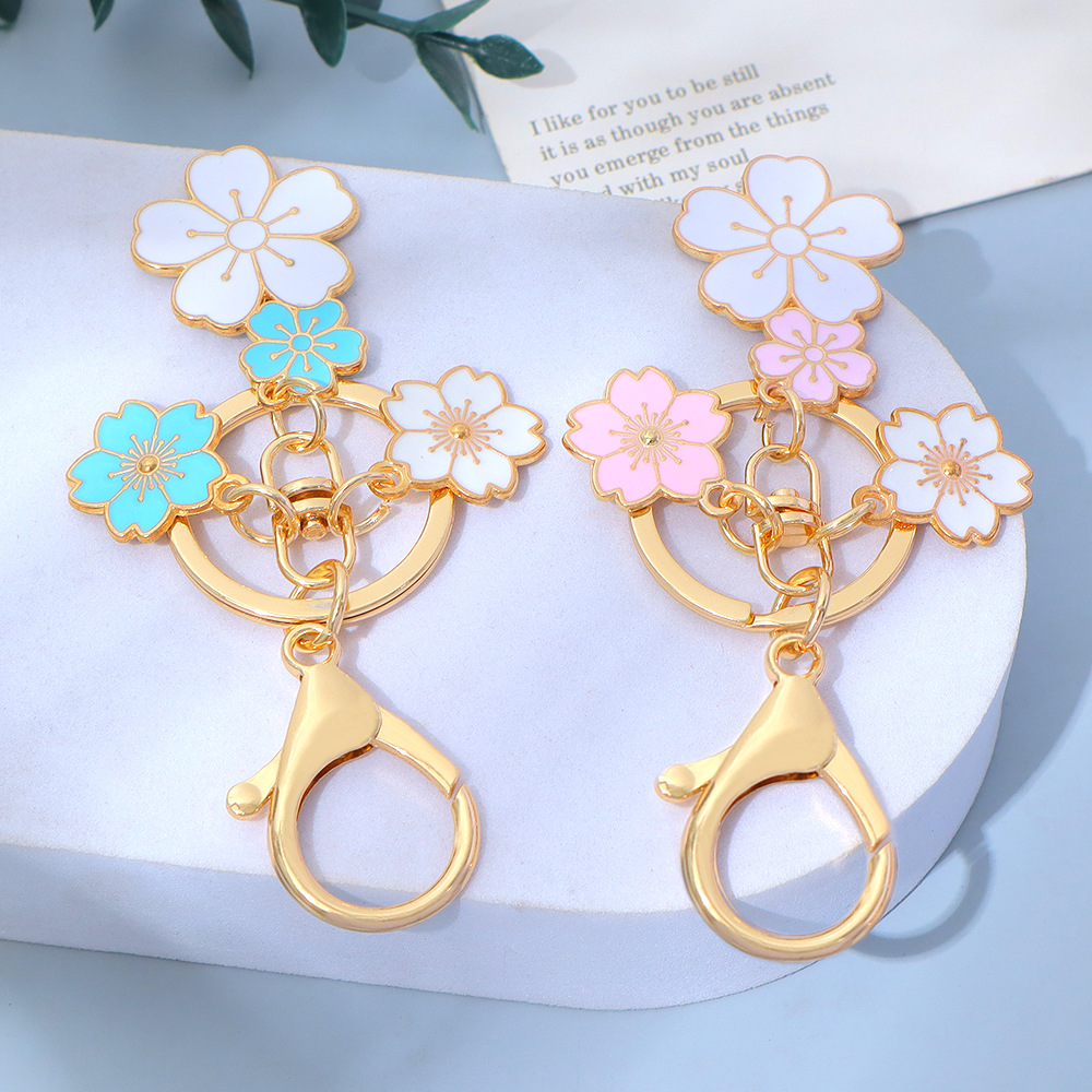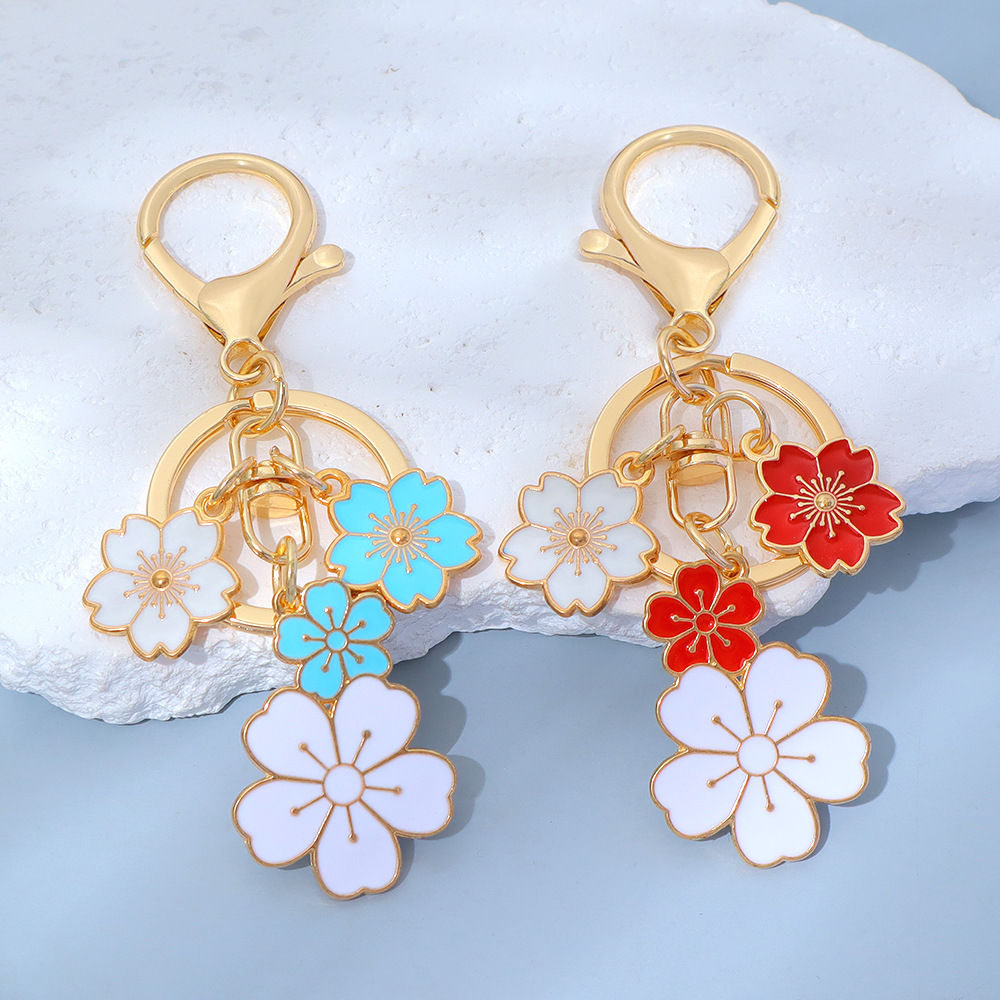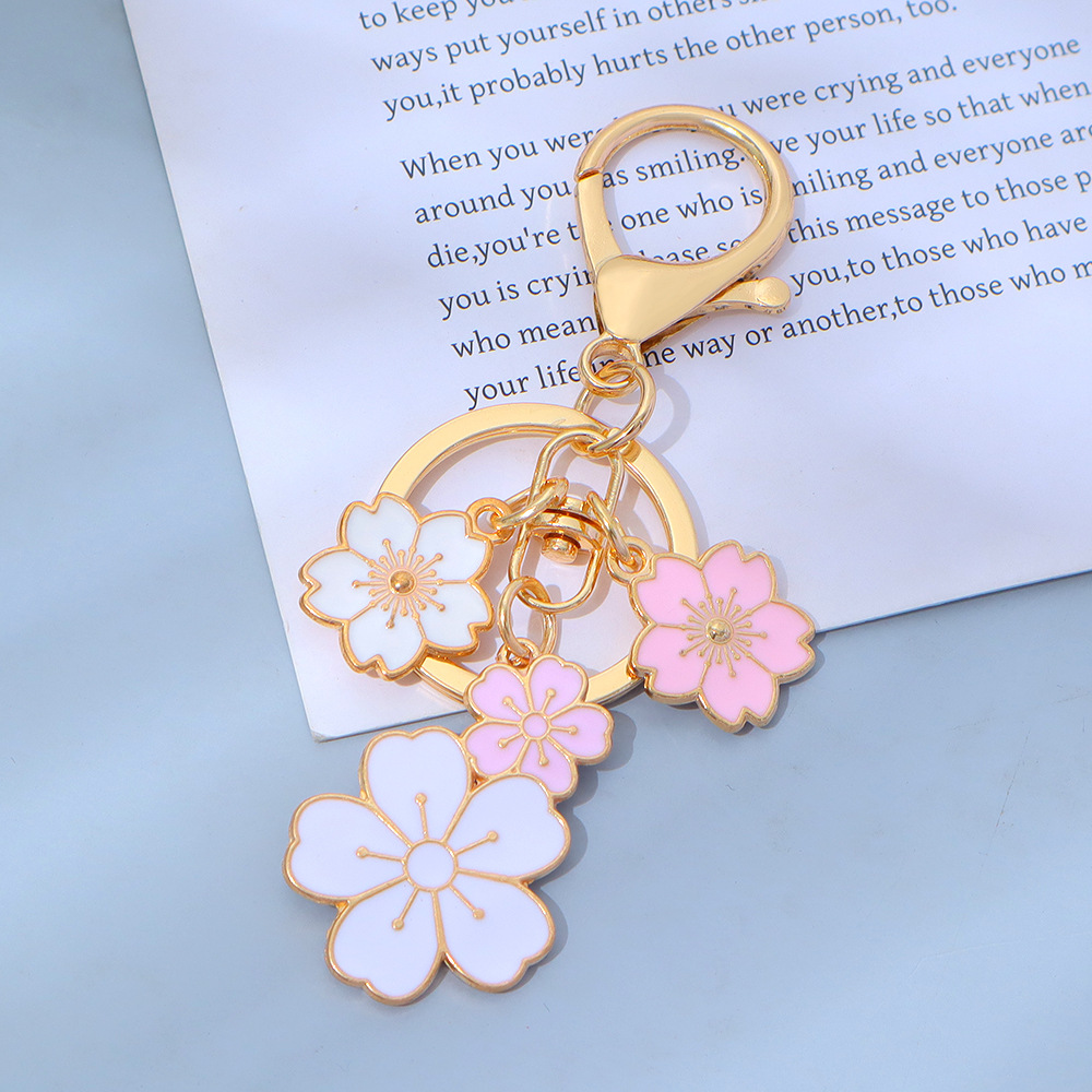 创意双色花吊坠钥匙扣金属樱花钥匙圈少女心Airpod包包挂件