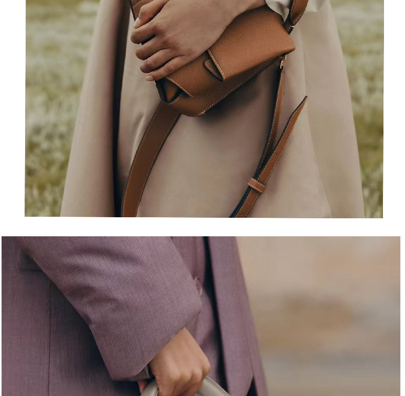 跨境爆款POLENE微笑包时尚真皮高级感小众设计女包褶皱单肩手提包