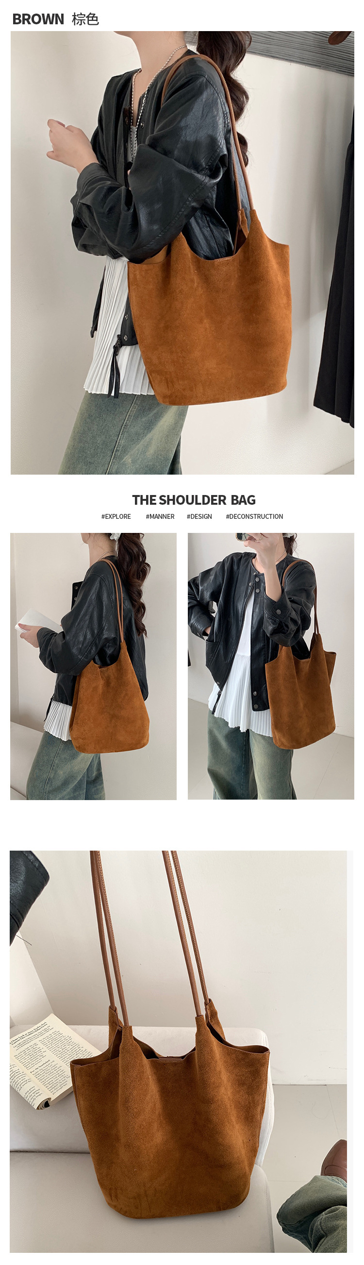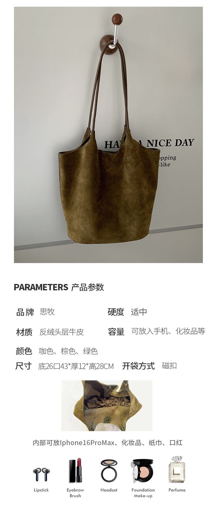 大容量真皮单肩包2025新款小众复古通勤磨砂牛皮麂皮大包女托特包