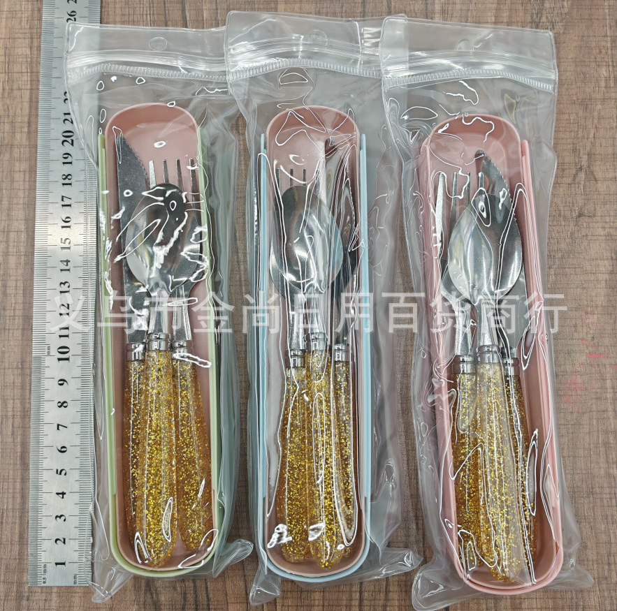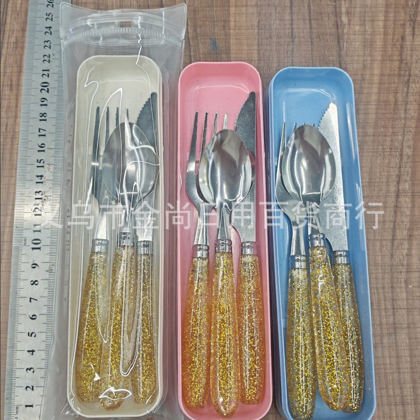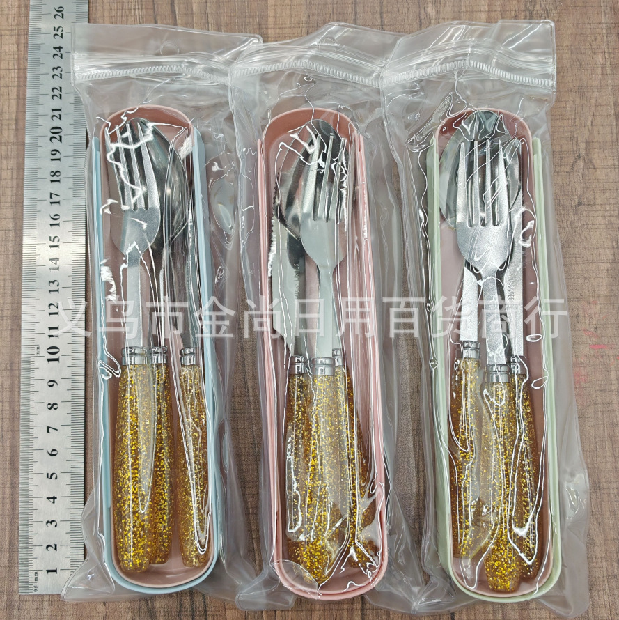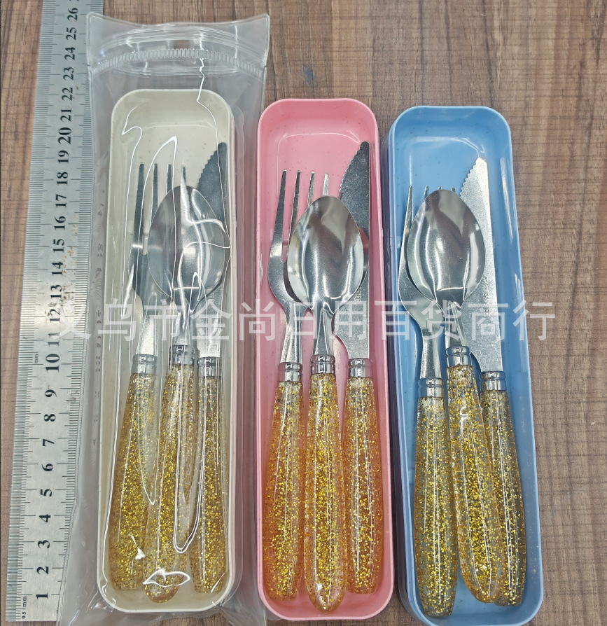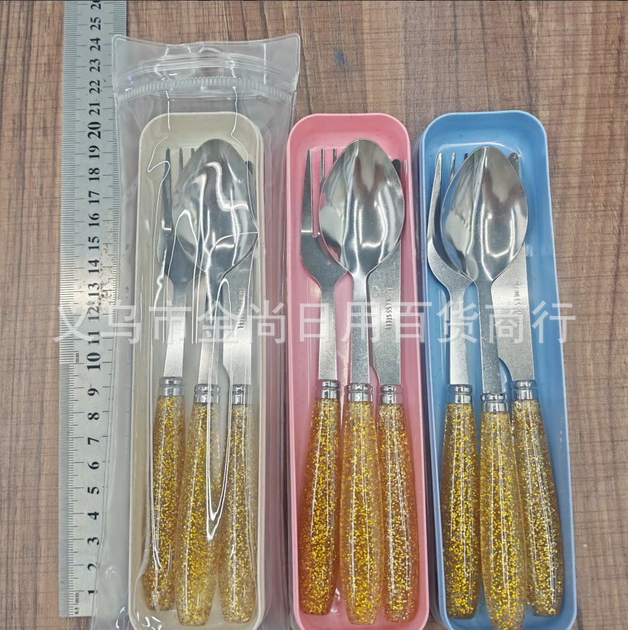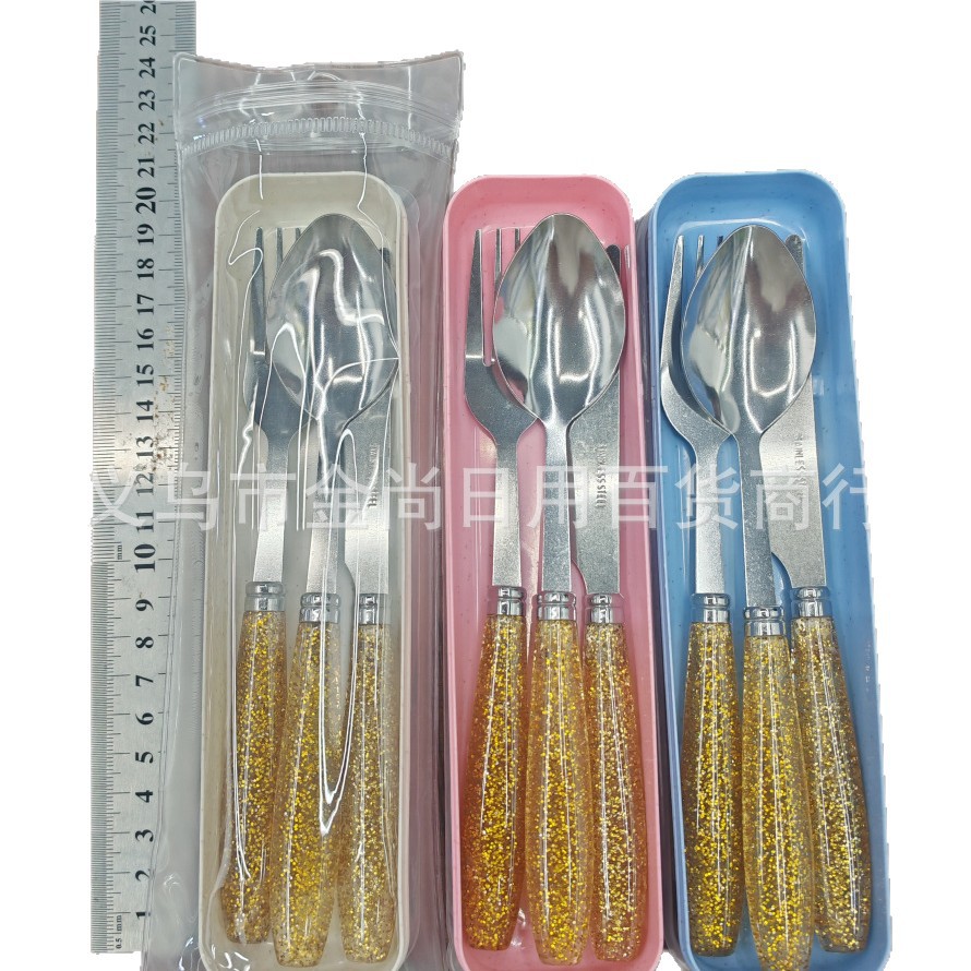 不锈钢彩柄高档西餐具套装牛排刀叉勺茶勺沙拉叉方便携带餐具套装
