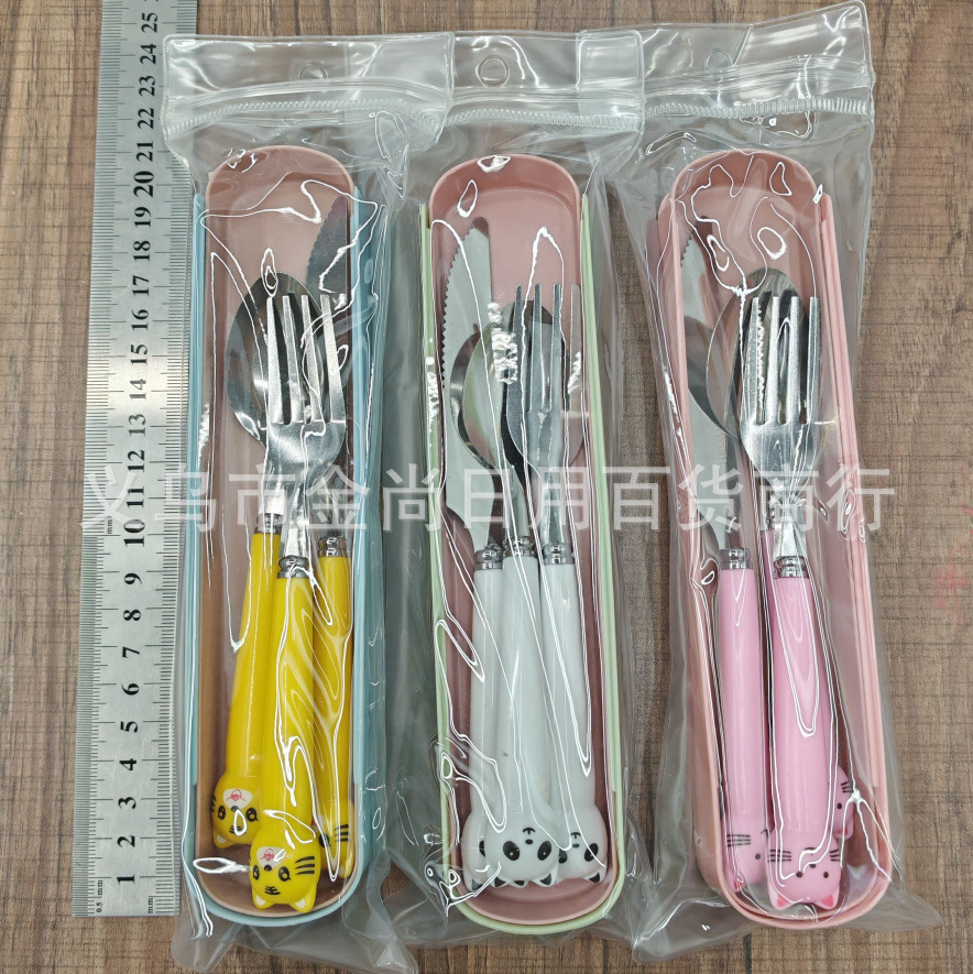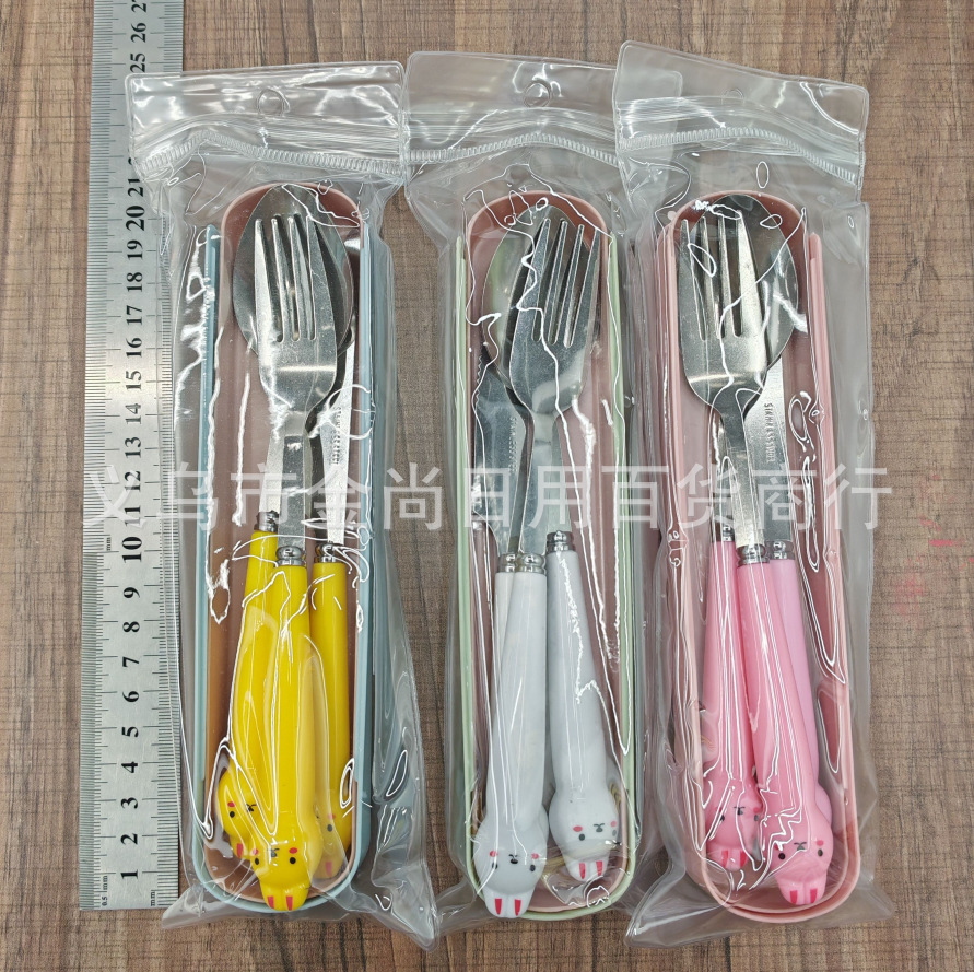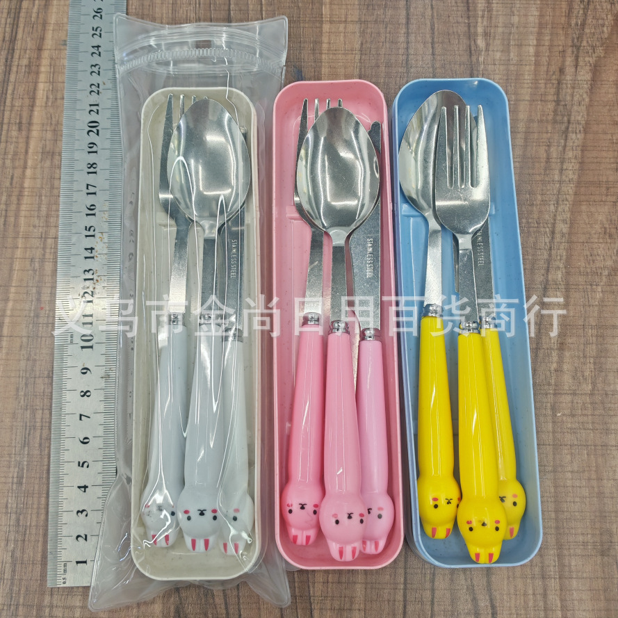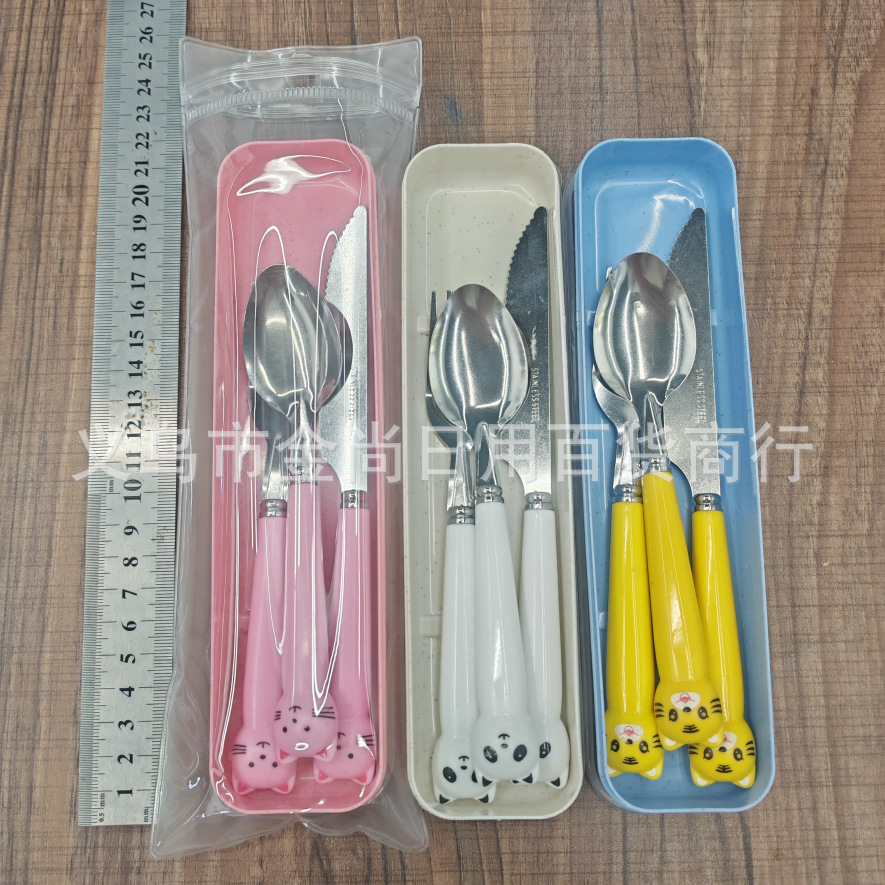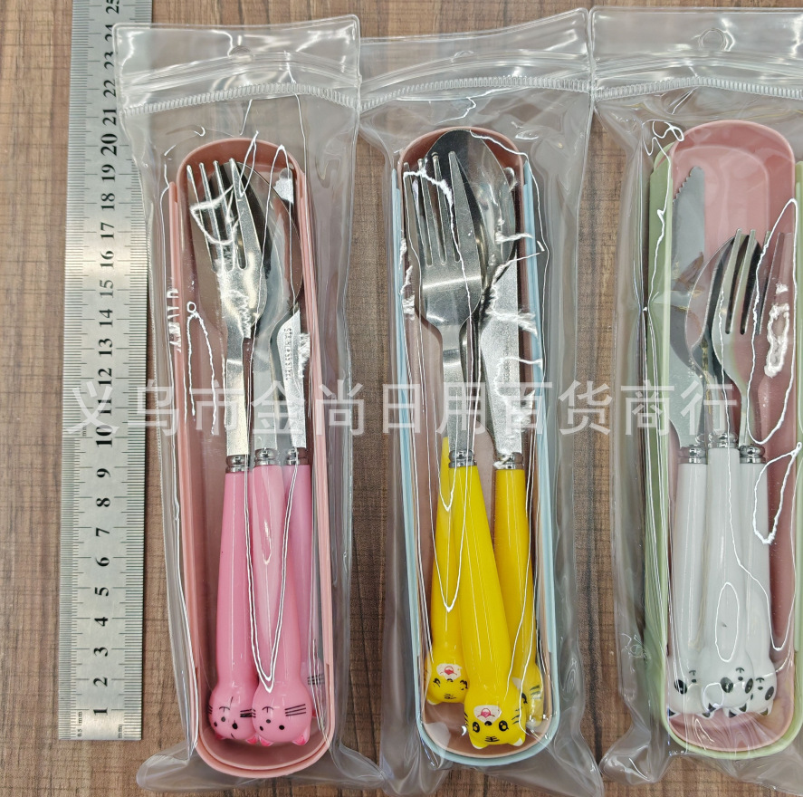 卡通萌趣勺子叉子刀套装高颜值三件套学生儿童便携餐具收纳盒