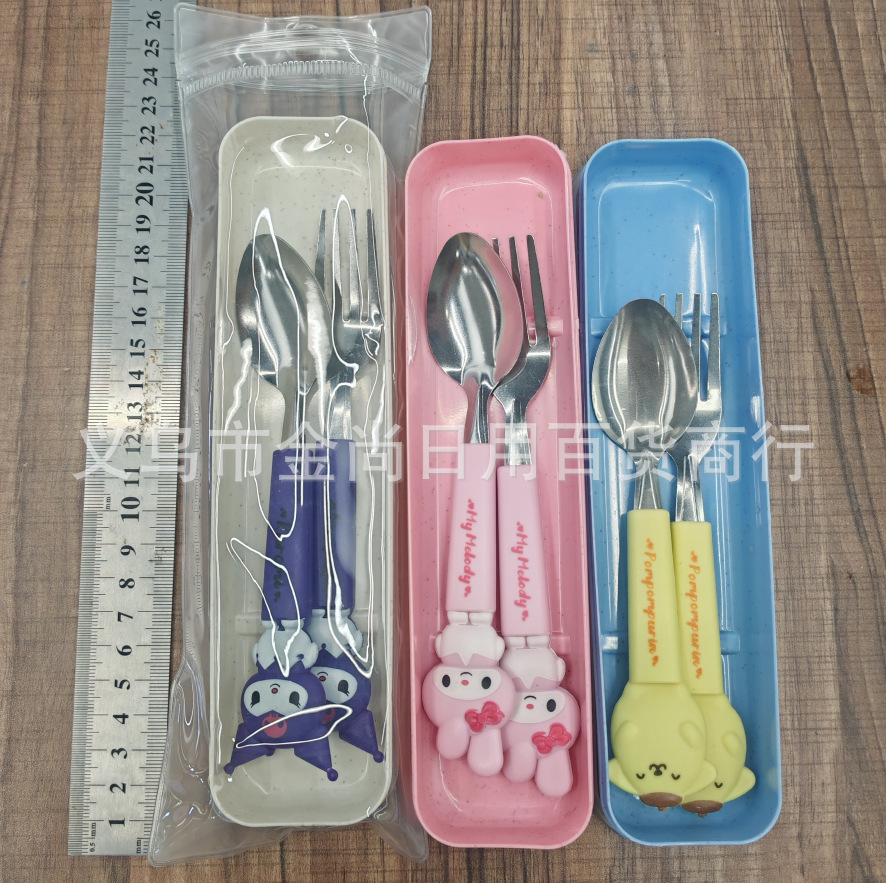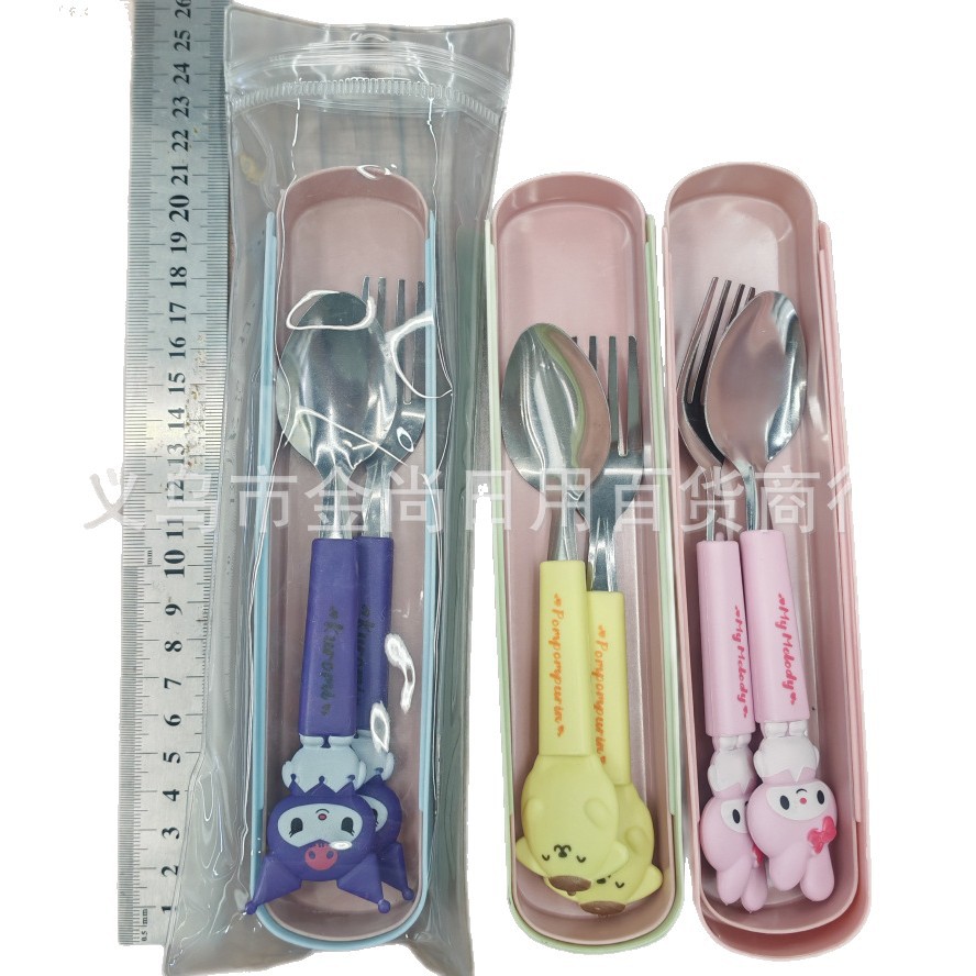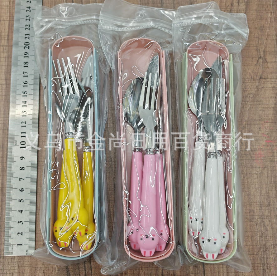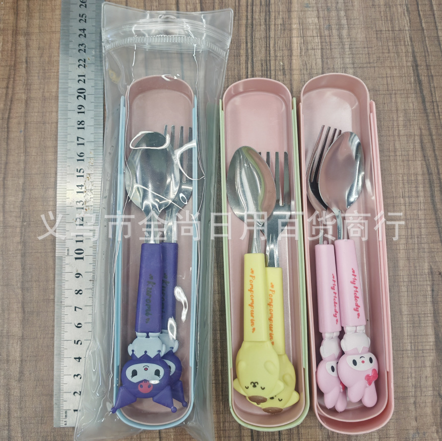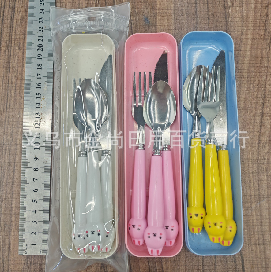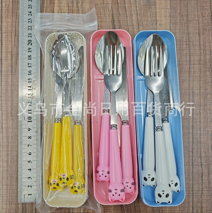 卡通萌趣勺子叉子刀套装高颜值三件套学生儿童便携餐具收纳盒