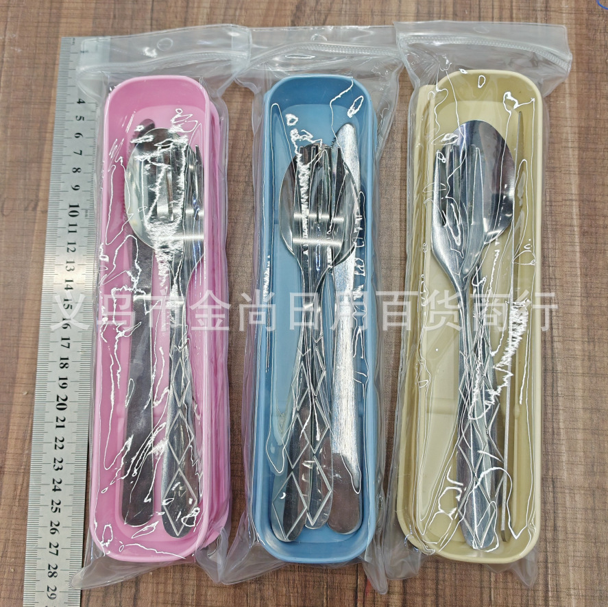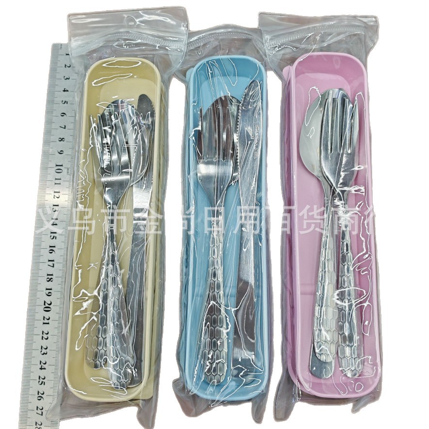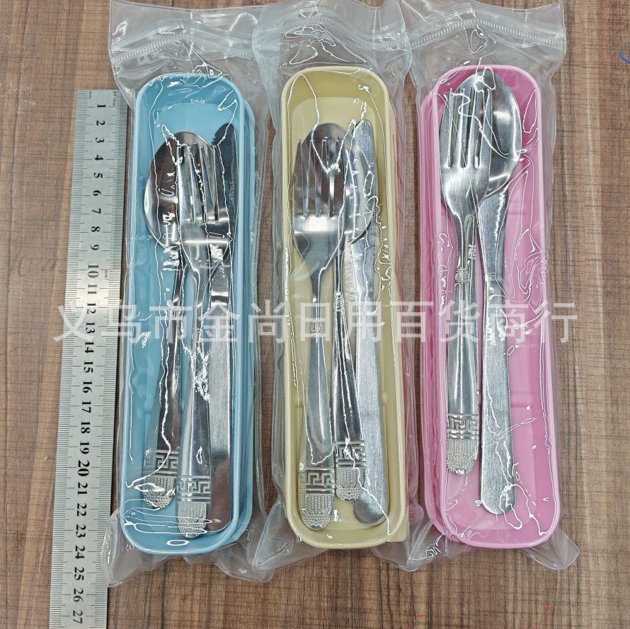 简约花纹不锈钢刀叉勺筷餐具套装不锈钢西餐餐具刀叉勺盒装