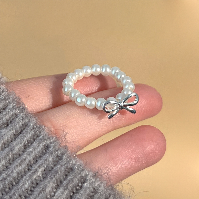 韩系蝴蝶结珍珠串珠戒指女气质ins风简约百搭高级感食指戒手饰品