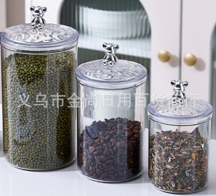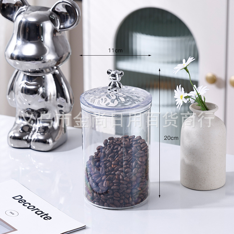 新款咖啡豆小熊头密封罐密封盒零食糖果储物罐干果瓜子食品收纳罐