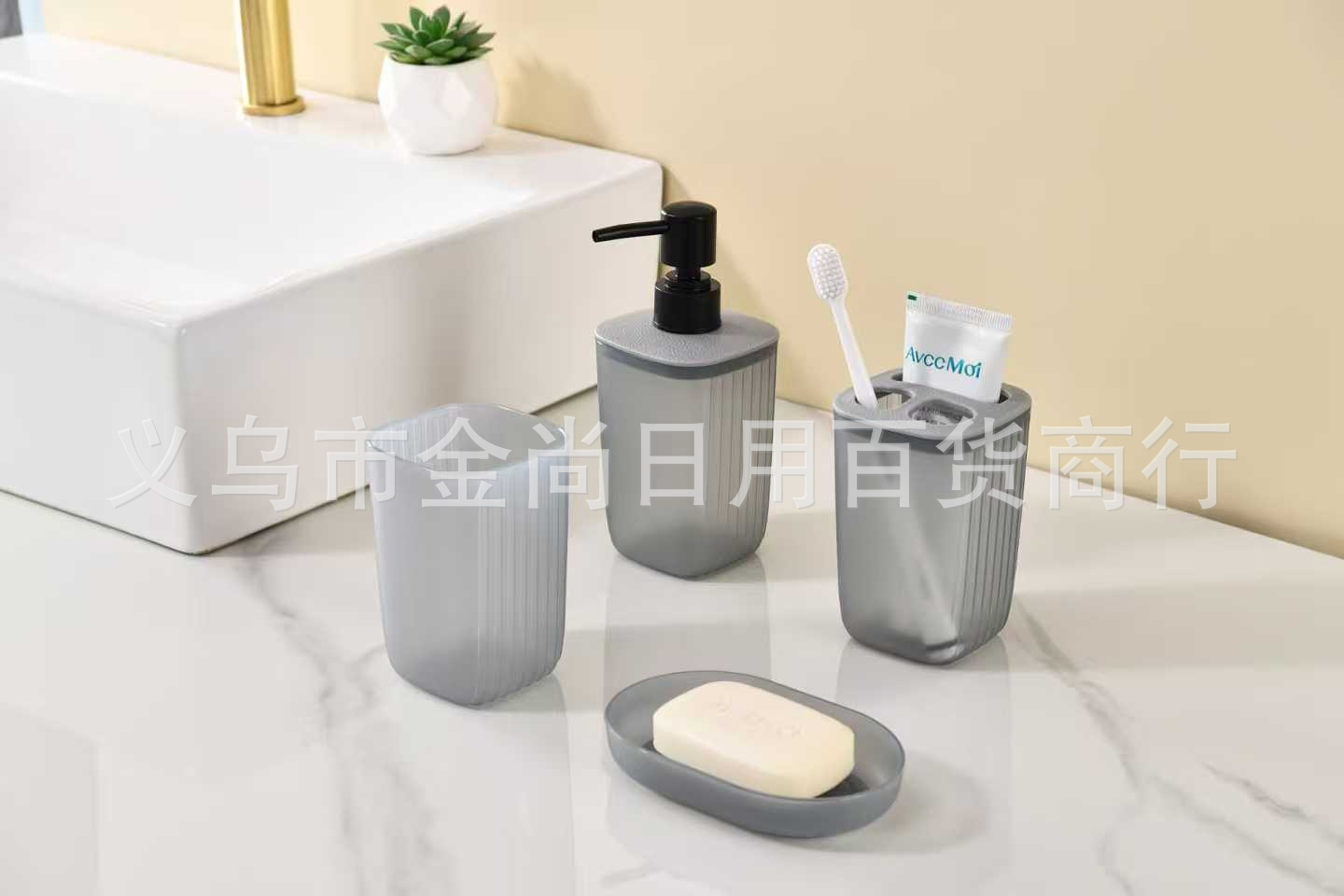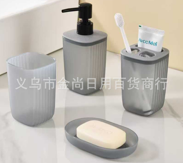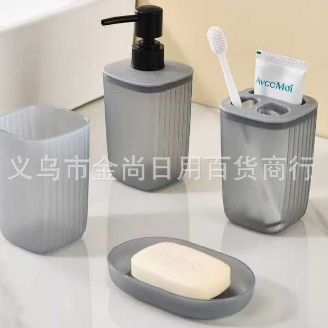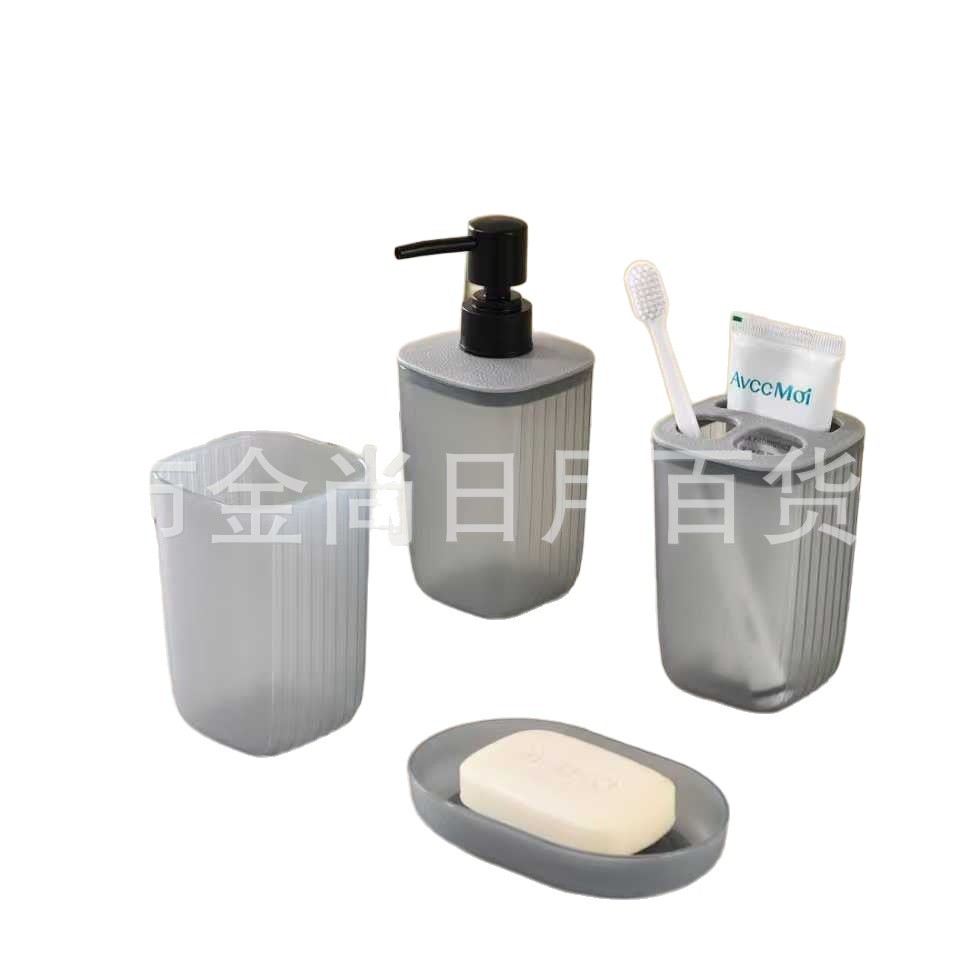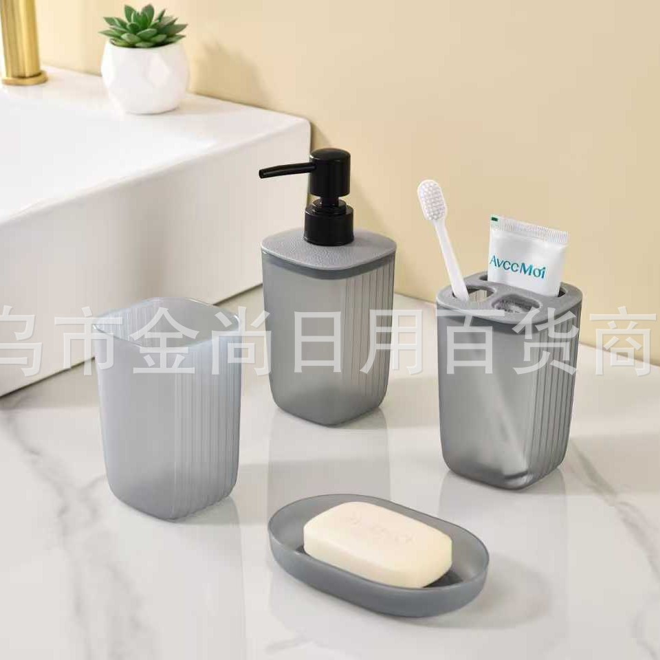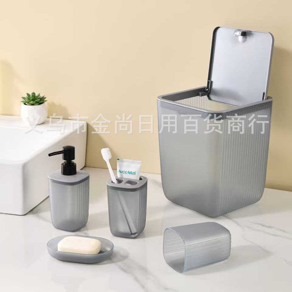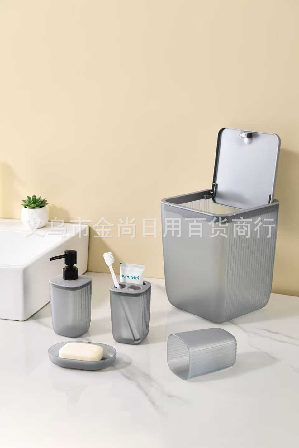 高级感透明卫浴条纹透明形5件套沐浴露瓶洗漱杯牙刷杯皂盒垃圾桶