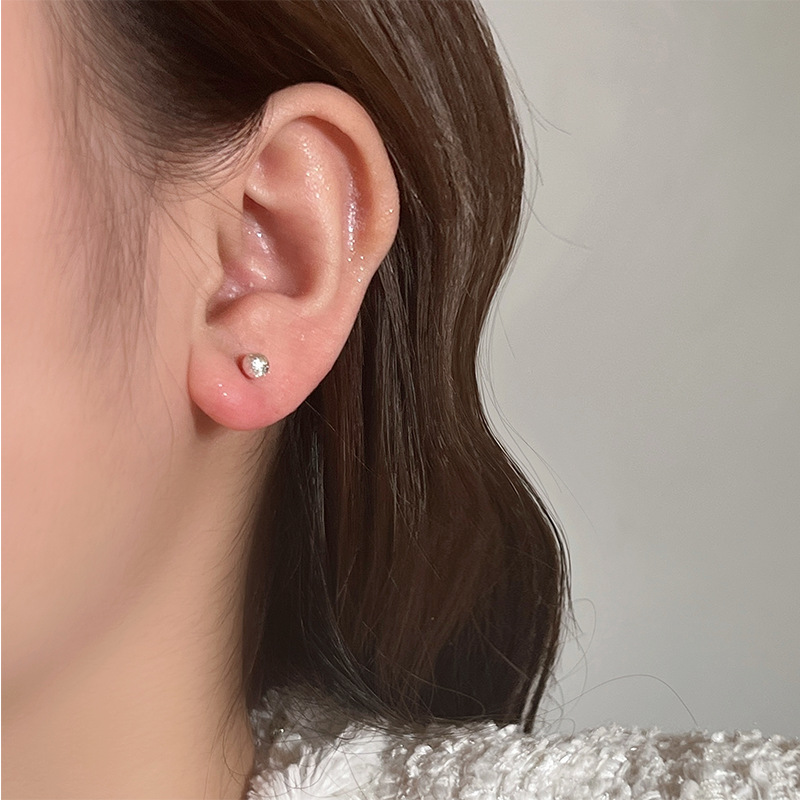 轻奢百搭简约可爱精致圆形几何S925银耳钉法式复古时髦质感耳饰