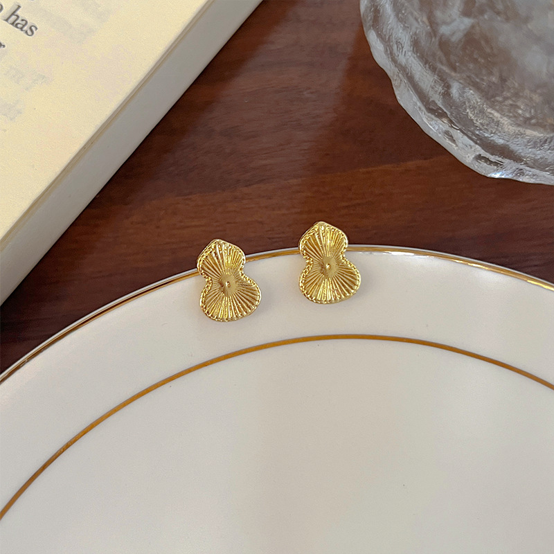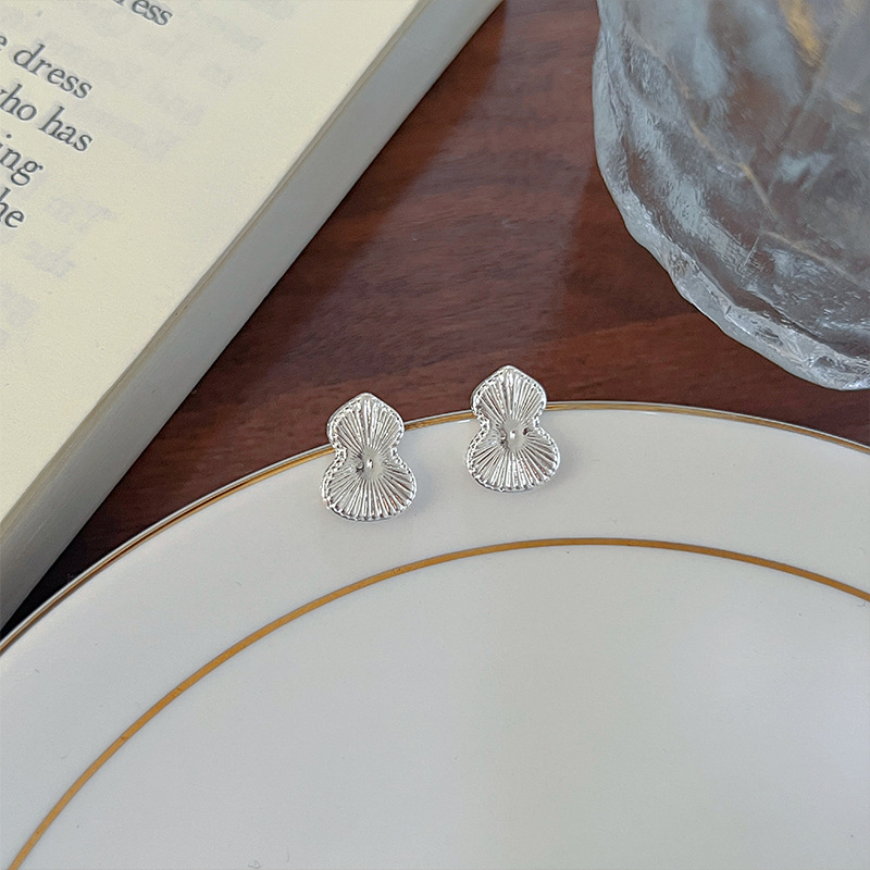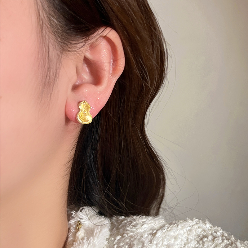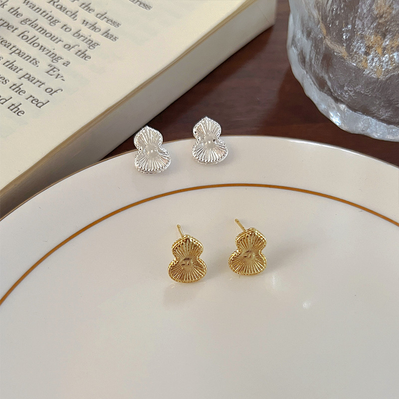 S925银新中式纹理葫芦金银色耳钉耳饰时尚气质百搭小众精致耳饰