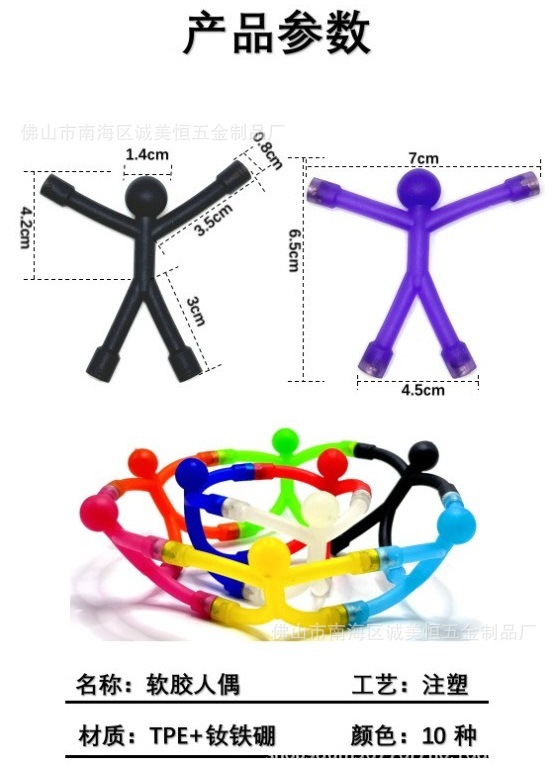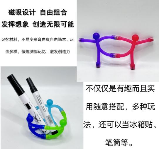 百变软胶爬墙磁性小人益智磁铁火柴人创意减压玩具迷你彩色小人