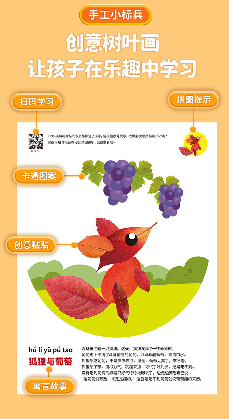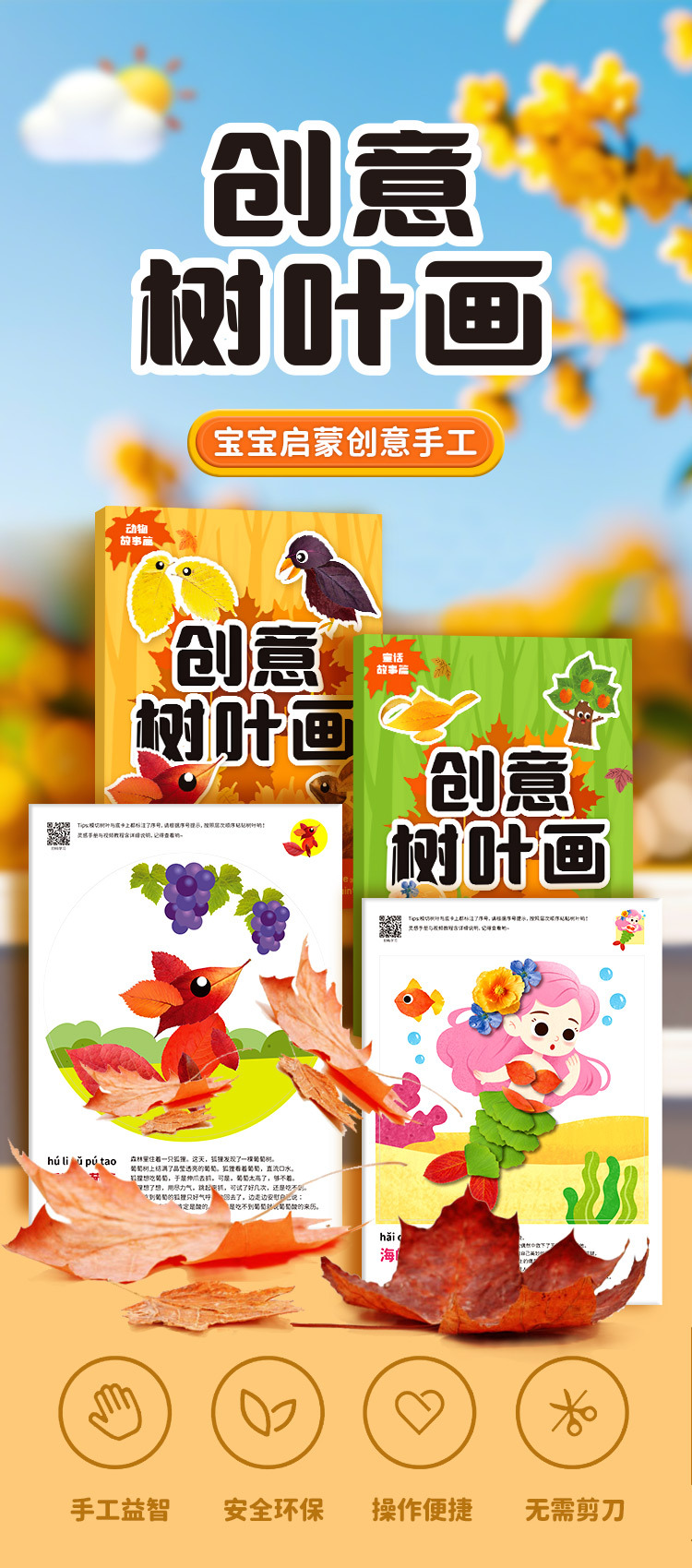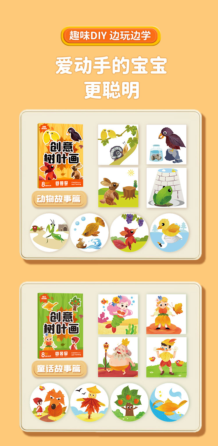 创意树叶画儿童DIY手工材料包粘贴植物标本画册幼儿宝宝益智玩具