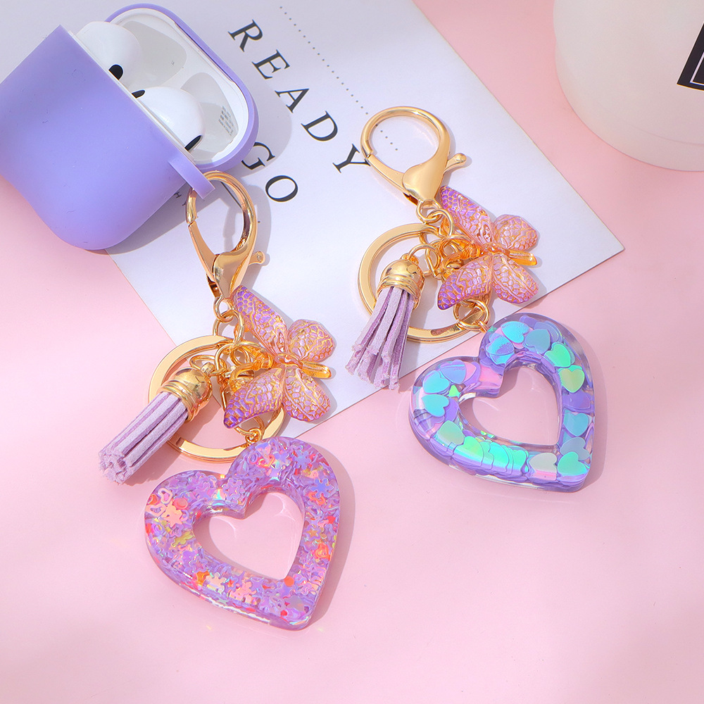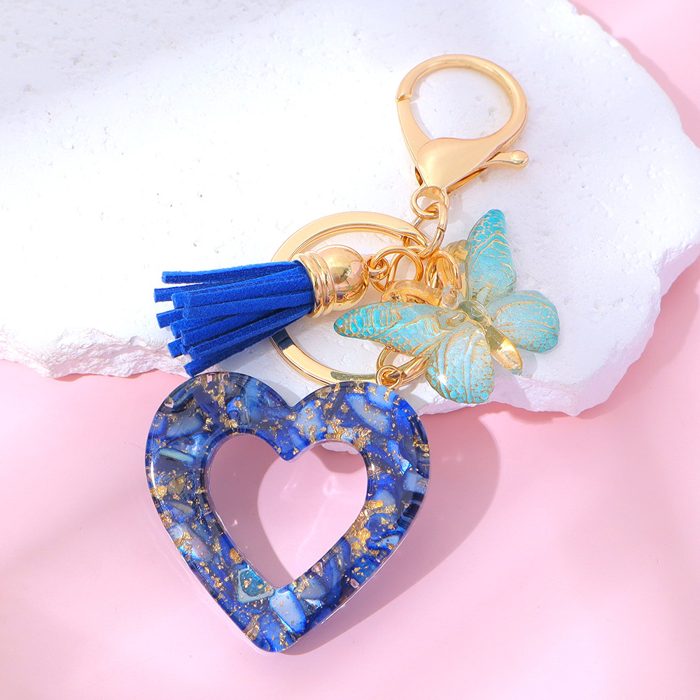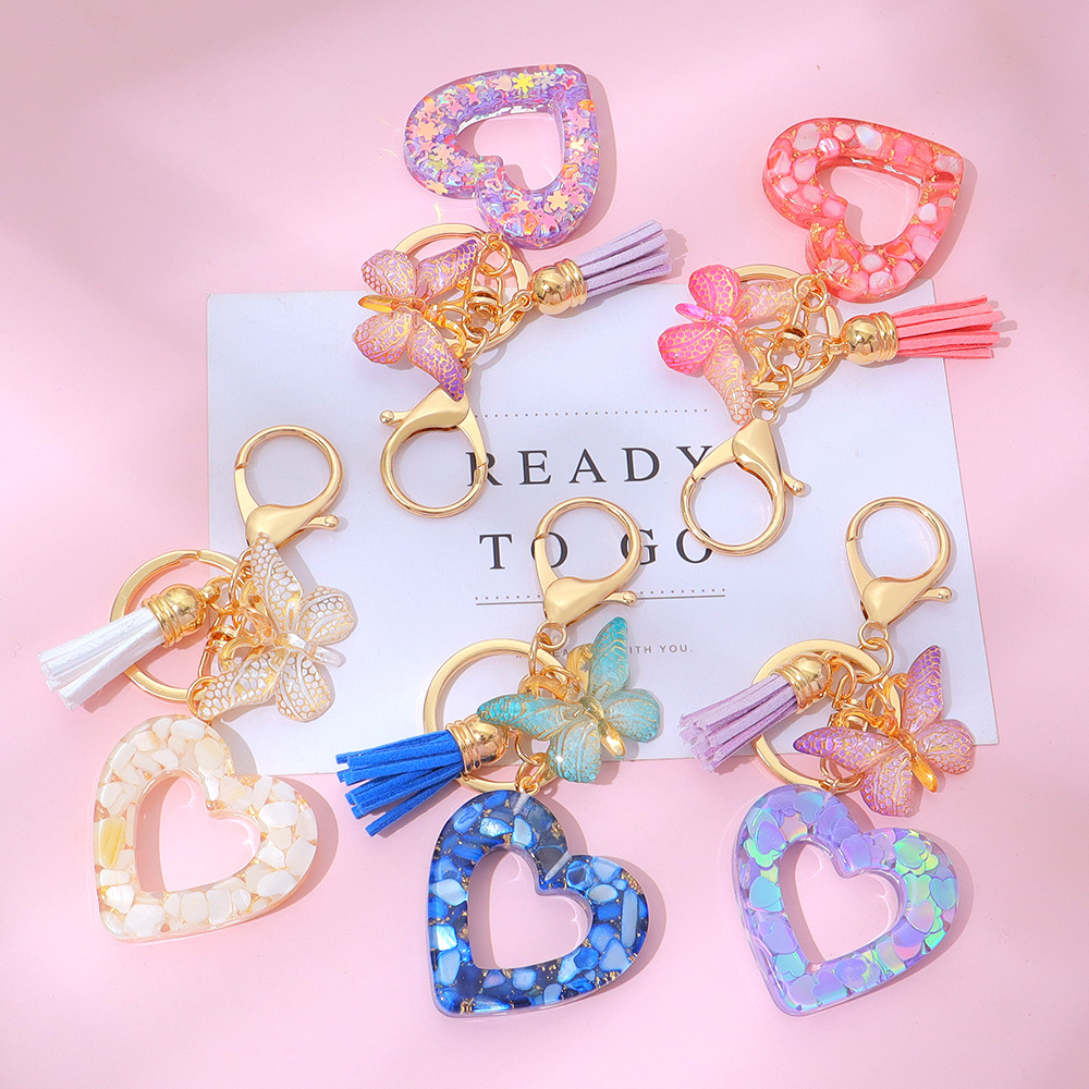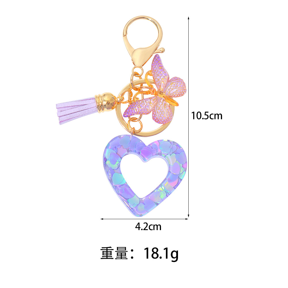 树脂镂空爱心钥匙扣流苏蝴蝶包包钥匙链挂件情人节礼物跨境热销
