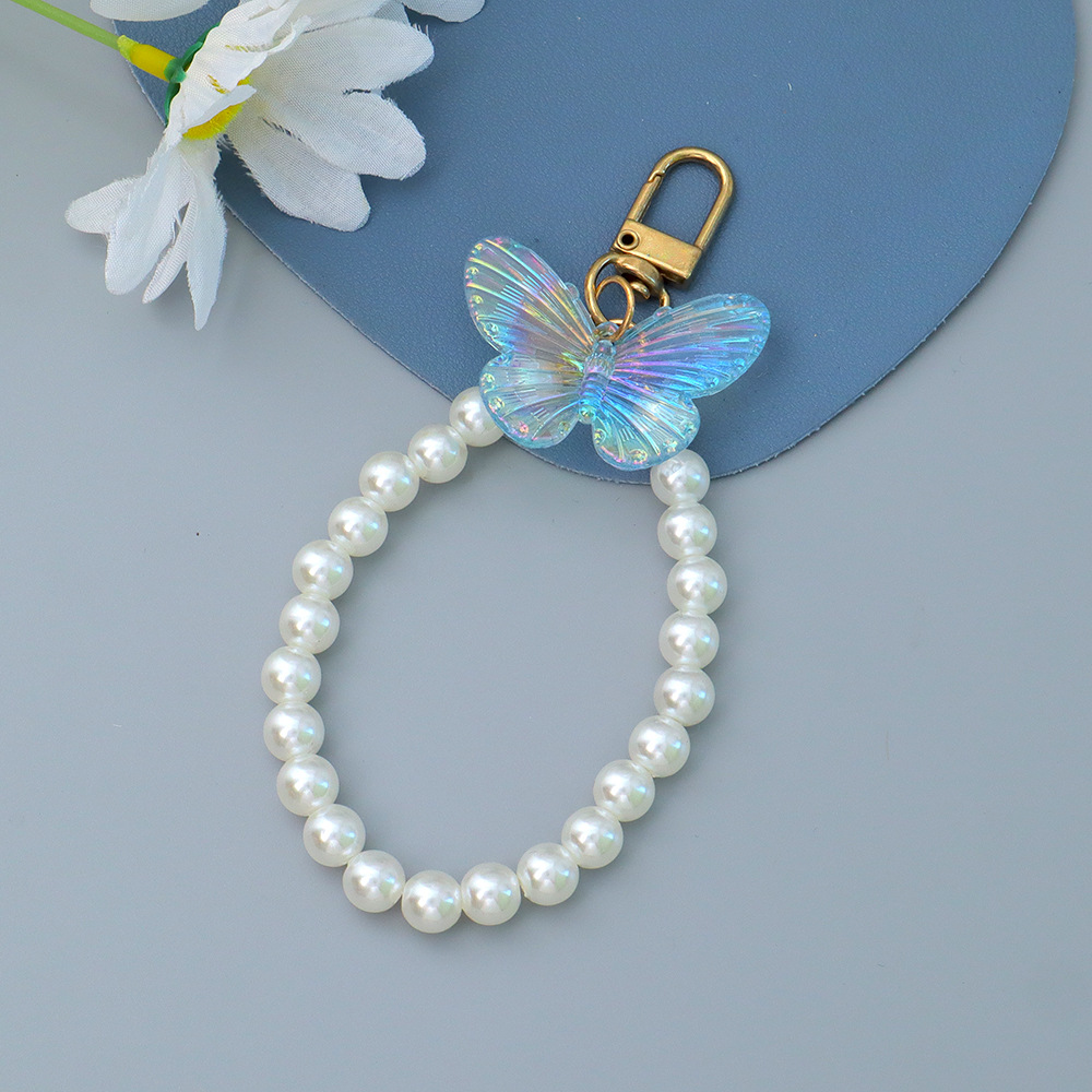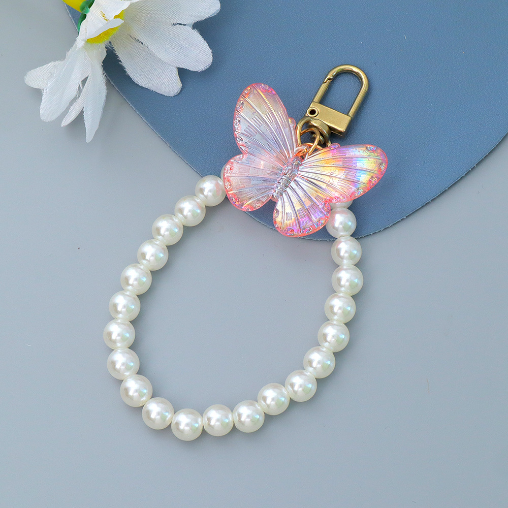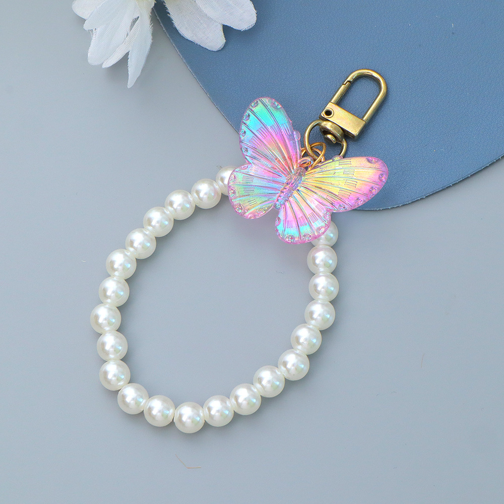 炫彩亚克力蝴蝶钥匙扣女生防丢失手机珍珠链包包耳机壳装饰挂件