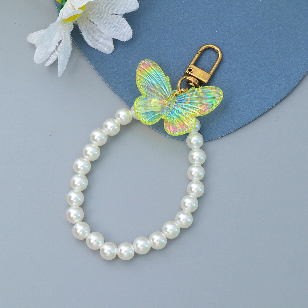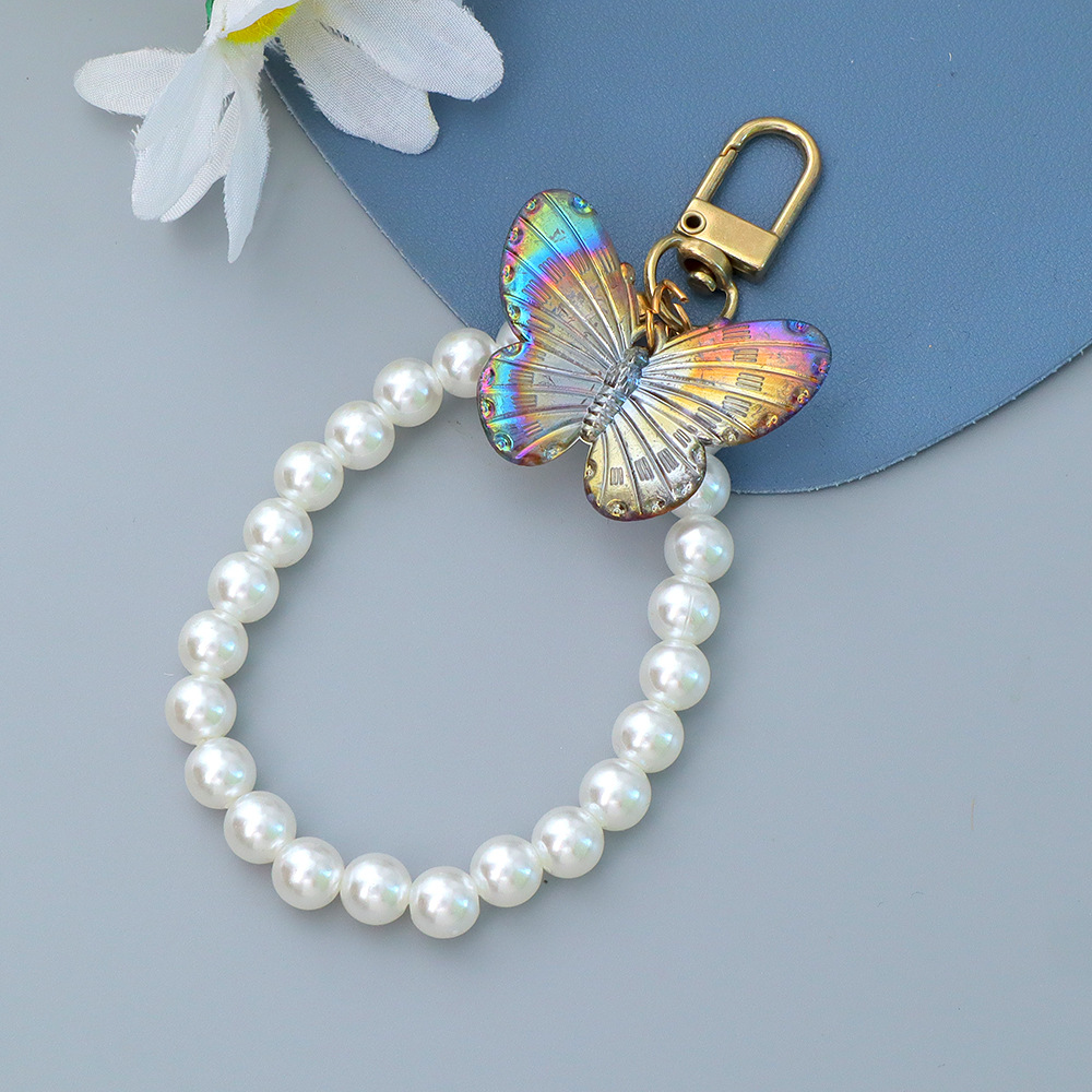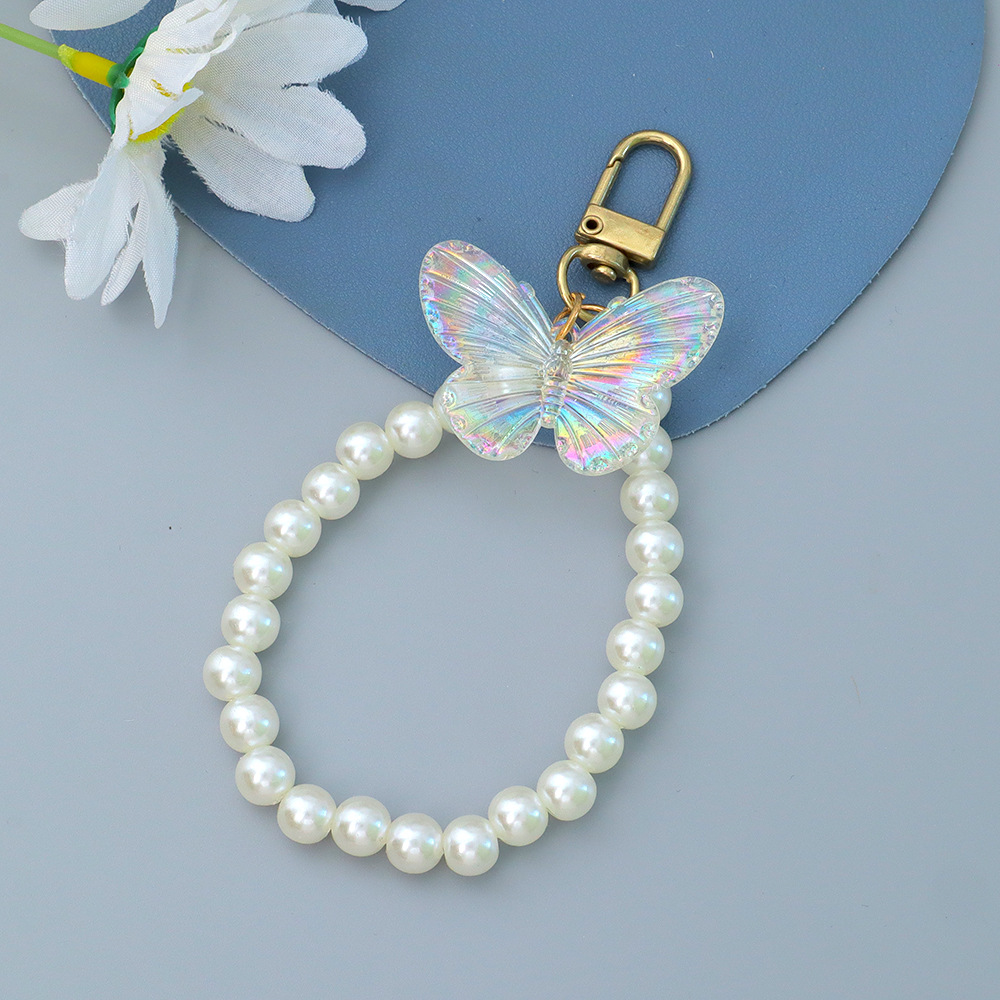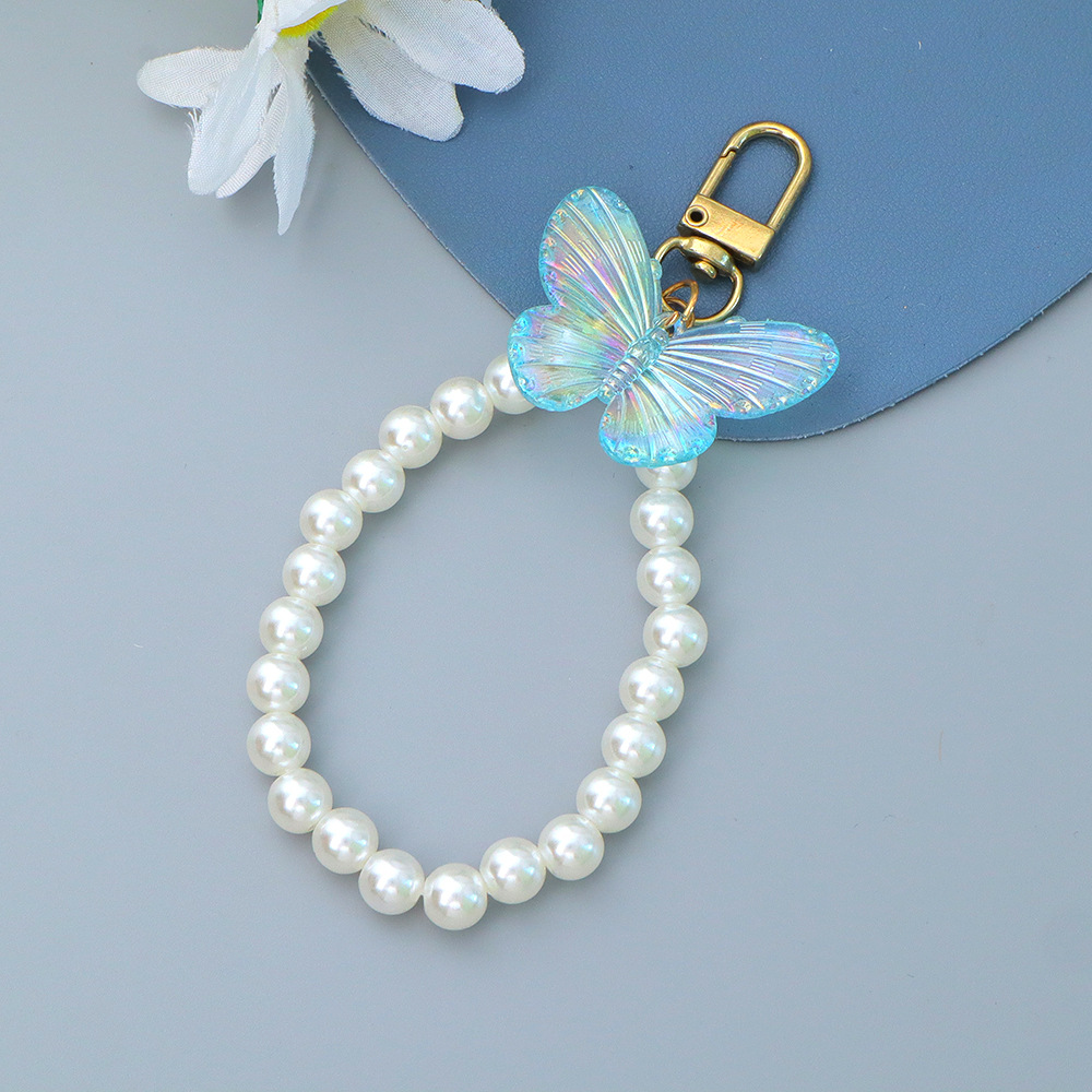 炫彩亚克力蝴蝶钥匙扣女生防丢失手机珍珠链包包耳机壳装饰挂件