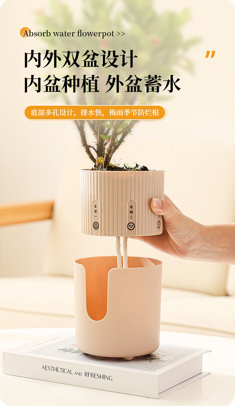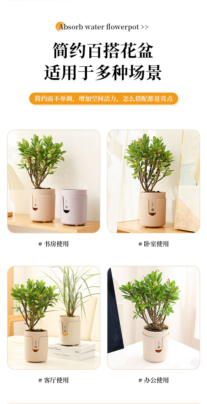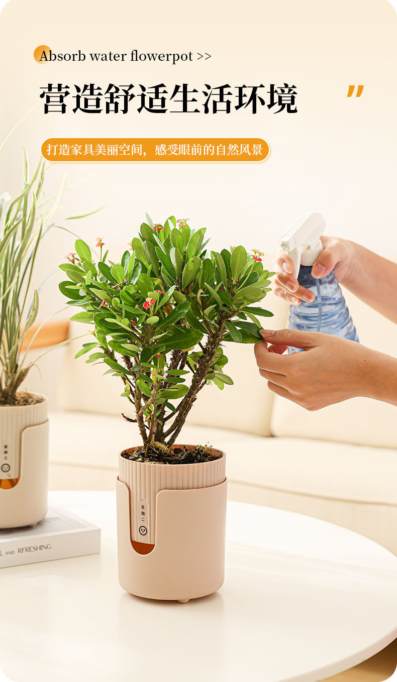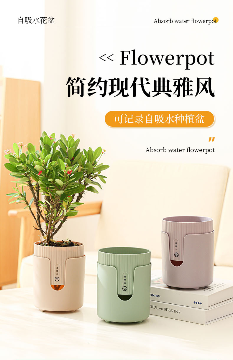 简约塑料花盆家用桌面式自动吸水透气绿植花盆盆栽加厚耐用四季盆