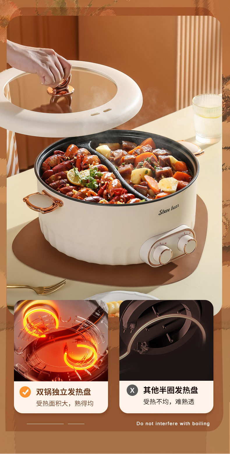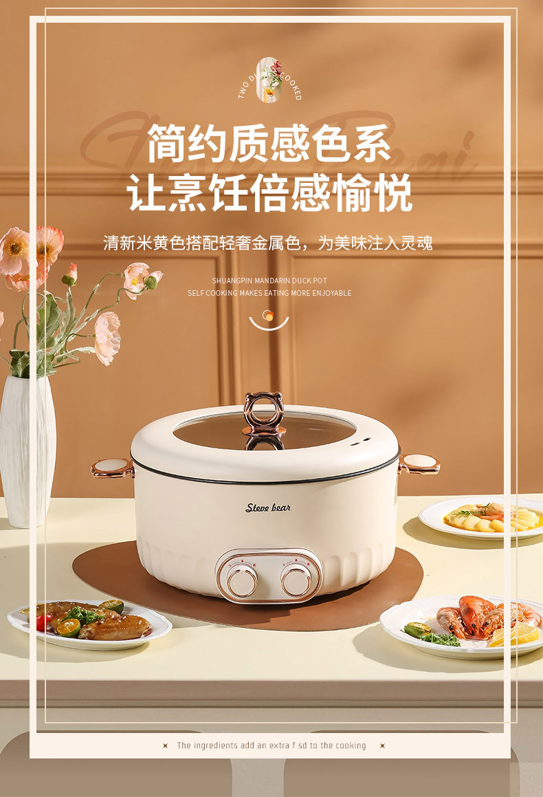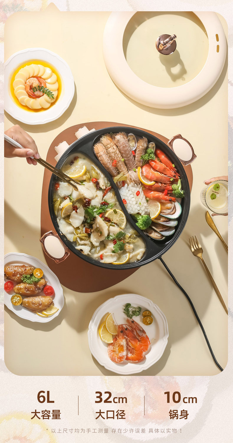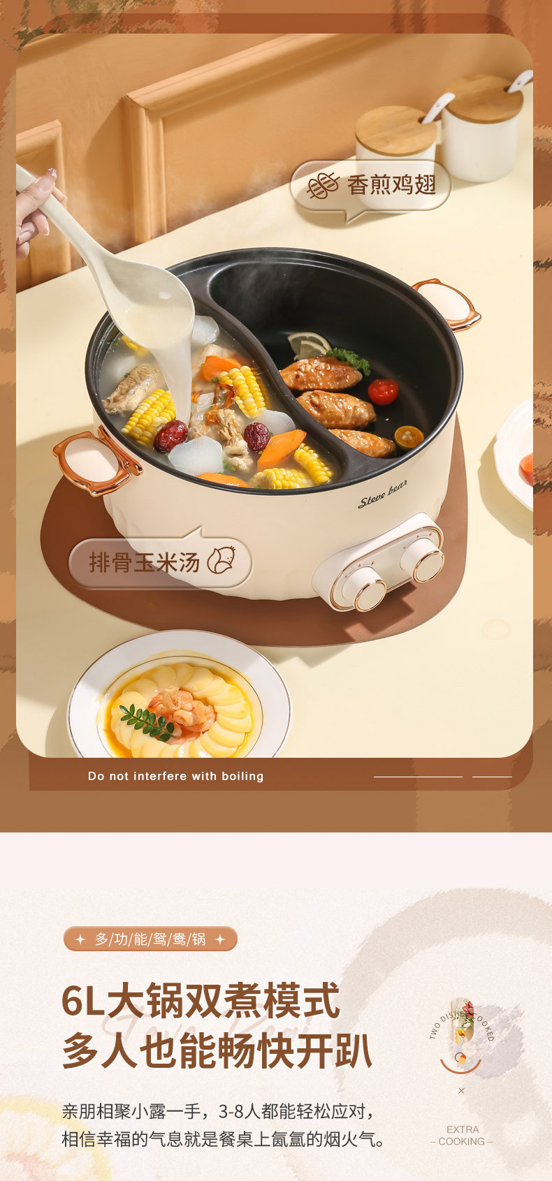 6L鸳鸯电火锅微压锅电煮锅多功能一体大容量双层电蒸锅110v/220v