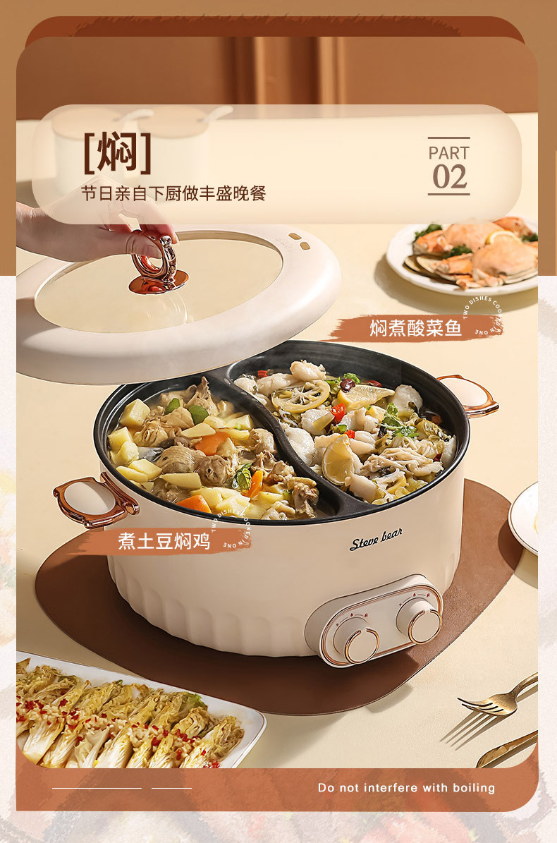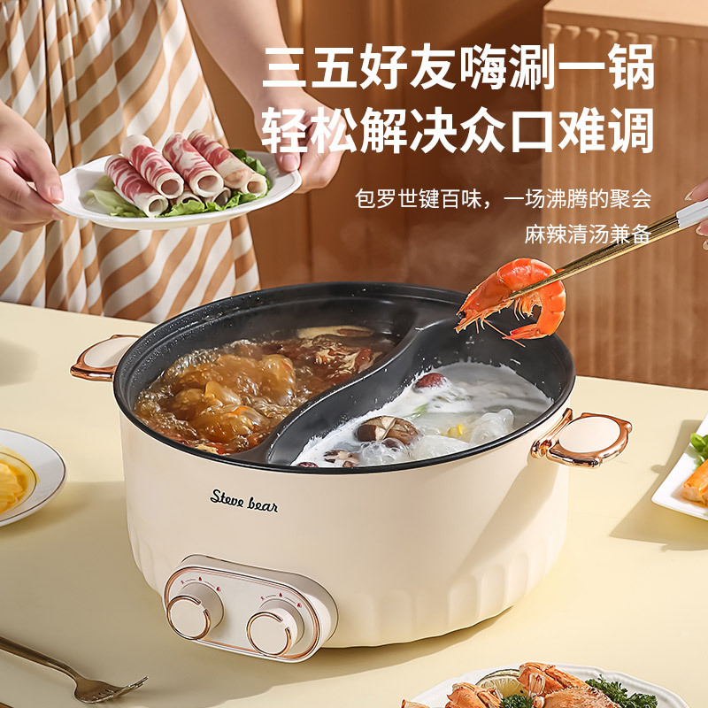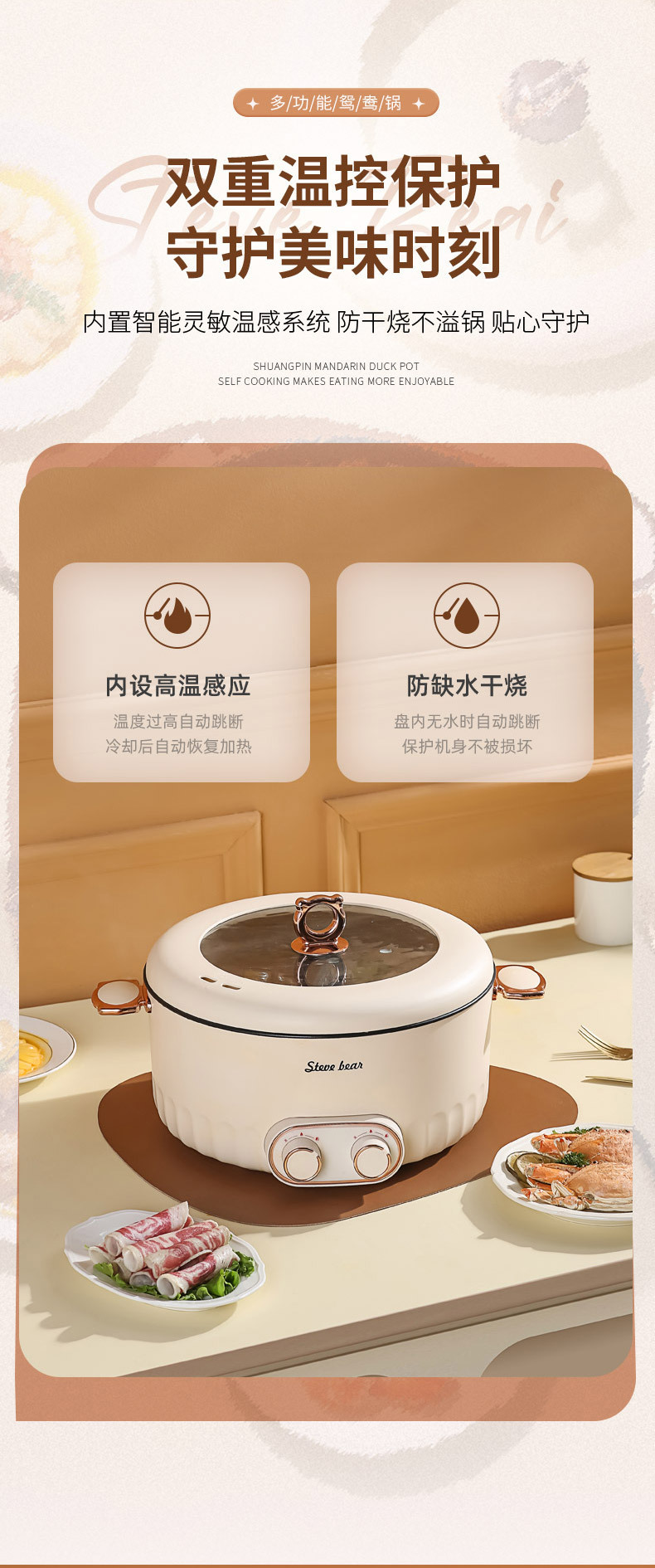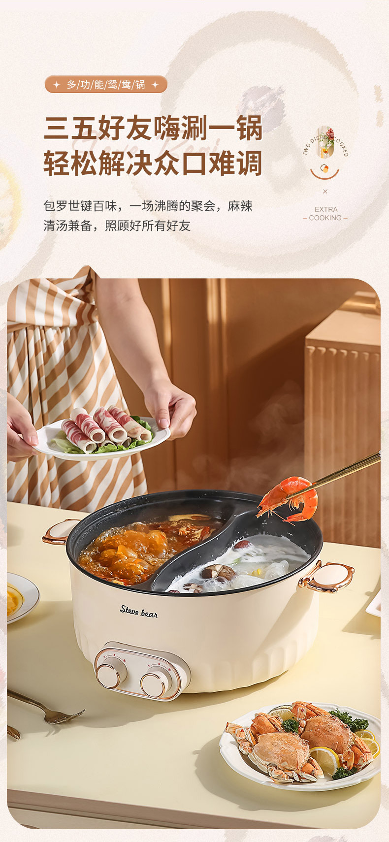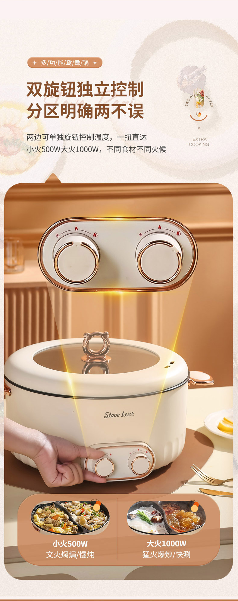 6L鸳鸯电火锅微压锅电煮锅多功能一体大容量双层电蒸锅110v/220v