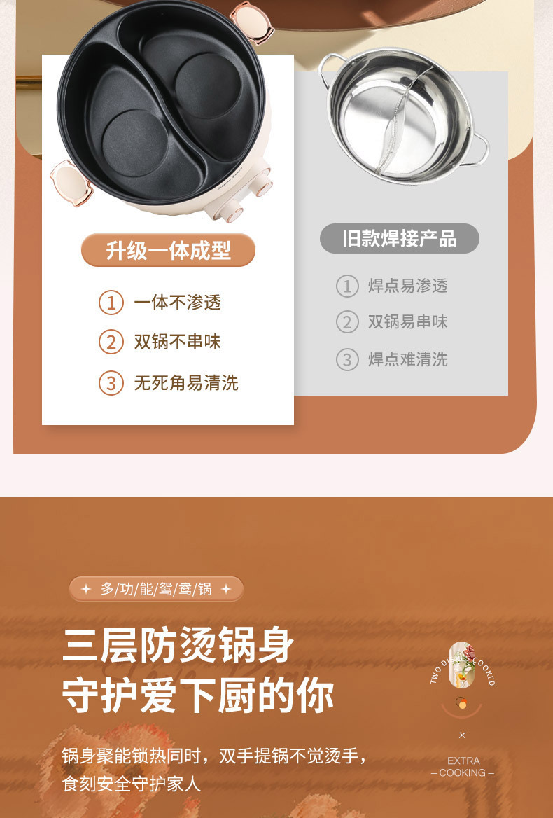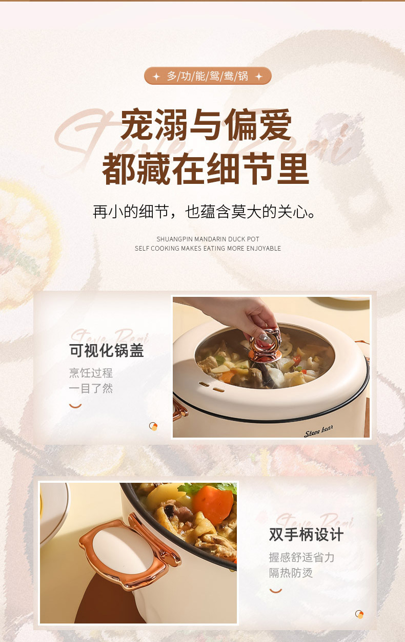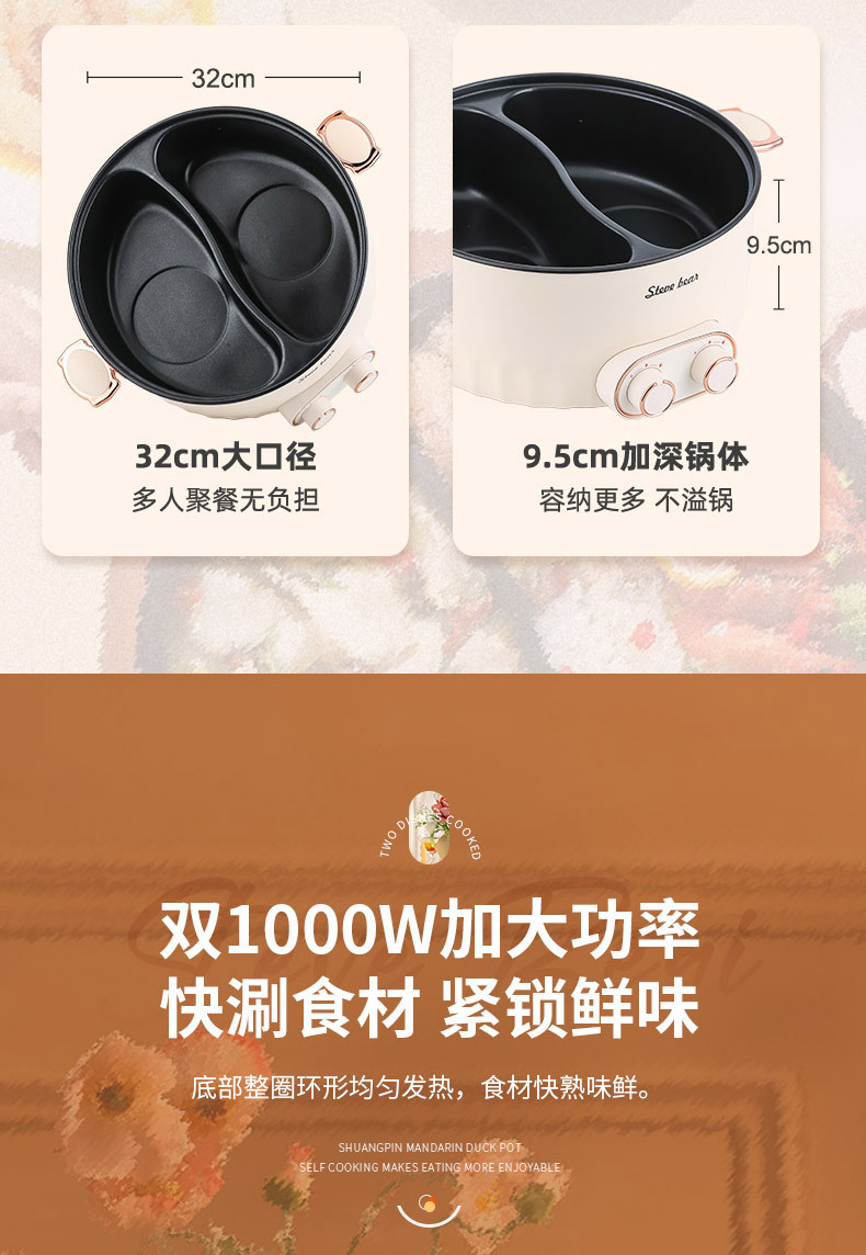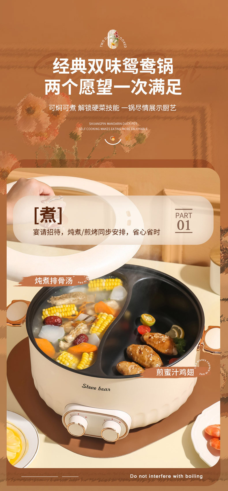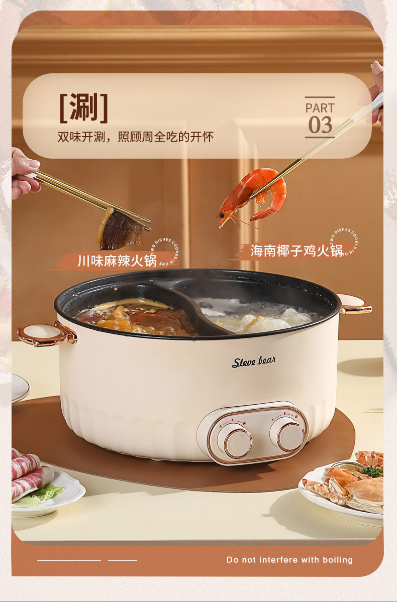 6L鸳鸯电火锅微压锅电煮锅多功能一体大容量双层电蒸锅110v/220v