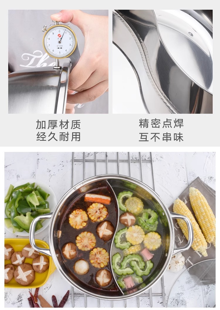 鸳鸯锅加厚304不锈钢火锅盆电磁炉专用大容量涮锅家用火锅锅批发