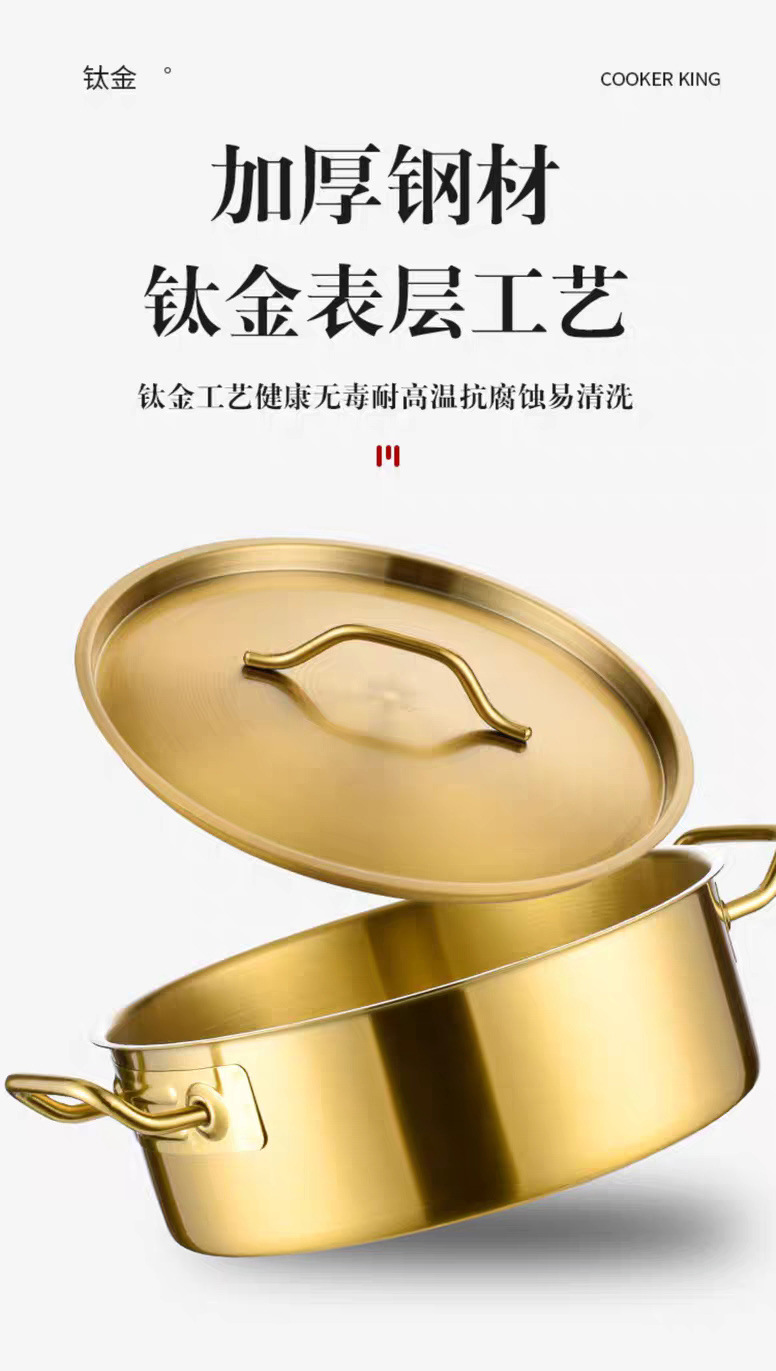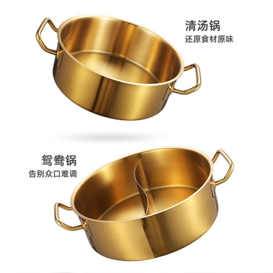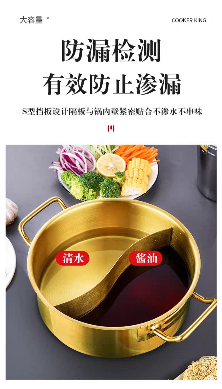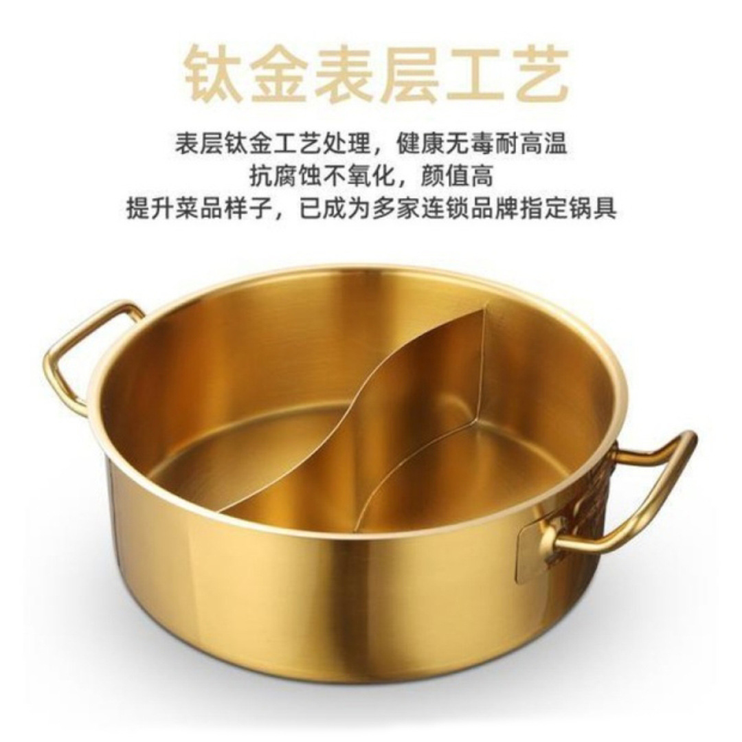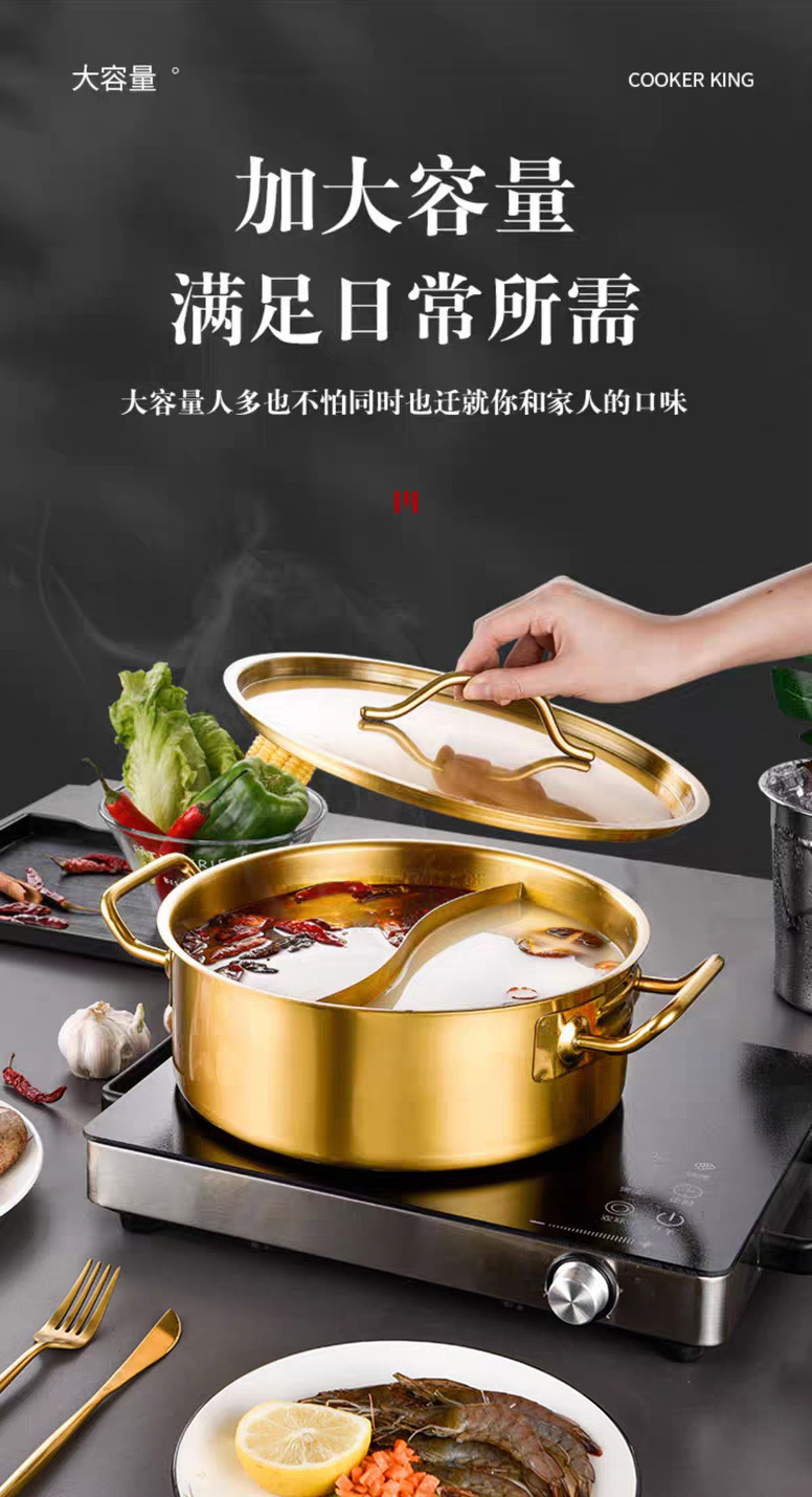 金星单底火锅加厚不锈钢电磁炉通用大容量金色网红鸳鸯锅家用汤锅