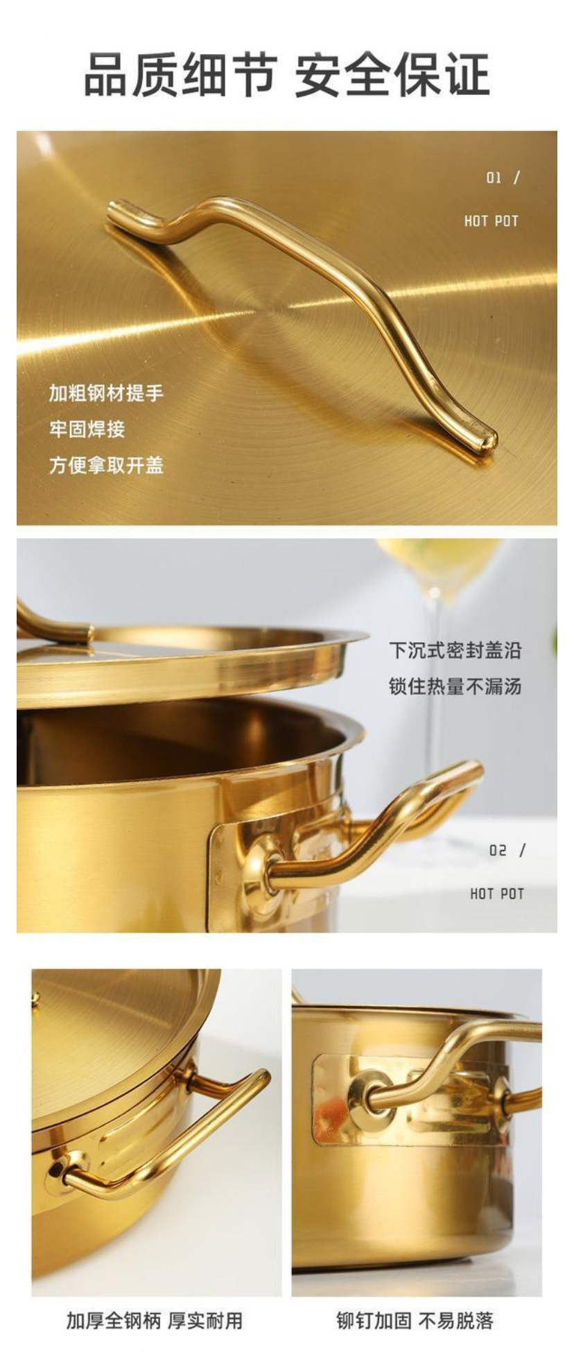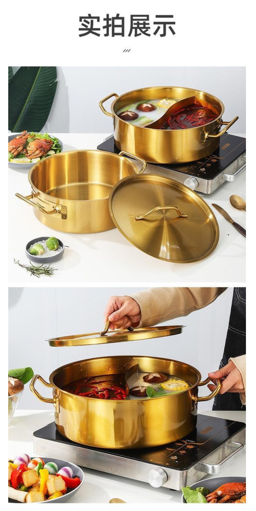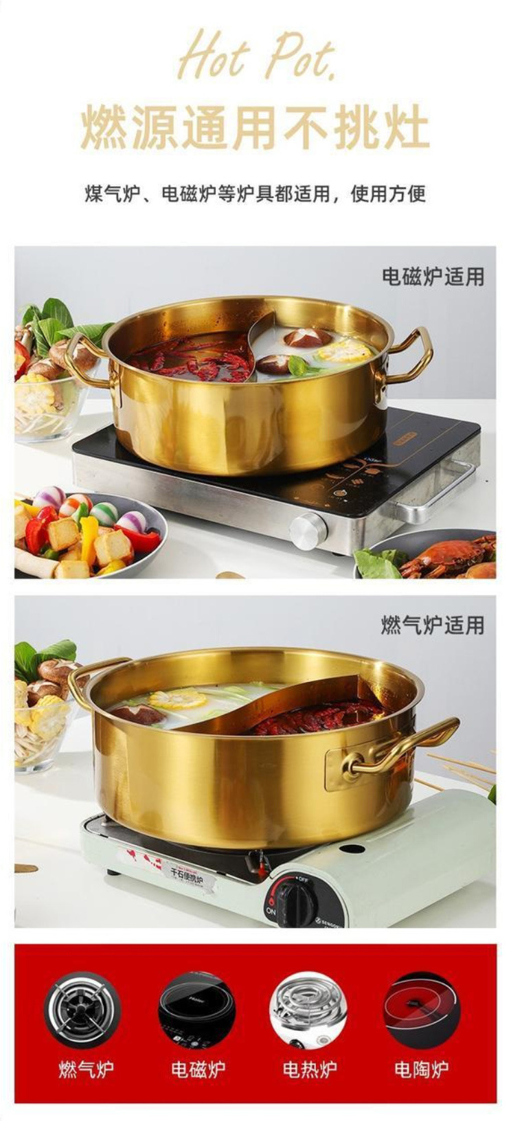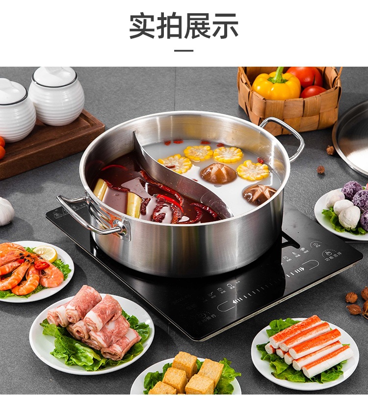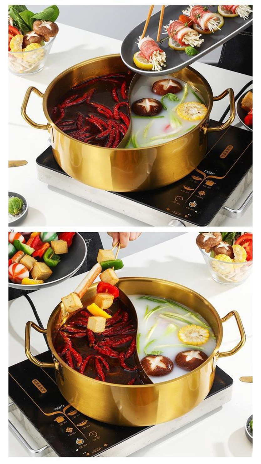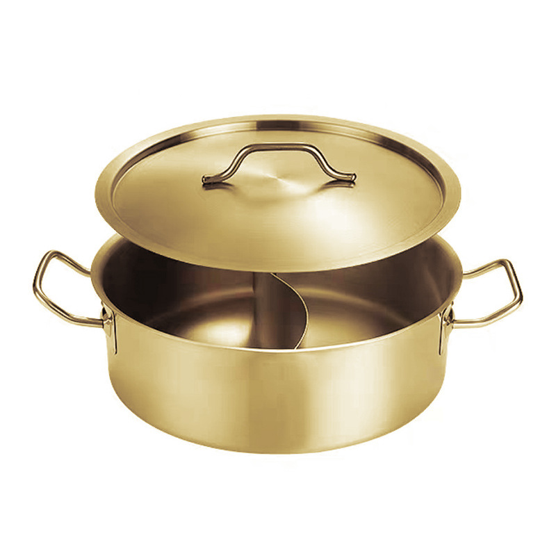 金星单底火锅加厚不锈钢电磁炉通用大容量金色网红鸳鸯锅家用汤锅