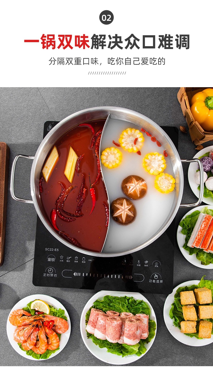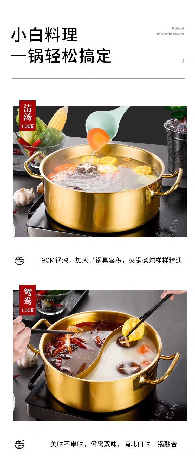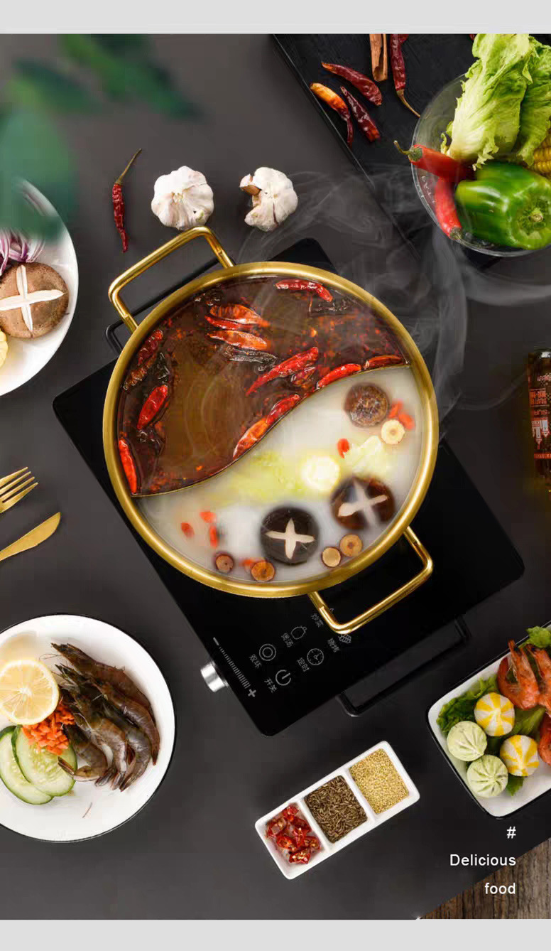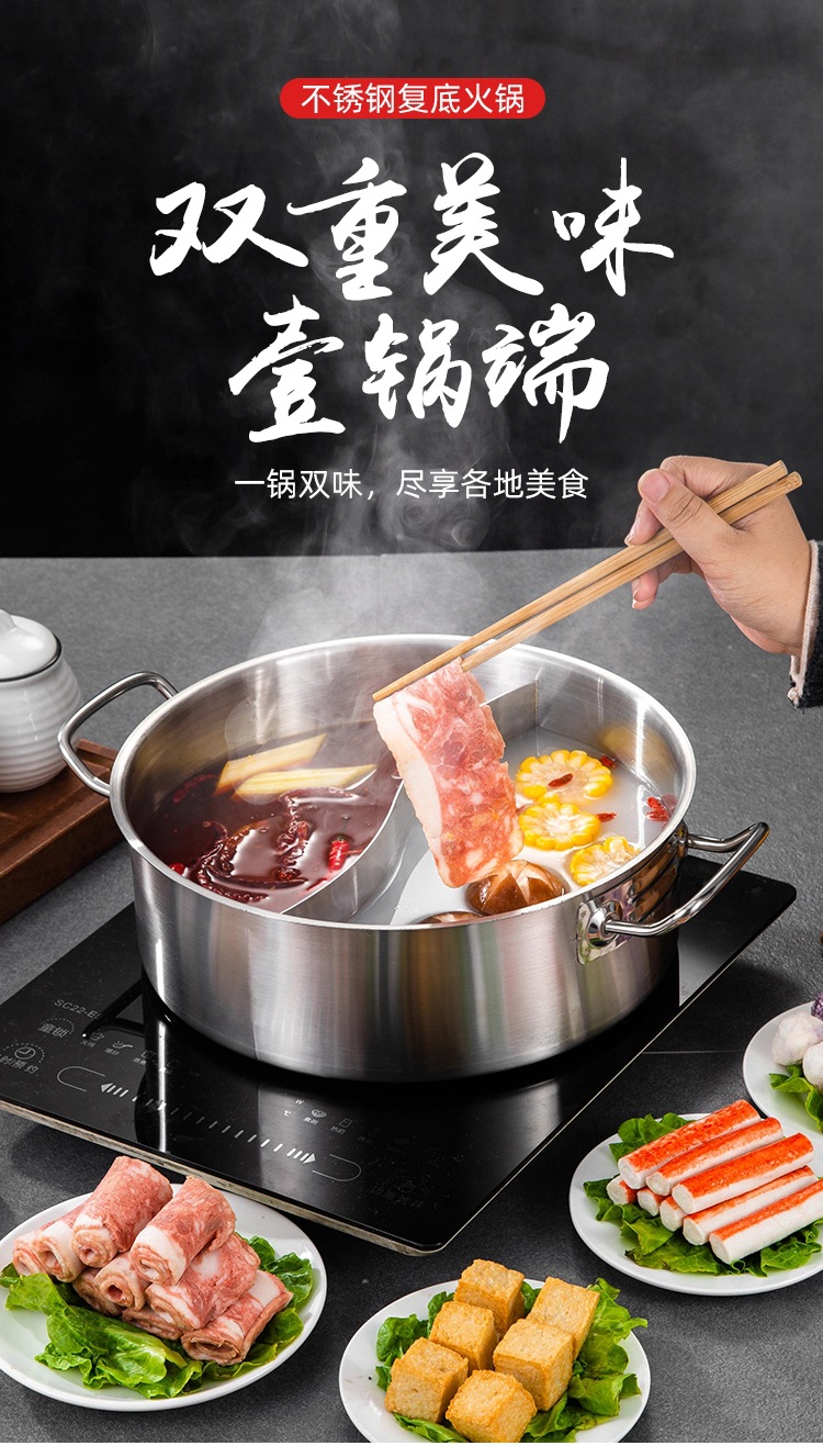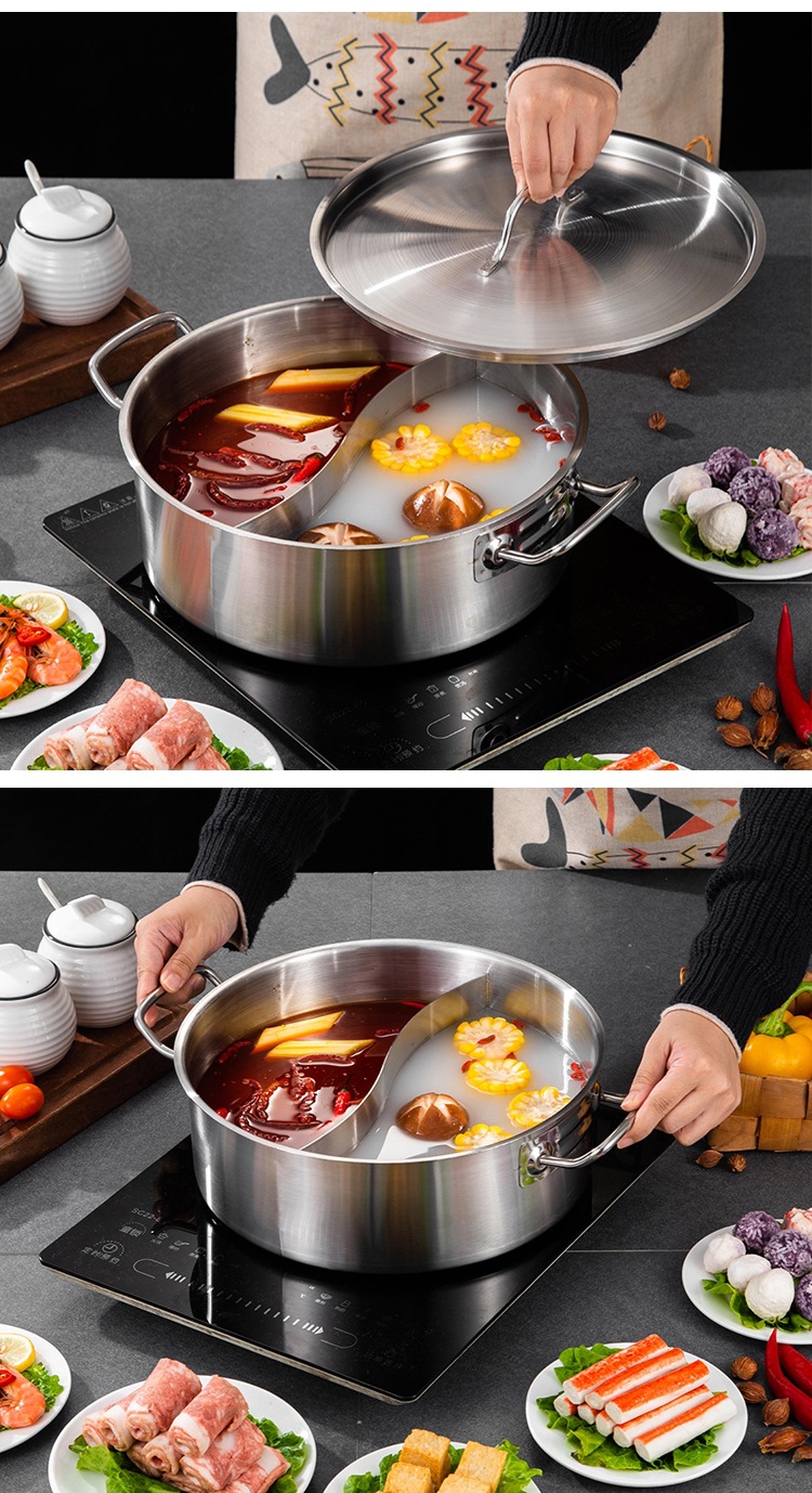 金星单底火锅加厚不锈钢电磁炉通用大容量金色网红鸳鸯锅家用汤锅