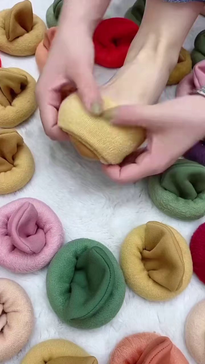 秋冬季竖条纹山羊绒中筒雪地袜男女士加绒加厚保暖地板袜厂家批发