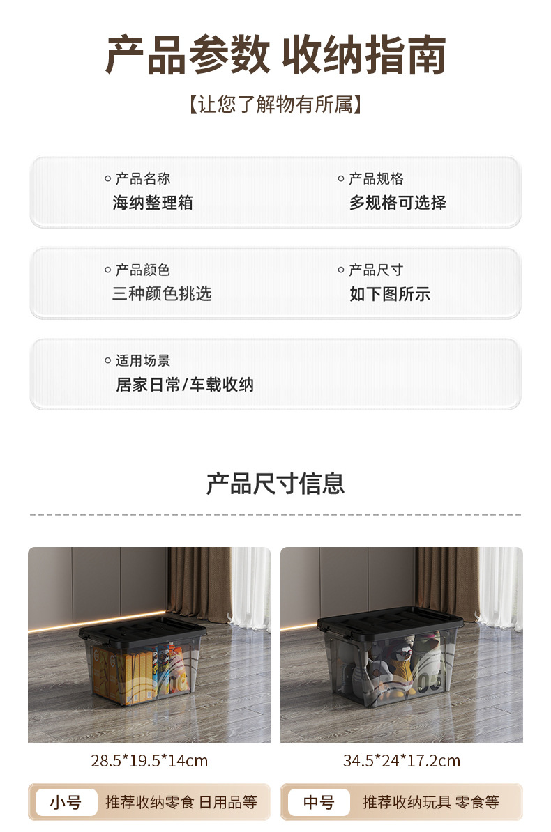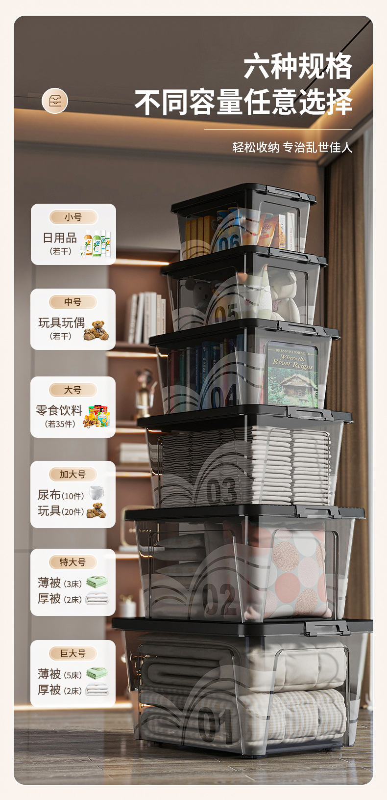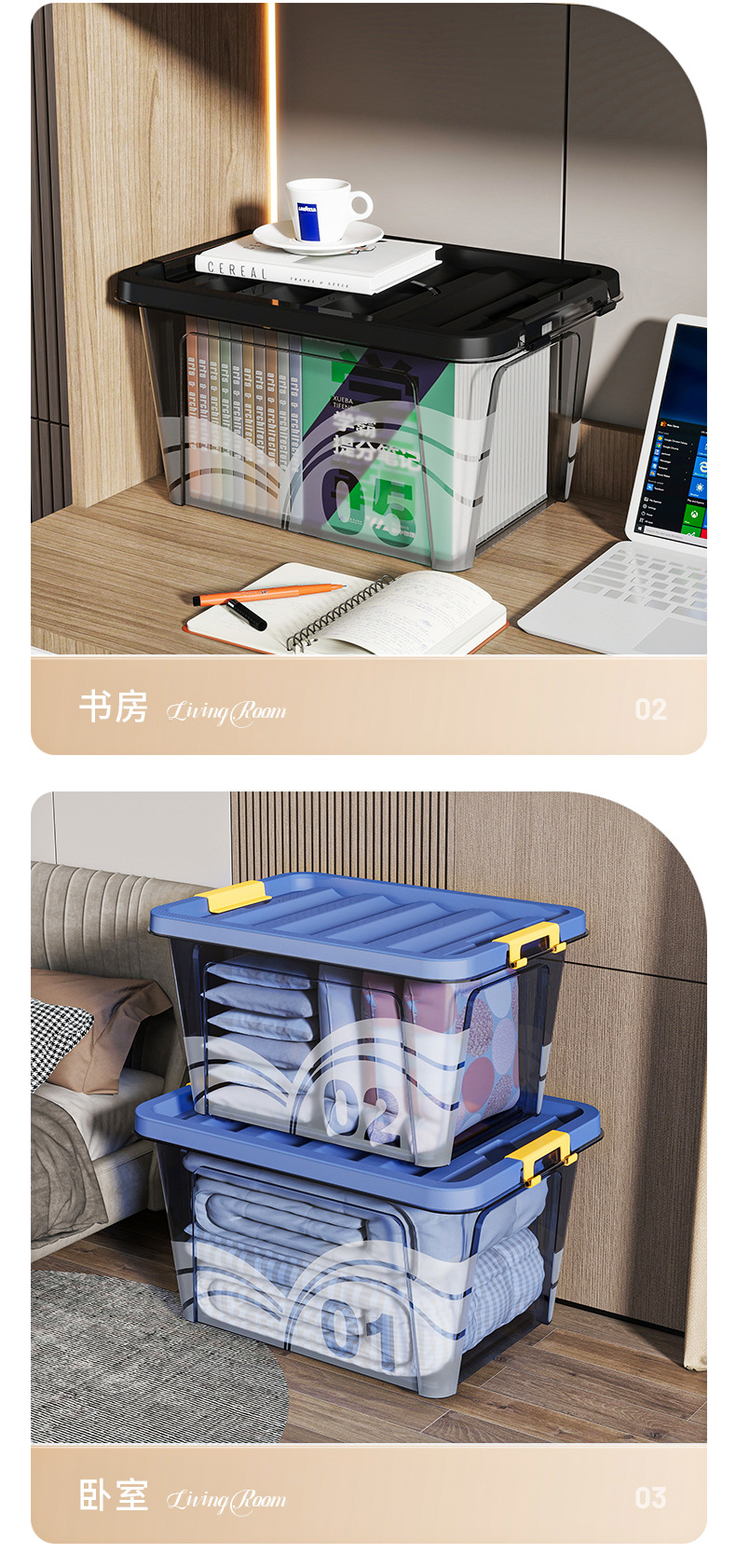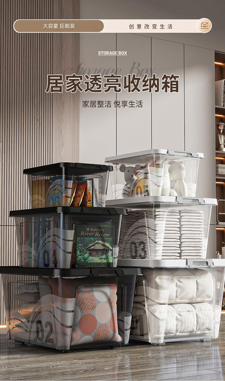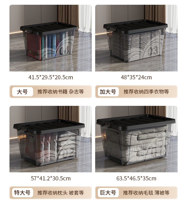 收纳箱家用储物箱透明杂物玩具收纳盒大号衣服整理箱零食塑料箱子