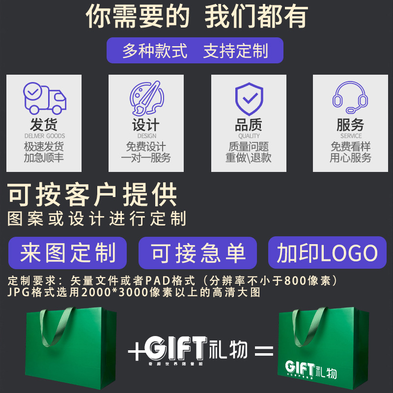 灰色高级感ins风服装店奢侈品购物纸袋 生日节日婚礼白卡纸手提袋