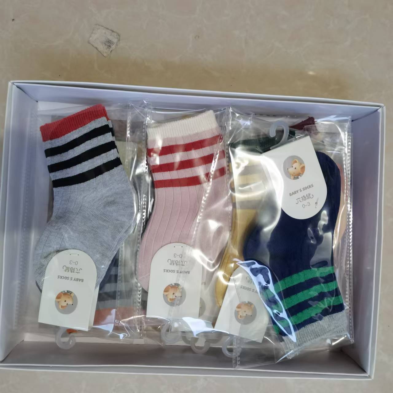 六指鼠春秋冬新款儿童精梳棉袜时尚条纹男童袜女宝宝保暖双针棉袜