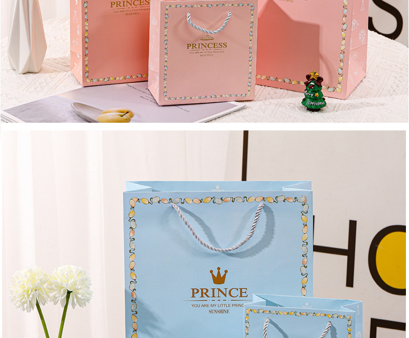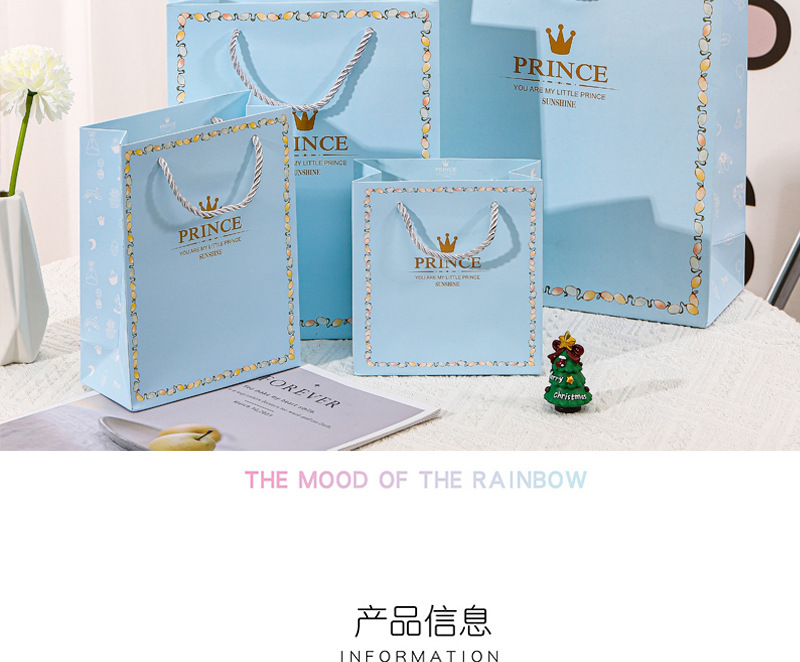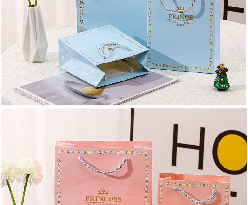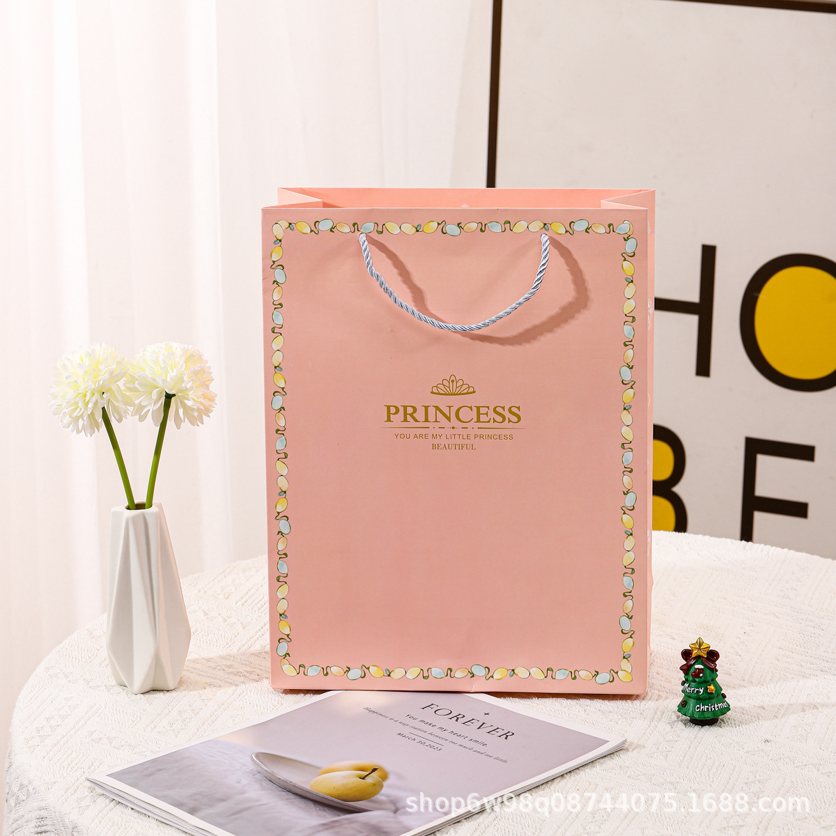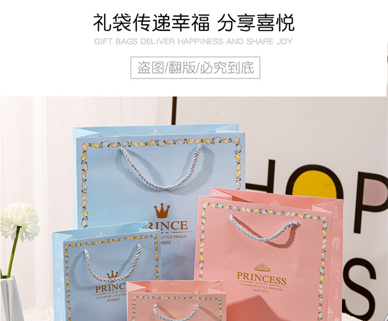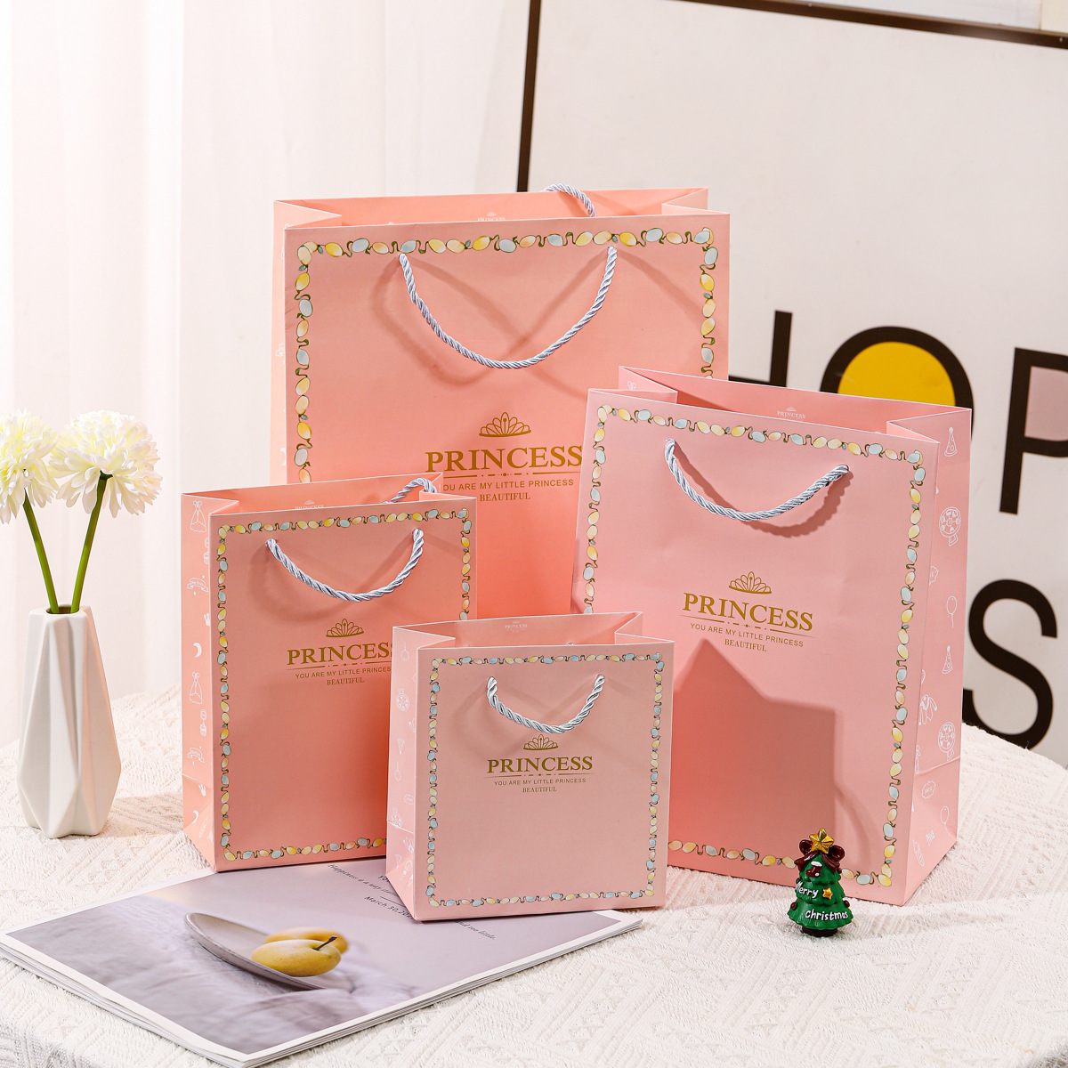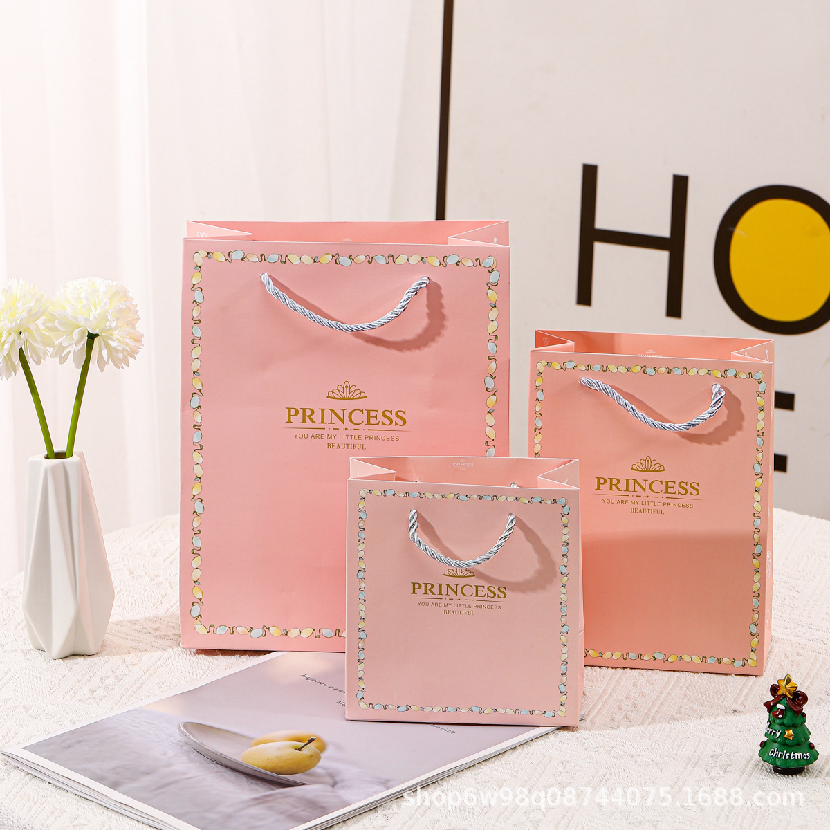 厂家直销现货手提纸袋小号粉色 皇冠礼物袋ins生日礼盒包装纸袋子