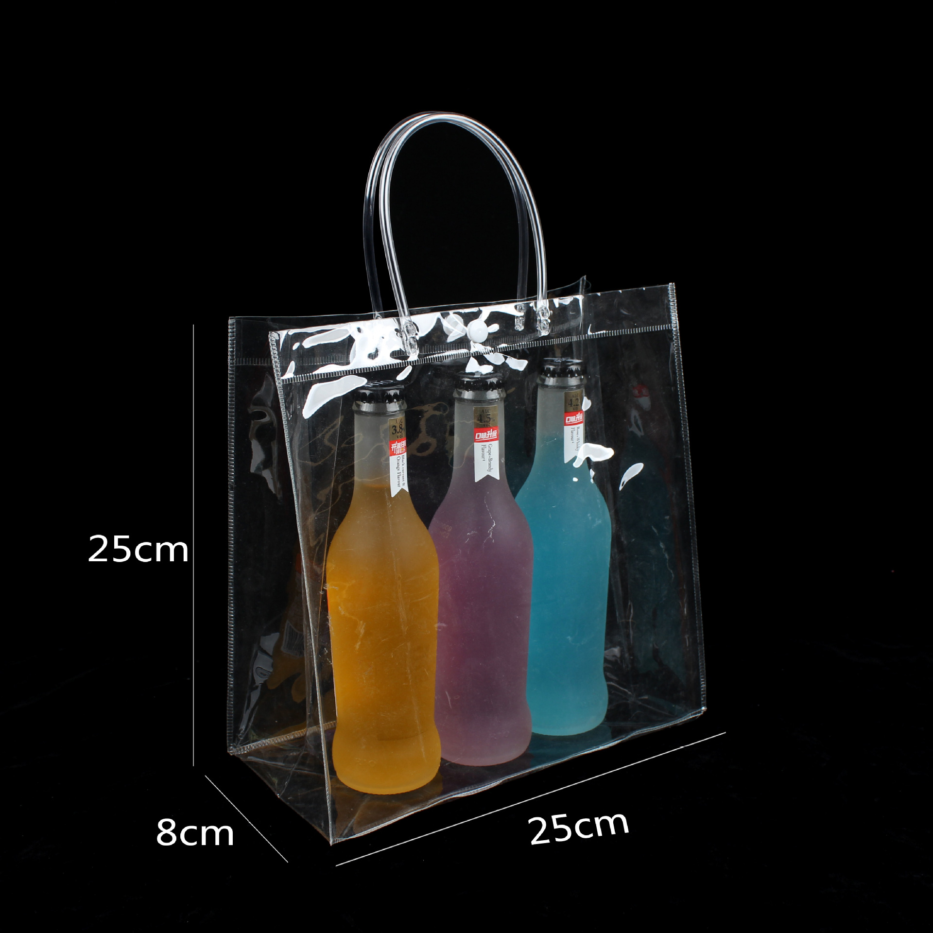 跨境现货pvc手提袋按扣塑料透明红酒袋伴手礼袋子喜糖礼品包装