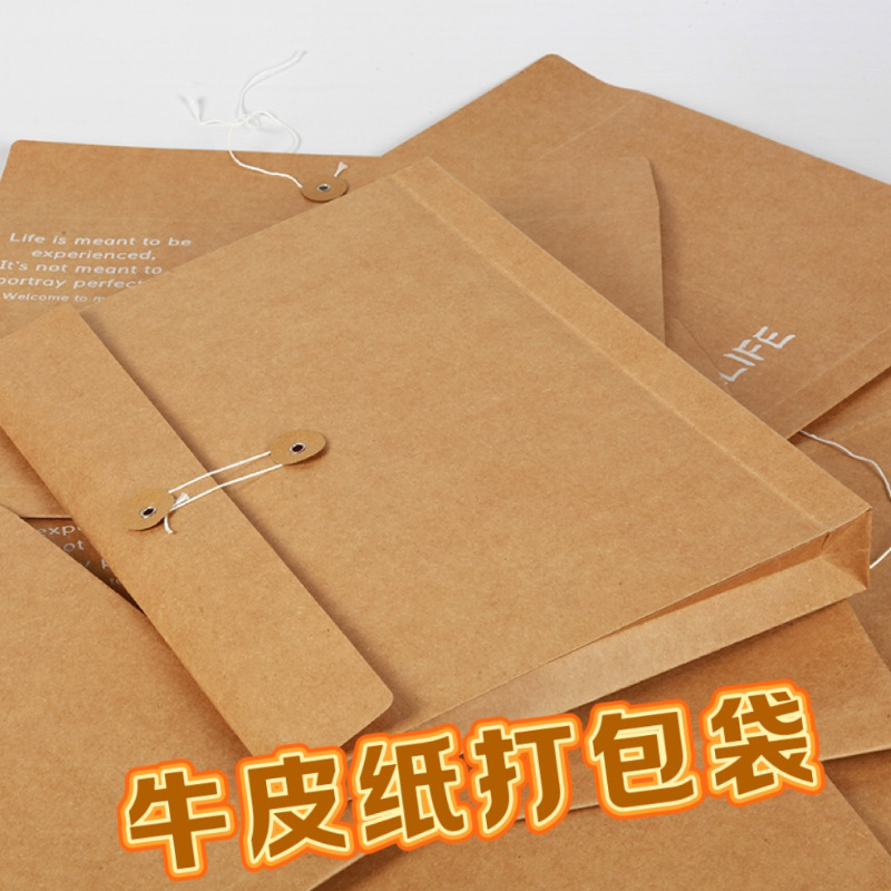 现货牛皮纸袋t恤衬衫包装袋绕绳服装文件袋物流运输快递袋印logo