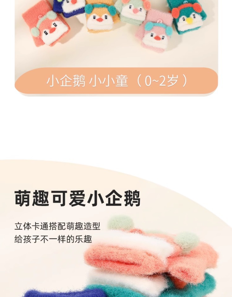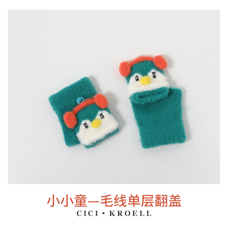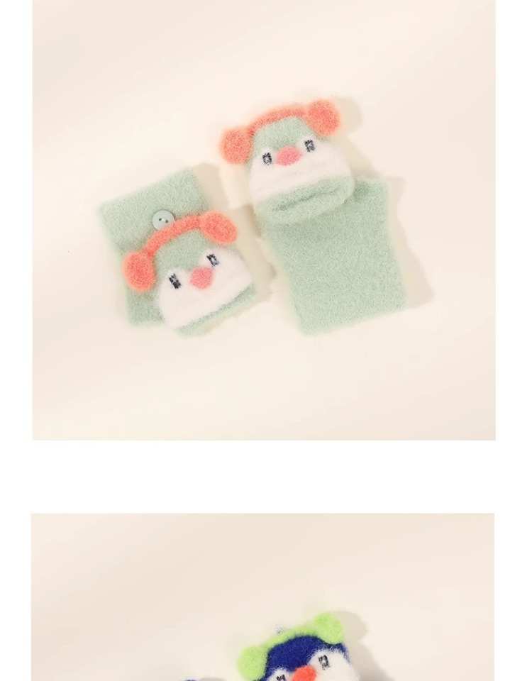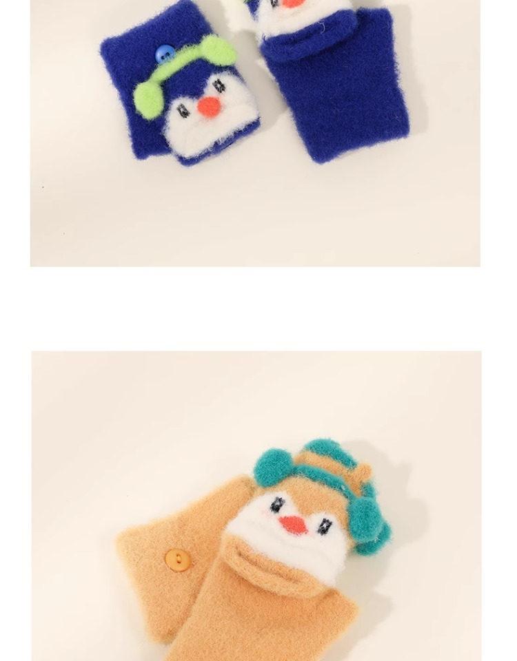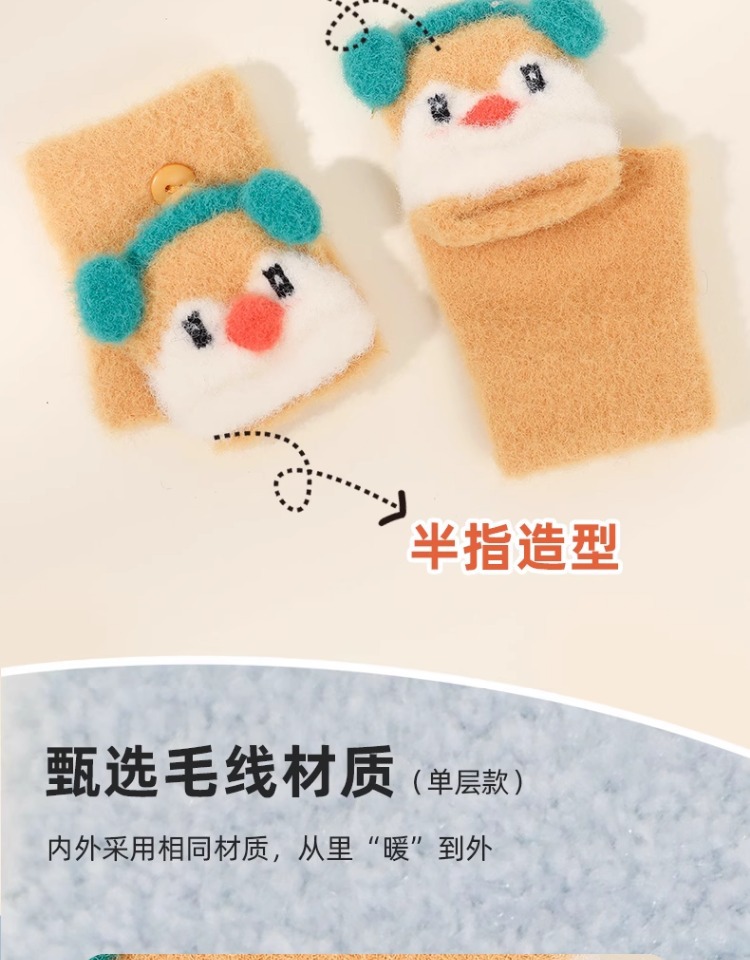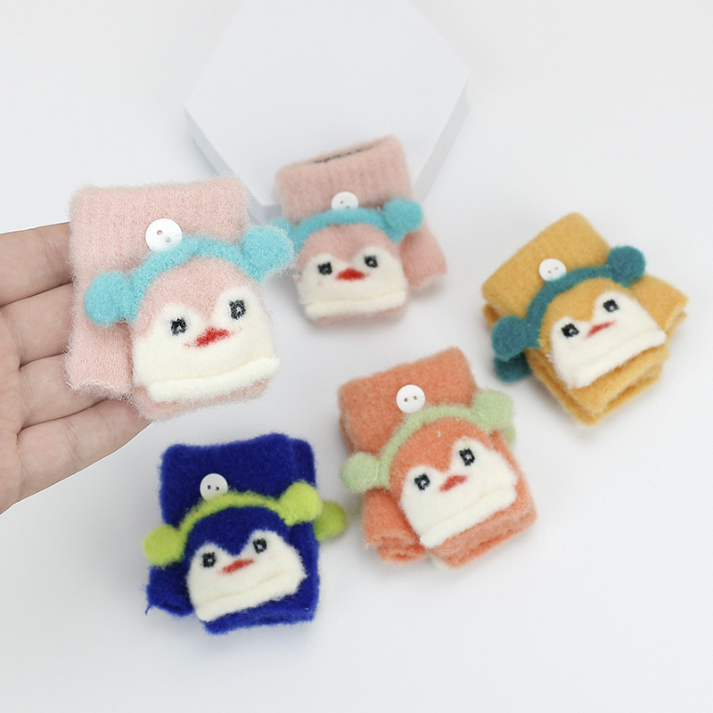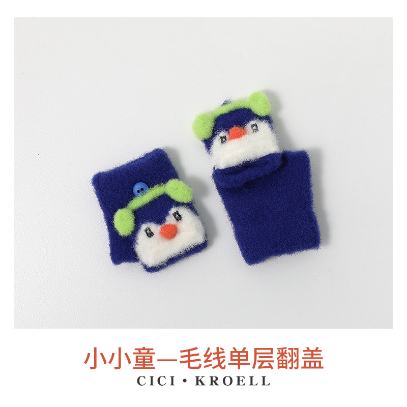 婴幼儿卡通保暖手套秋冬防寒可爱男女宝宝半截露指头音乐企鹅翻盖