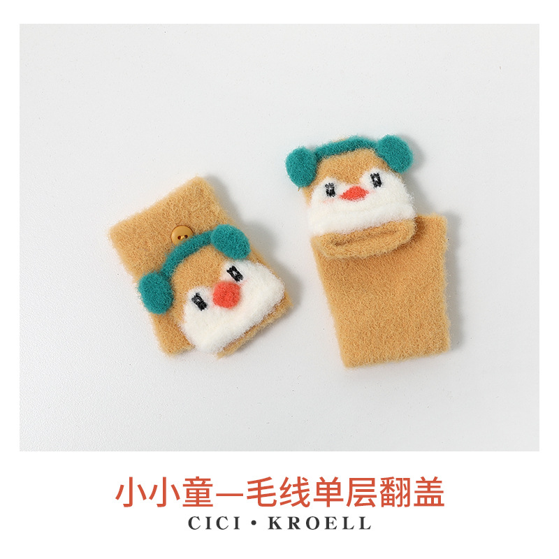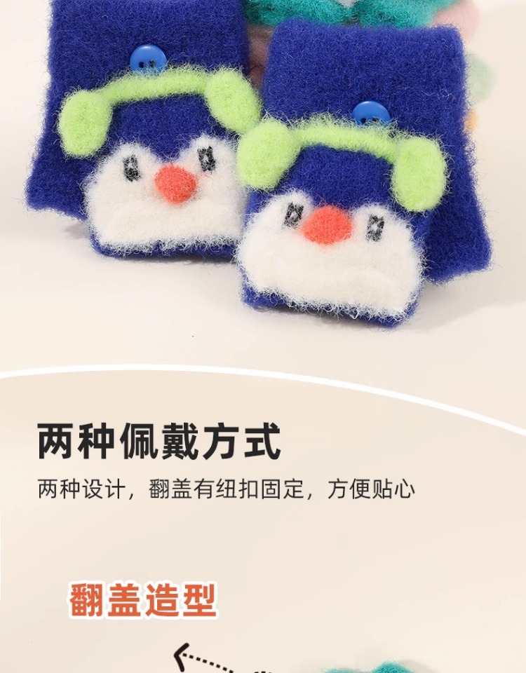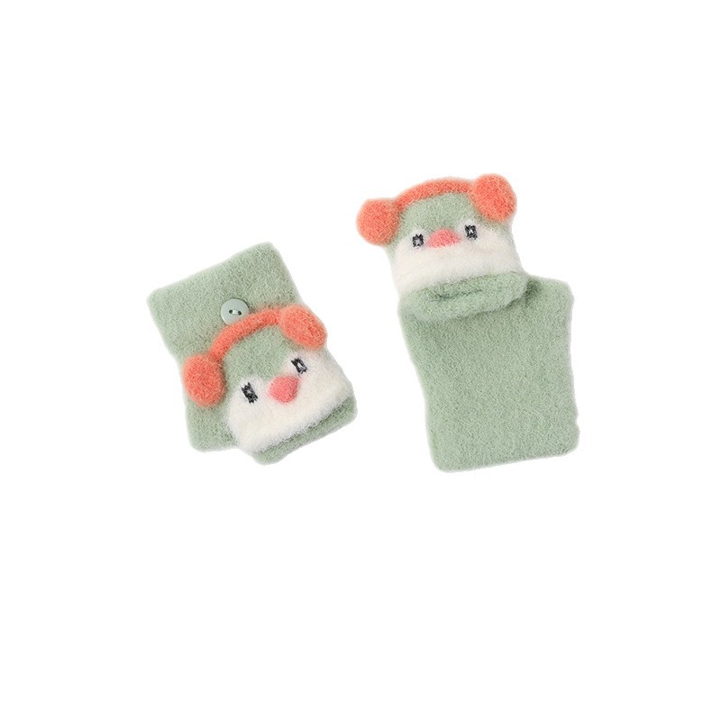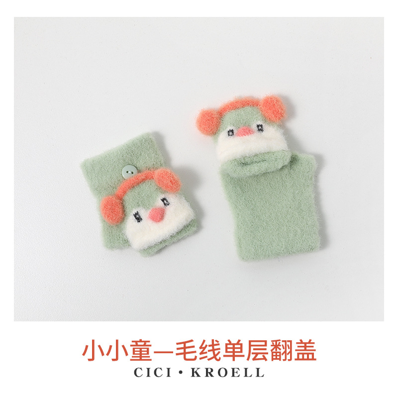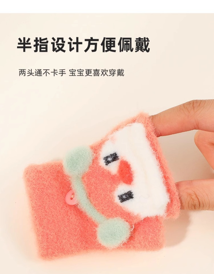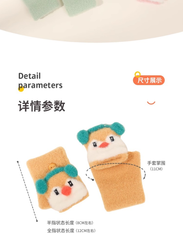 婴幼儿卡通保暖手套秋冬防寒可爱男女宝宝半截露指头音乐企鹅翻盖