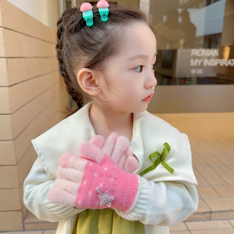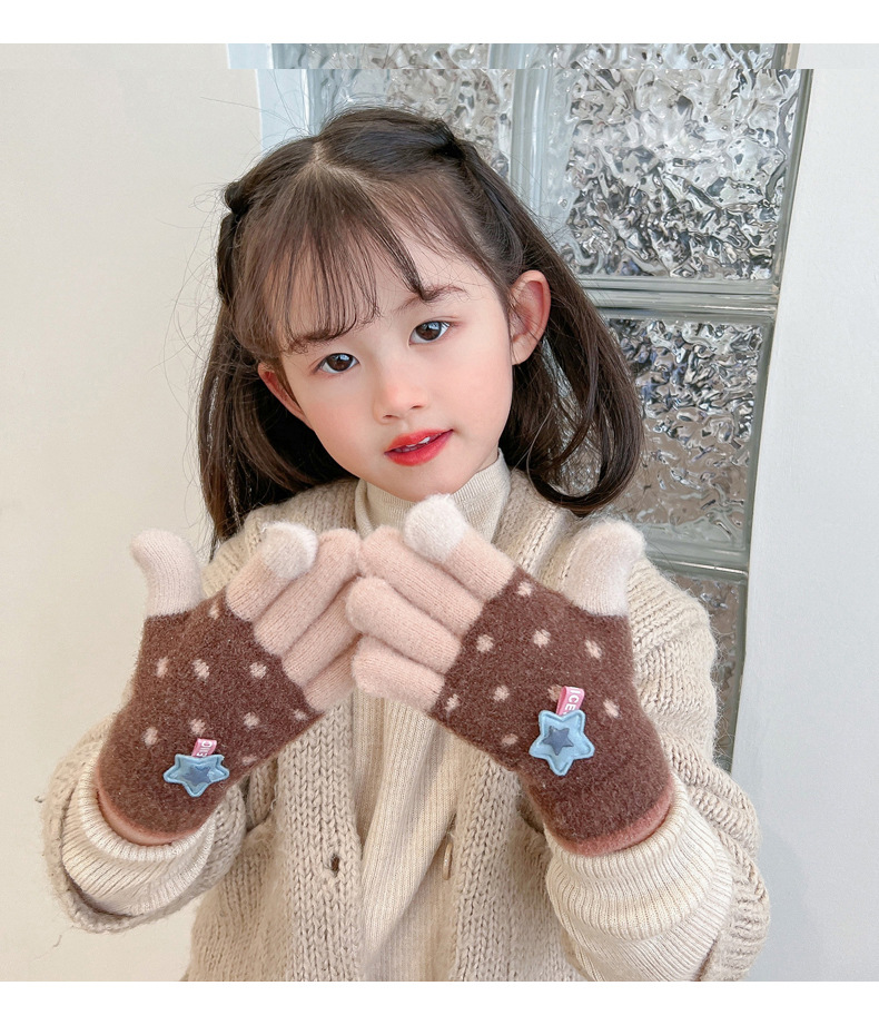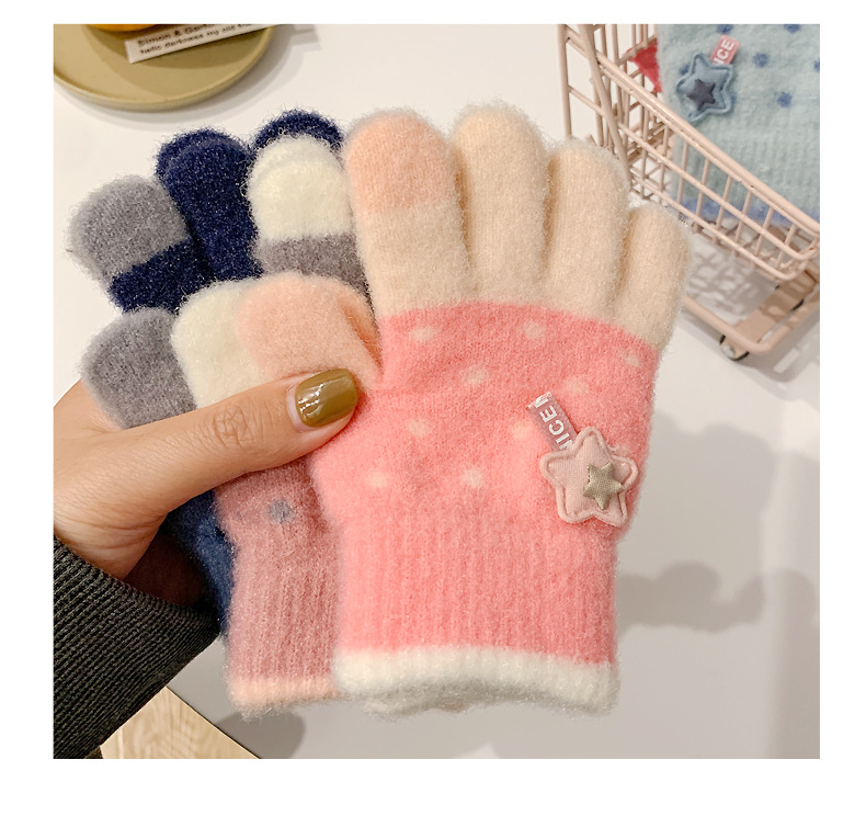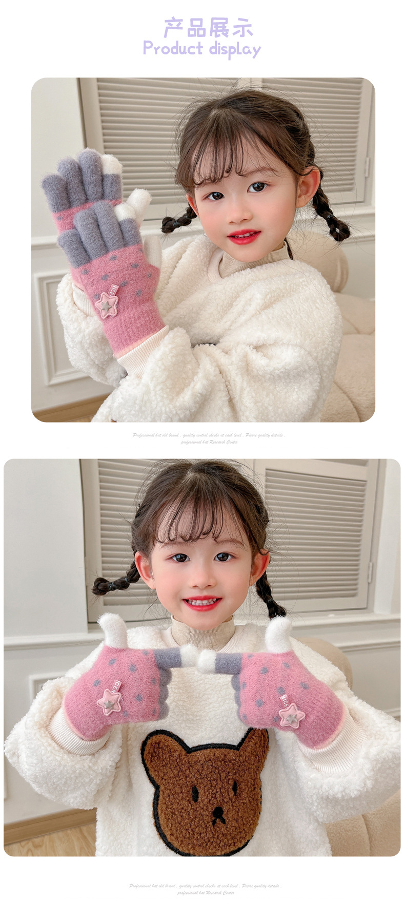 儿童手套卡通可爱星星秋冬季加绒加厚保暖防风五指男女童拼色手套