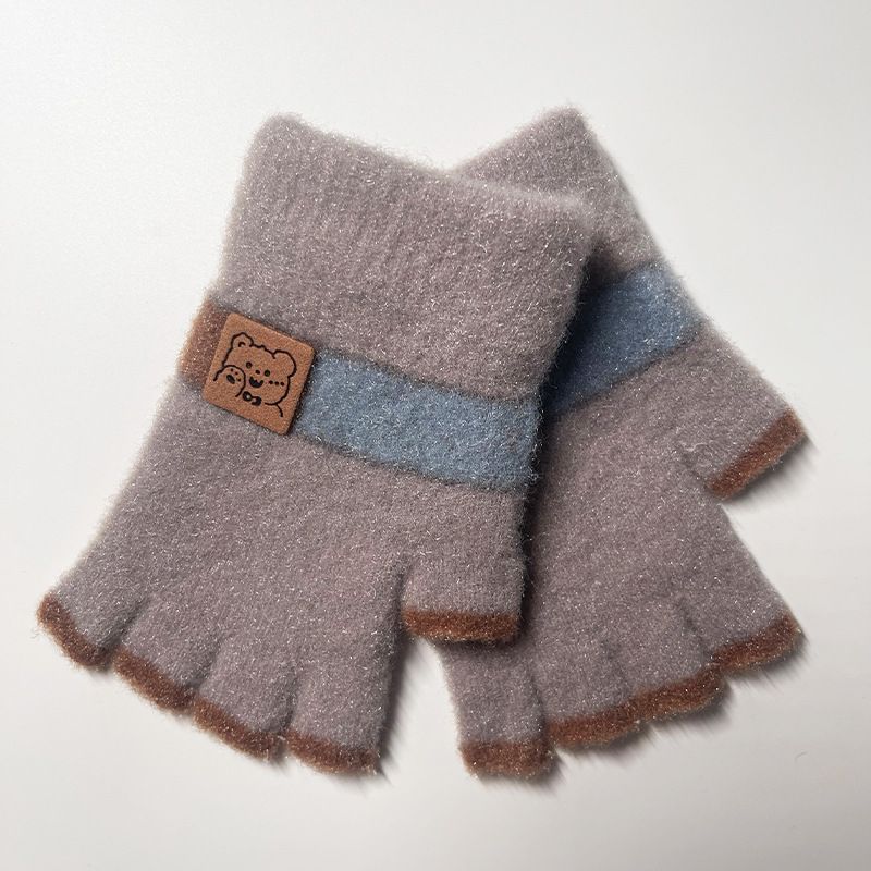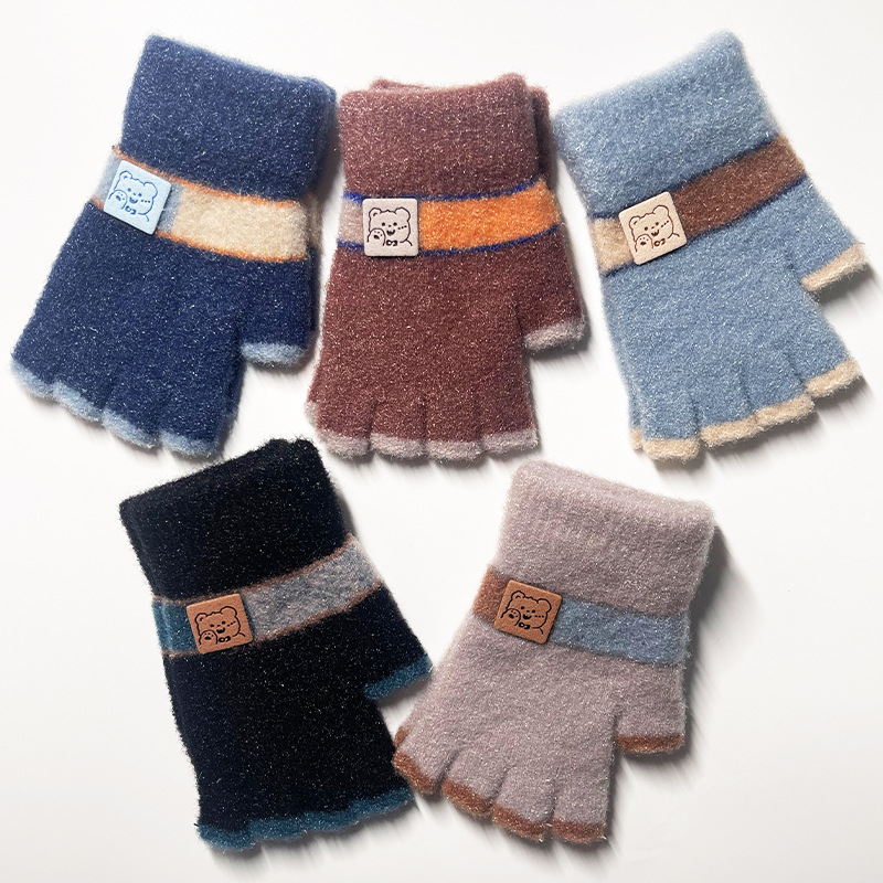 儿童手套秋冬季保暖毛线针织可爱毛绒小学生学习写字新款半指手套