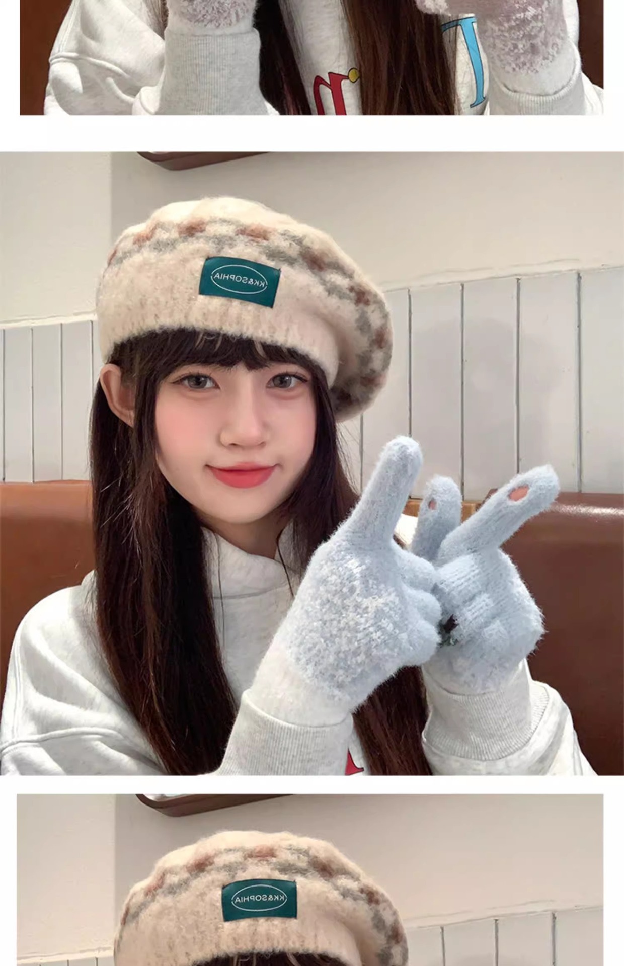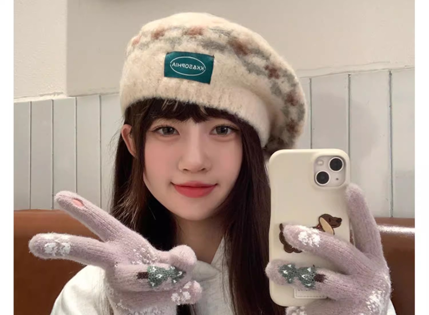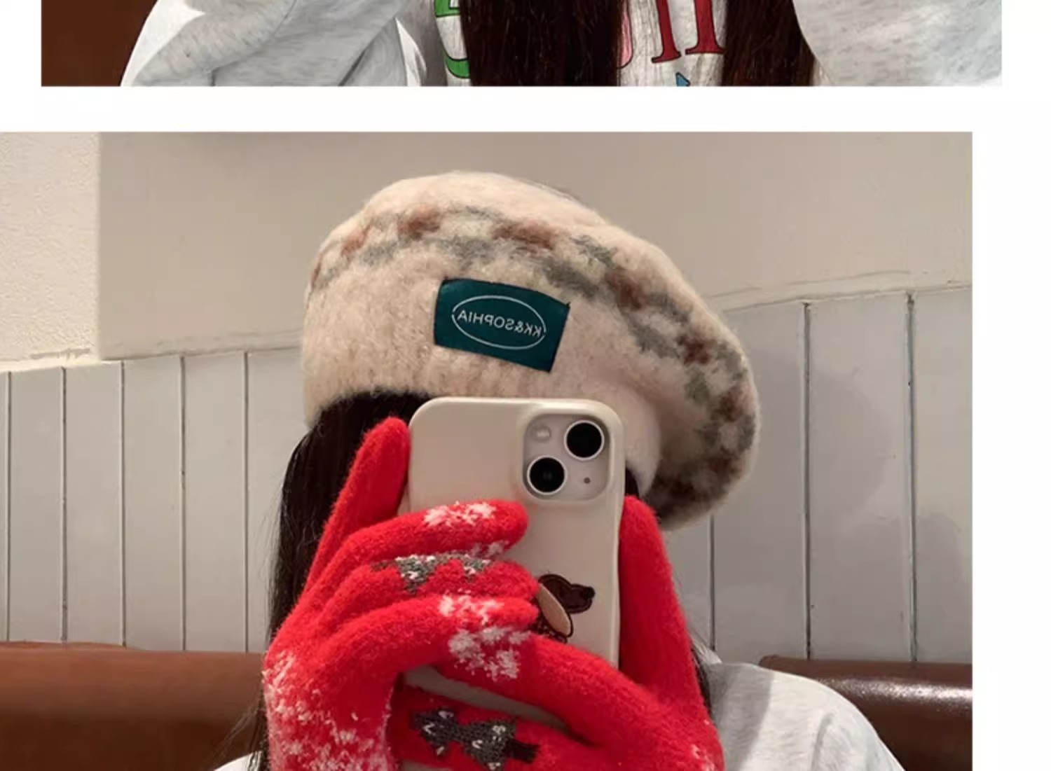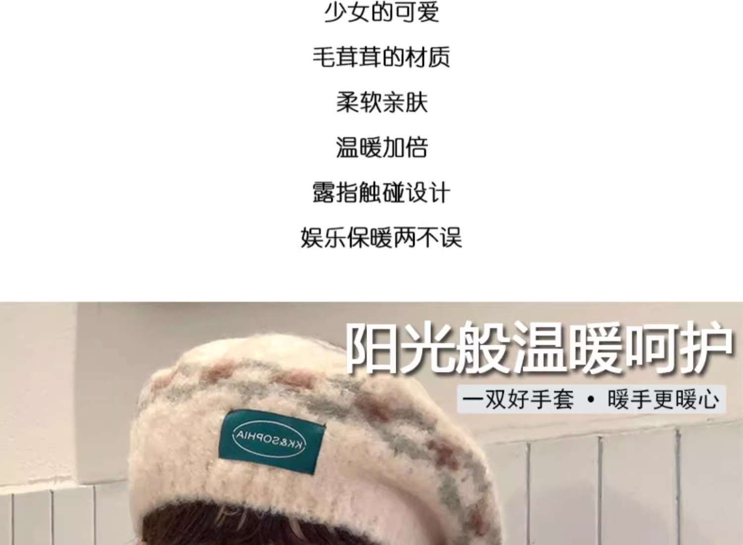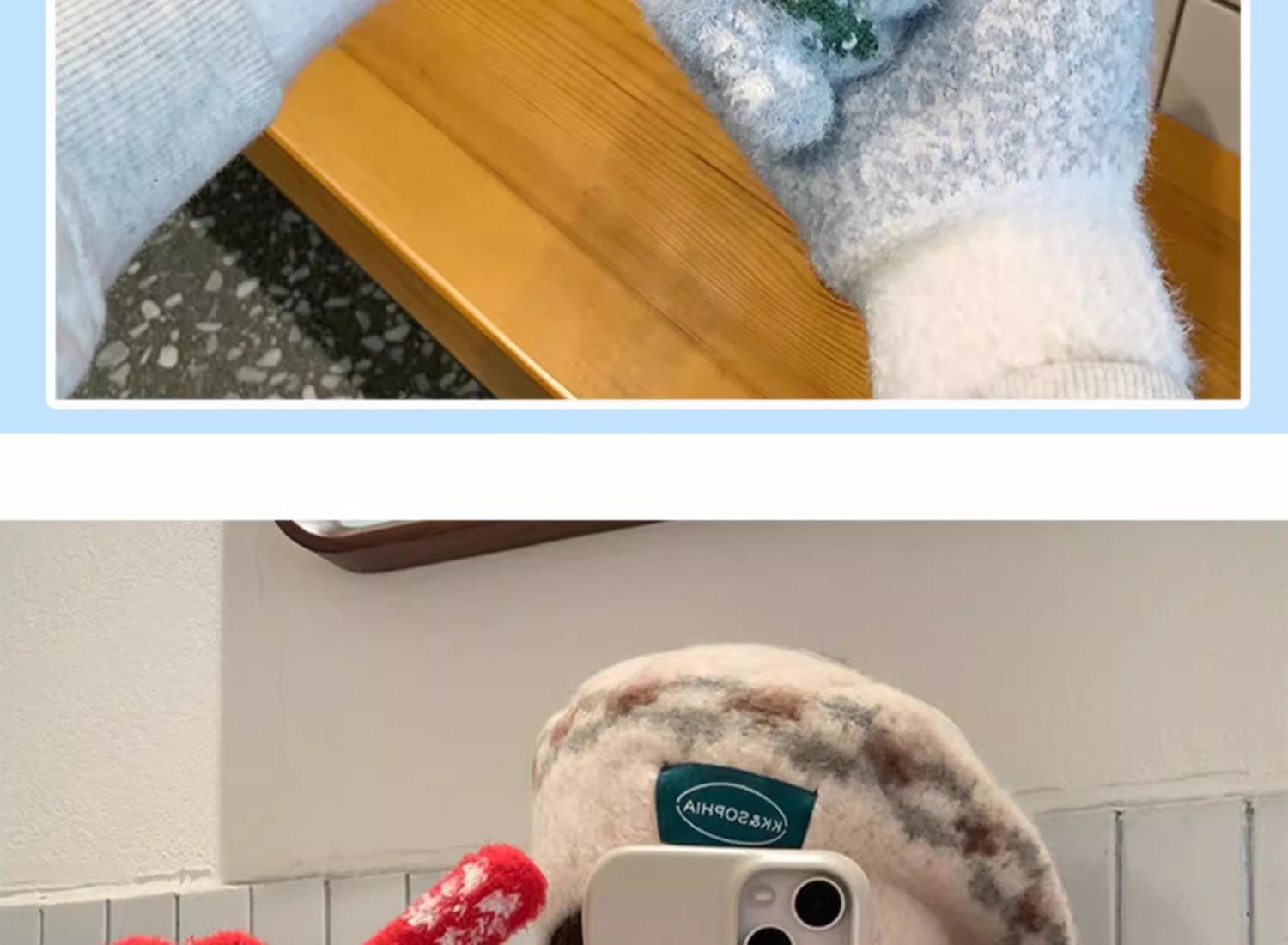 女士手套冬季新款露指加厚保暖可爱学生防寒毛线可触屏圣诞树手套