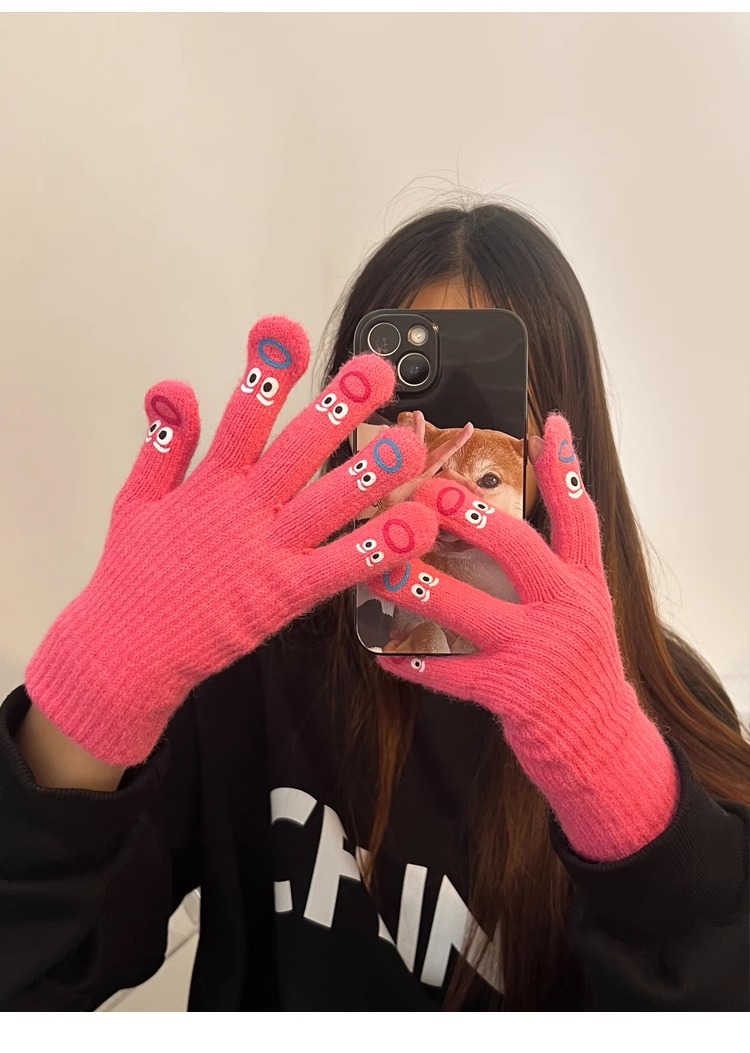 大嘴怪手套五指可爱韩版毛线针织加厚保暖手套女冬季骑行可触摸屏